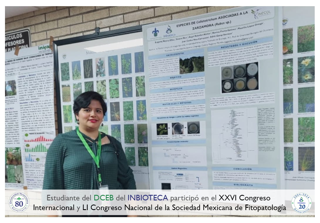 La C. Rivera-Oliva, participó en la modalidad de e-Póster con el trabajo titulado: "Especies de Colletotrichum asociadas a la zarzamora (Rubus sp.)", dentro de la sección temática de Biología molecular. Cabe mencionar que la C. Rivera Oliva trabaja sobre del proyecto de tesis intitulado: Variación molecular de las especies de colletotrichum que afectan a la zarzamora cultivada y silvestre., investigación dirigida por el Dr. Juan Carlos Noa Carrazana (SNI 1 – Perfil PRODEP) académico del INBIOTECA.