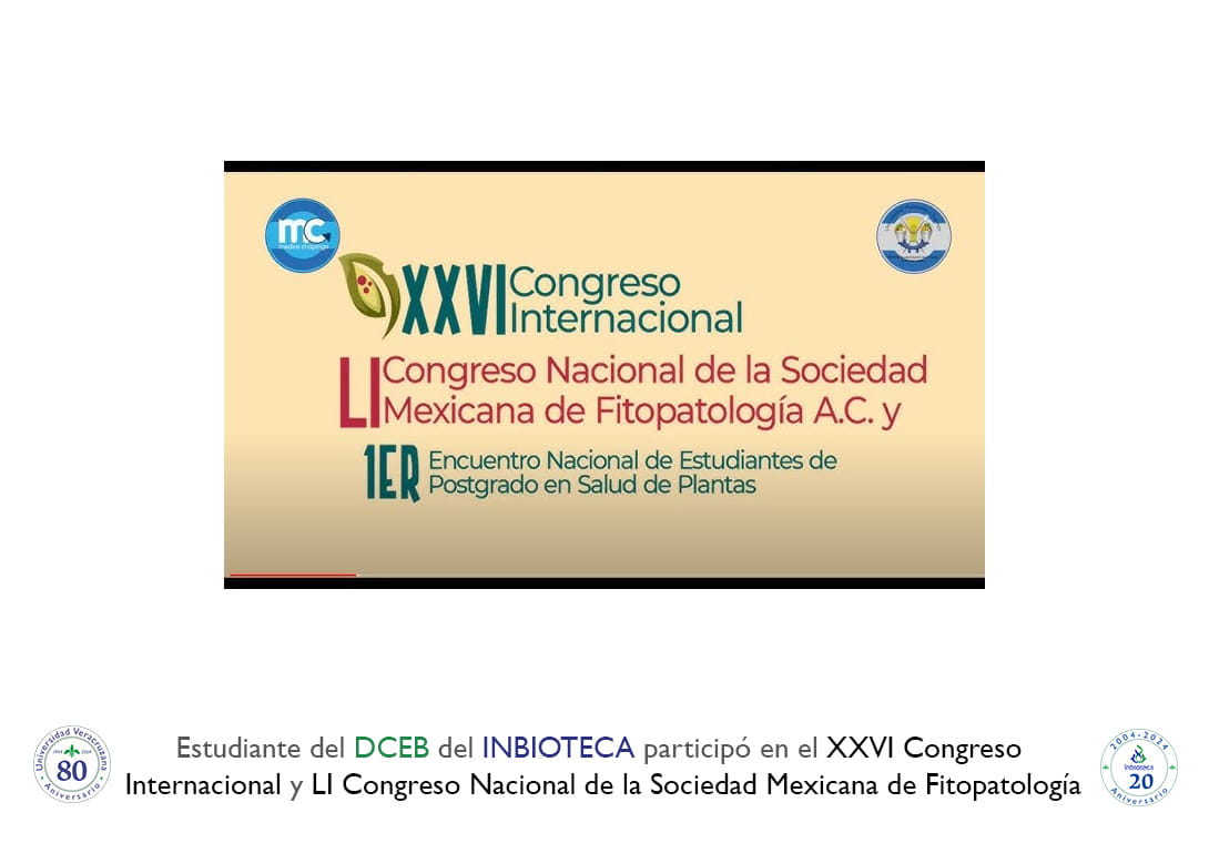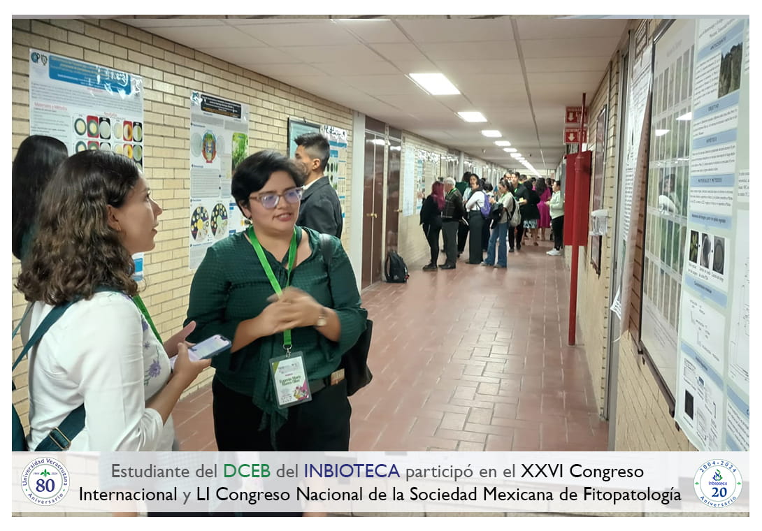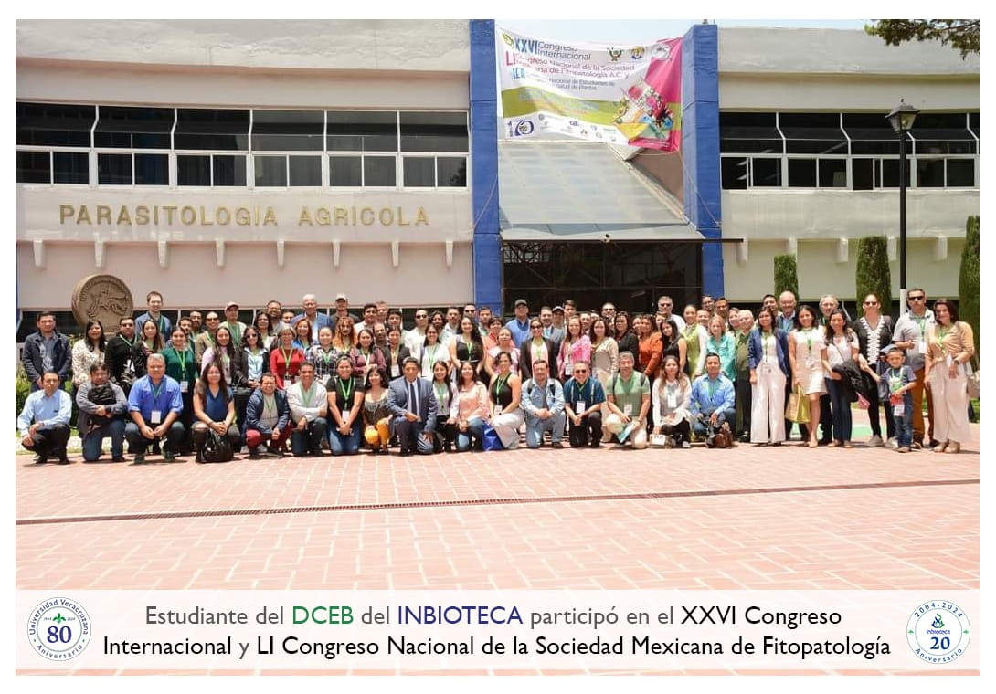 Agosto de 2024.- La estudiante de Doctorado Eugenia María Rivera Oliva (Generación 2020), participó en el XXVI Congreso Internacional y LI Nacional de la Sociedad Mexicana de Fitopatología A.C. y 1er Encuentro Nacional de Estudiantes de Postgrado en Salud de Plantas, evento organizado por la Sociedad Mexicana de Fitopatología A. C. (SMF) y por la Universidad Autónoma de Chapingo, evento realizado del 31 de julio al 03 de agosto en modalidad híbrida en Chapingo, Texcoco, Edo. de México.