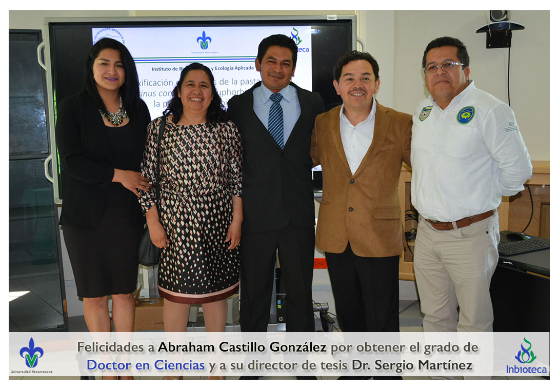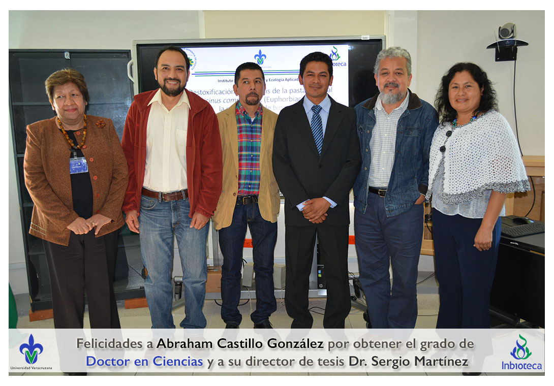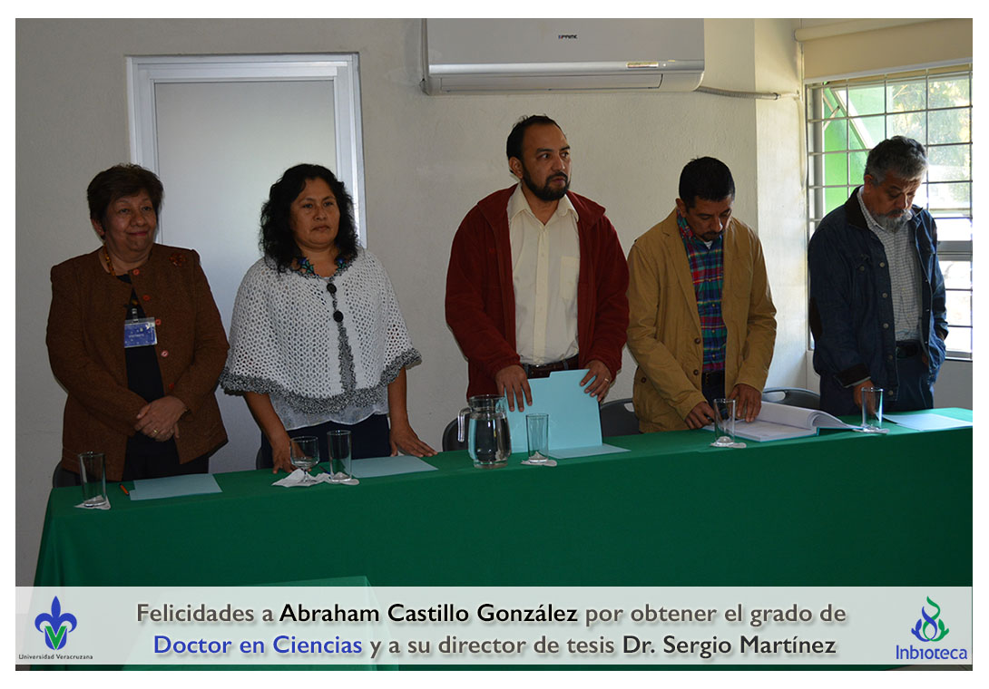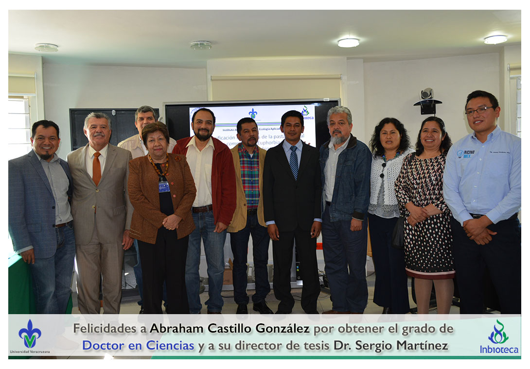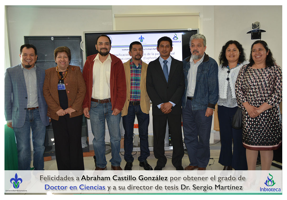 Felicidades a Abraham Castillo González por obtener el grado de Doctor en Ciencias en Ecología y Biotecnología, a su director de tesis Dr. Sergio Martínez Hernández, a su codirector de tesis Dra. Fabiola Sandoval Salas, a su comité y a todos los que contribuyeron en el trabajo realizado.
