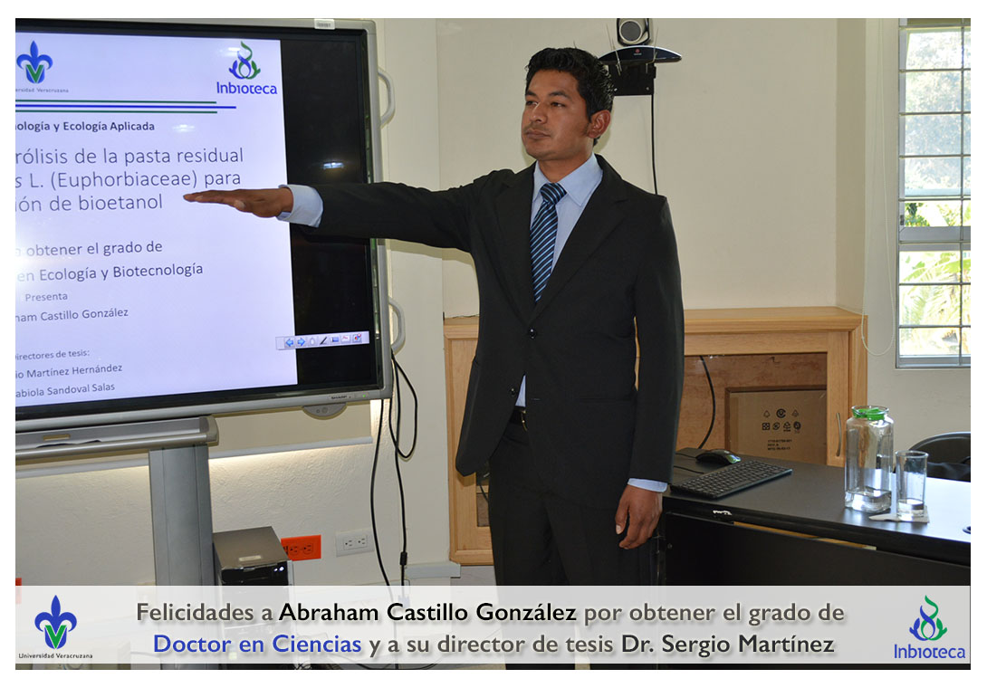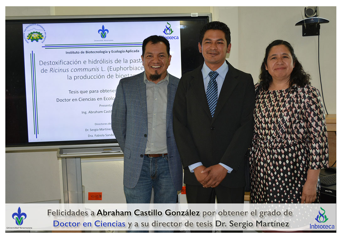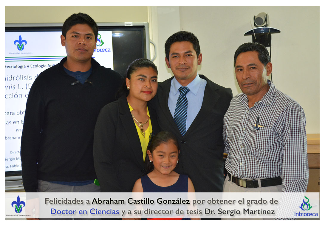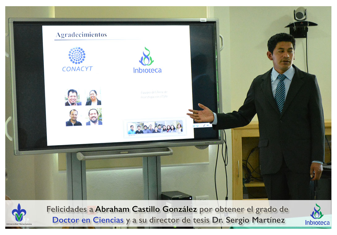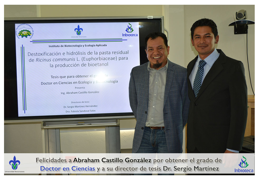 Felicidades a Abraham Castillo González por obtener el grado de Doctor en Ciencias en Ecología y Biotecnología, a su director de tesis Dr. Sergio Martínez Hernández, a su codirector de tesis Dra. Fabiola Sandoval Salas, a su comité y a todos los que contribuyeron en el trabajo realizado.