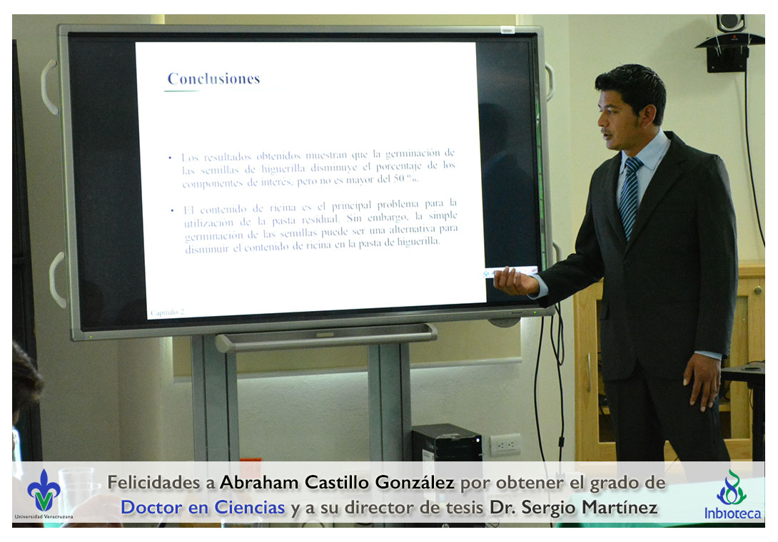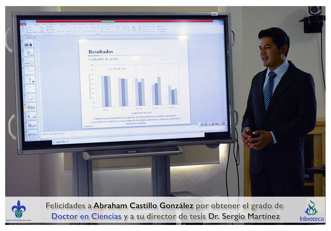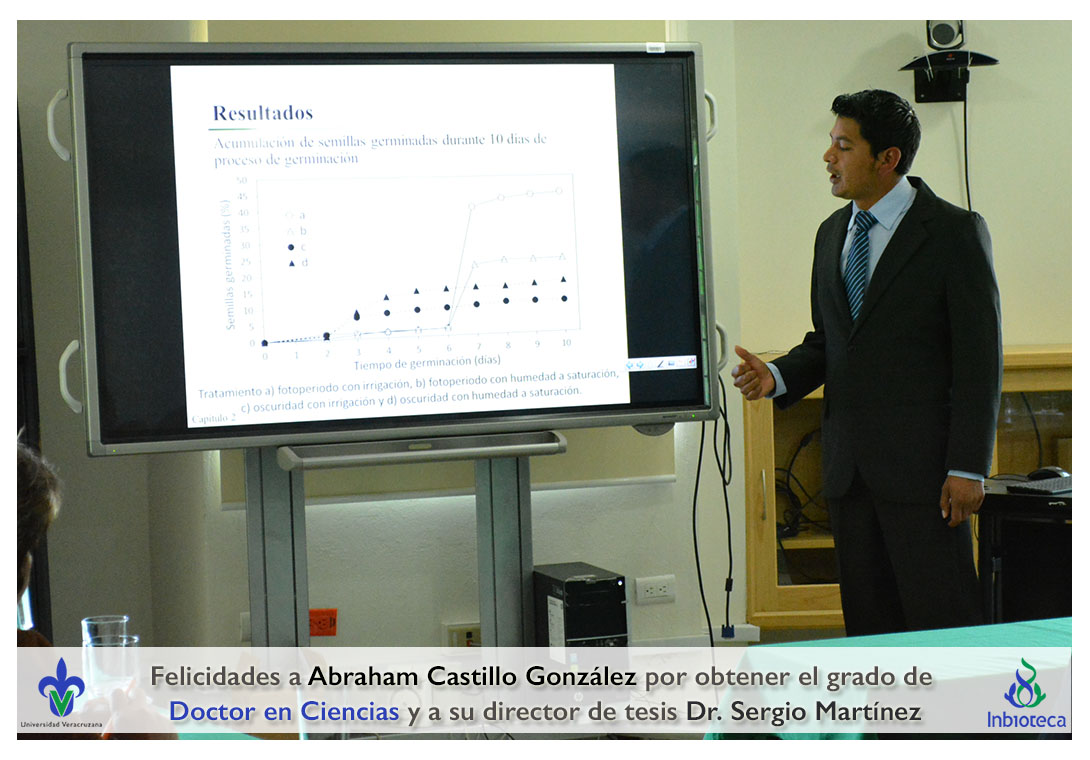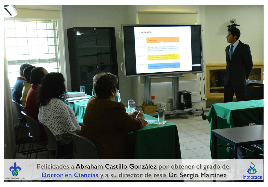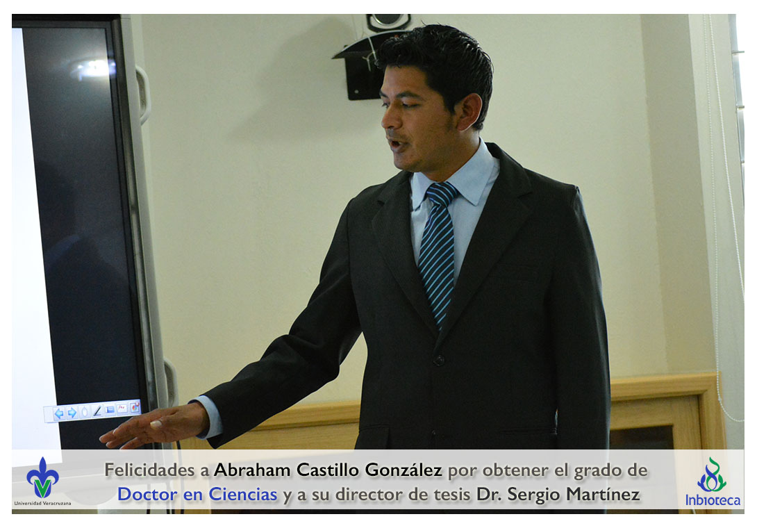 Felicidades a Abraham Castillo González por obtener el grado de Doctor en Ciencias en Ecología y Biotecnología, a su director de tesis Dr. Sergio Martínez Hernández, a su codirector de tesis Dra. Fabiola Sandoval Salas, a su comité y a todos los que contribuyeron en el trabajo realizado.