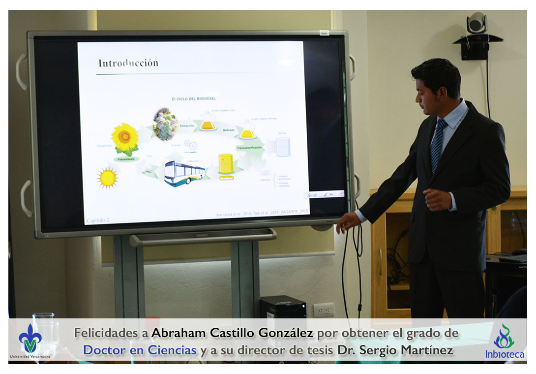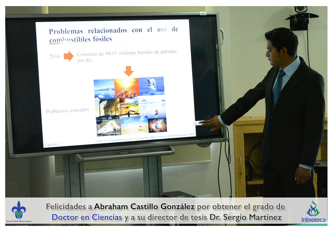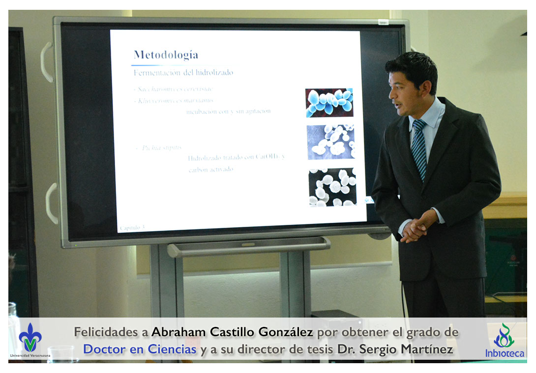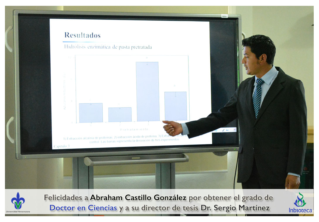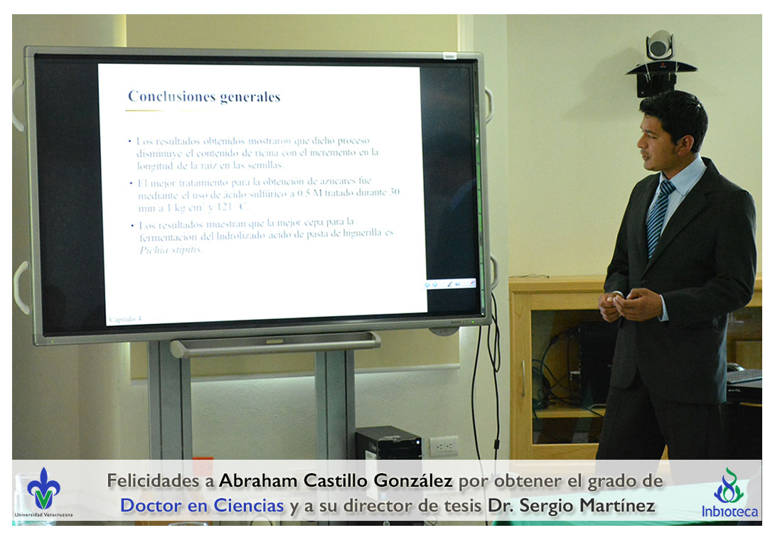 05 de Diciembrede 2017.- En el Aula de Usos Múltiples del INBIOTECA a las 12:00 horas, se realizó el examen de grado de Doctorado con la defensa pública de la tesis titulada: "Destoxificación e hidrólisis de la pasta residual de Ricinus communis L. (Euphorbiaceae) para la producción de etanol".