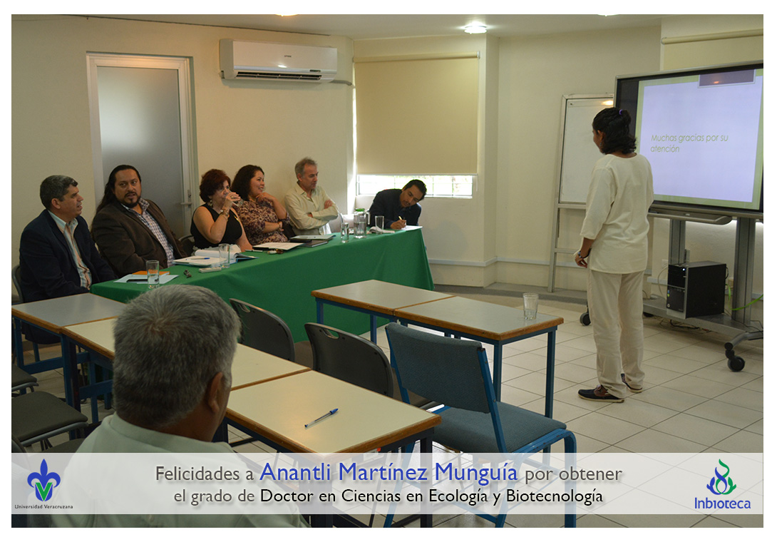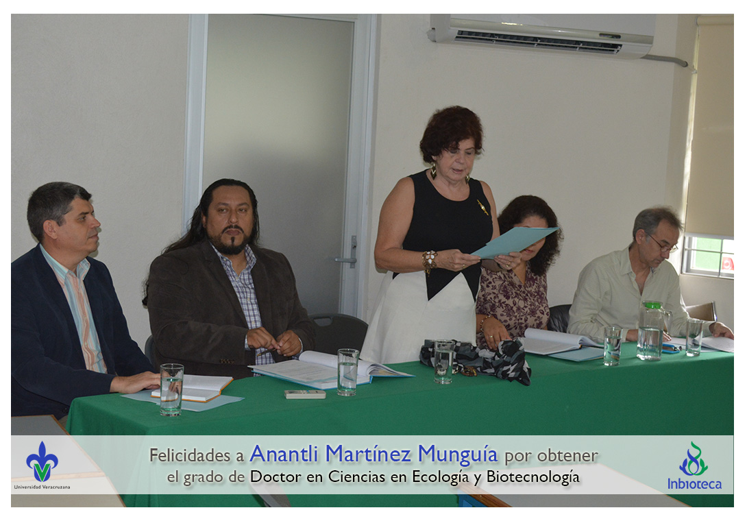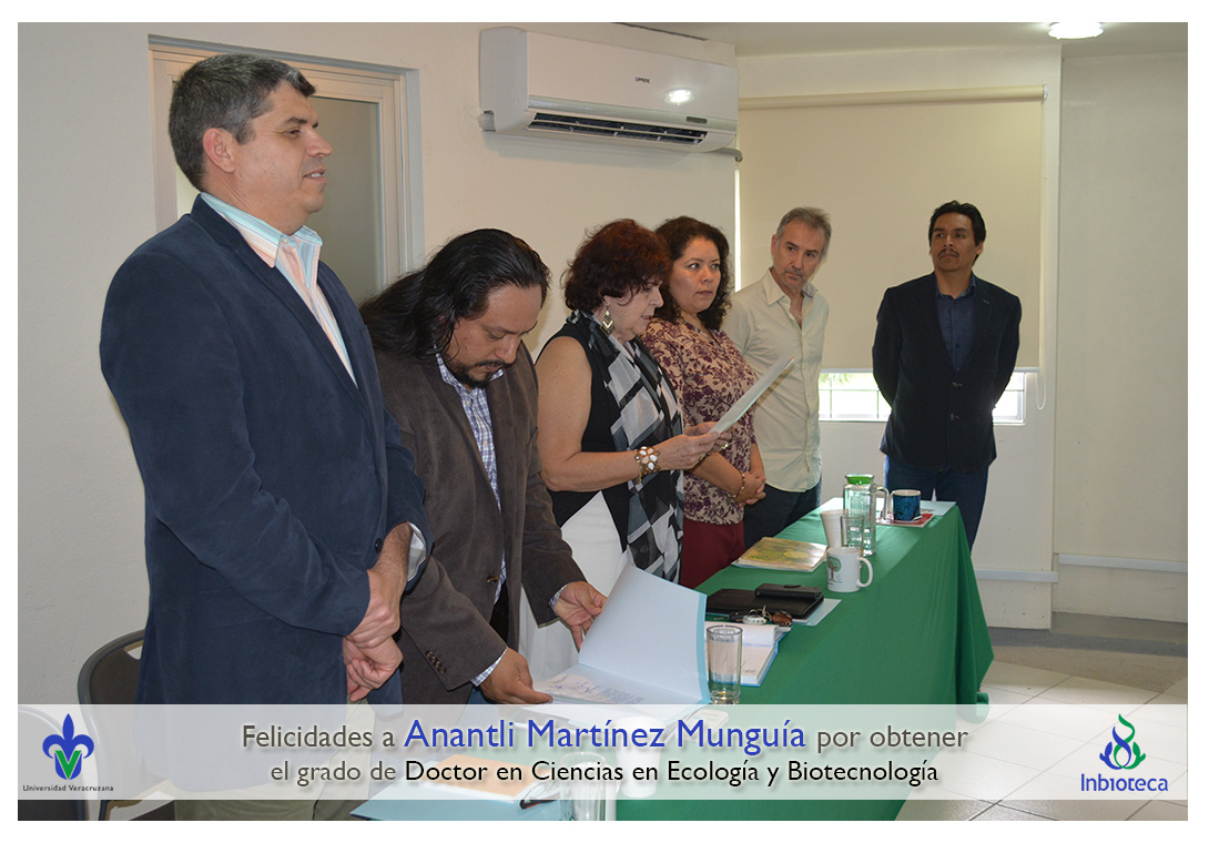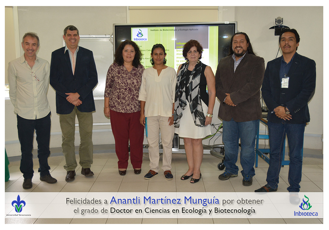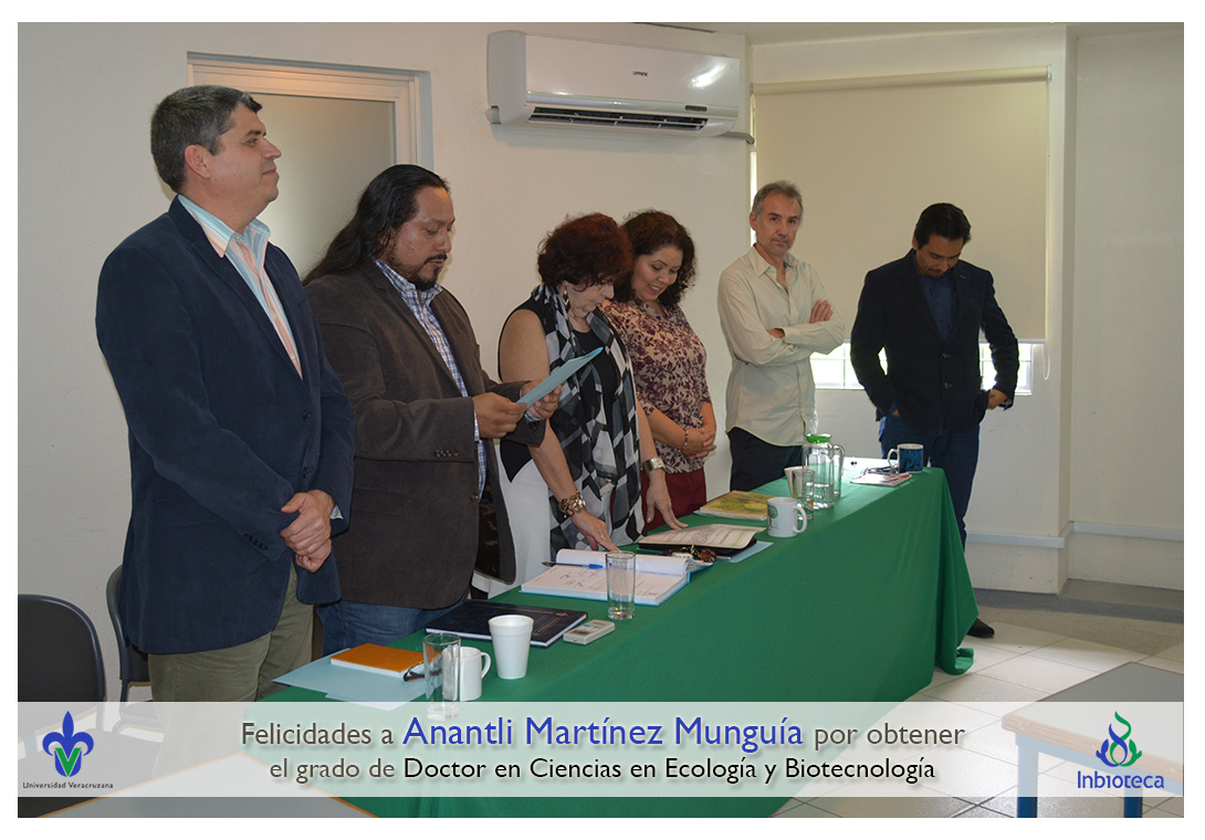 Felicidades a Anantli Martínez Munguía por obtener el grado de Doctor en Ciencias en Ecología y Biotecnología, a su director de tesis Dr. Gustavo Ortiz Ceballos, a su Codirector de Tesis Dr. Alberto Ken Oyama, a su comité y a todos los que contribuyeron en el trabajo realizado.