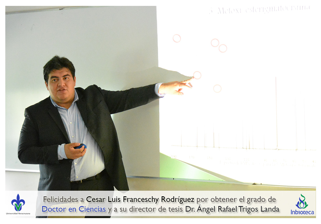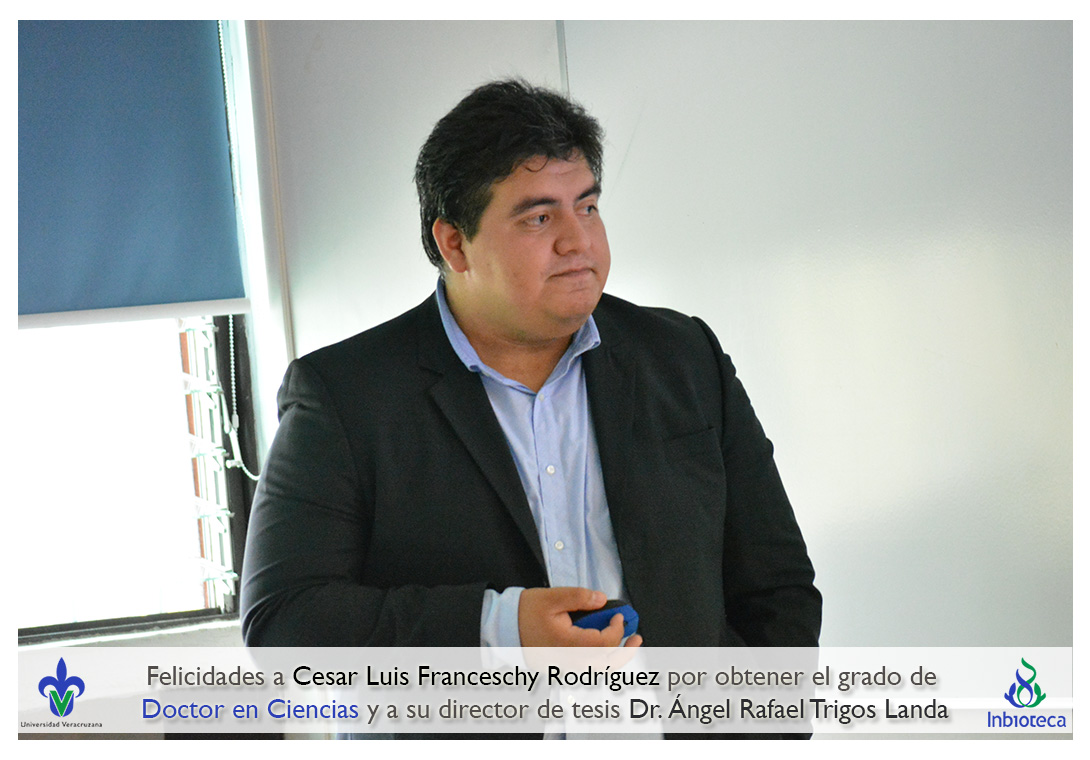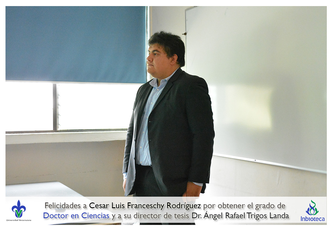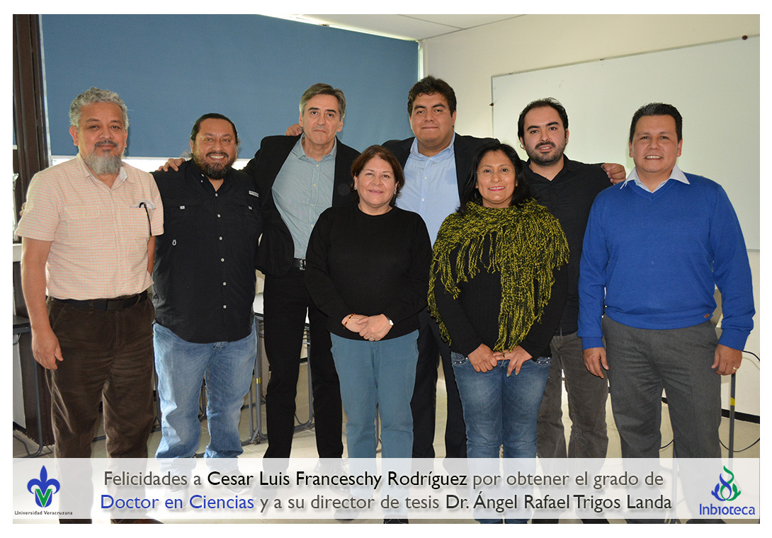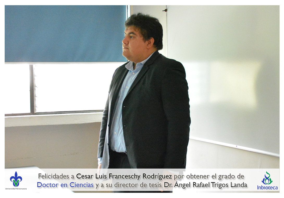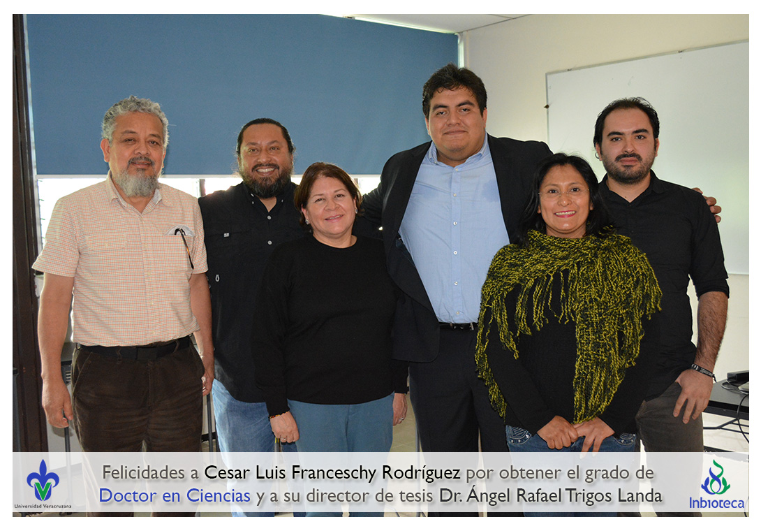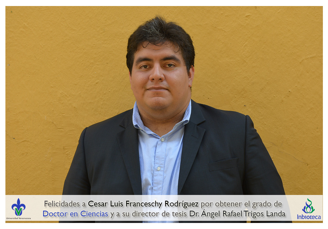 Felicidades a Cesar Luis Franceschy Rodríguez por obtener el grado de Doctor en Ciencias en Ecología y Biotecnología, a su director de tesis Dr. Ángel Rafael Trigos Landa, a su codirector de tesis Dr. César Espinoza Ramírez, a su comité y a todos los que contribuyeron en el trabajo realizado. ¡Enhorabuena!