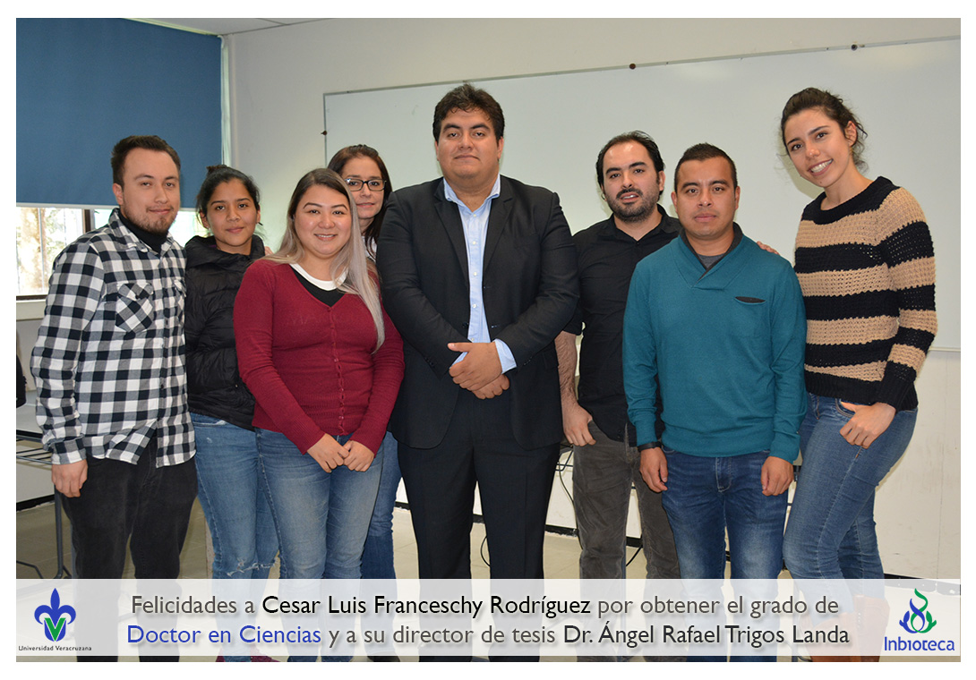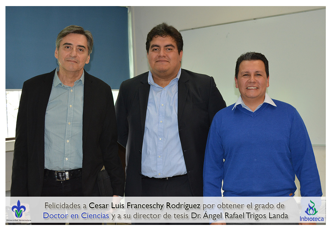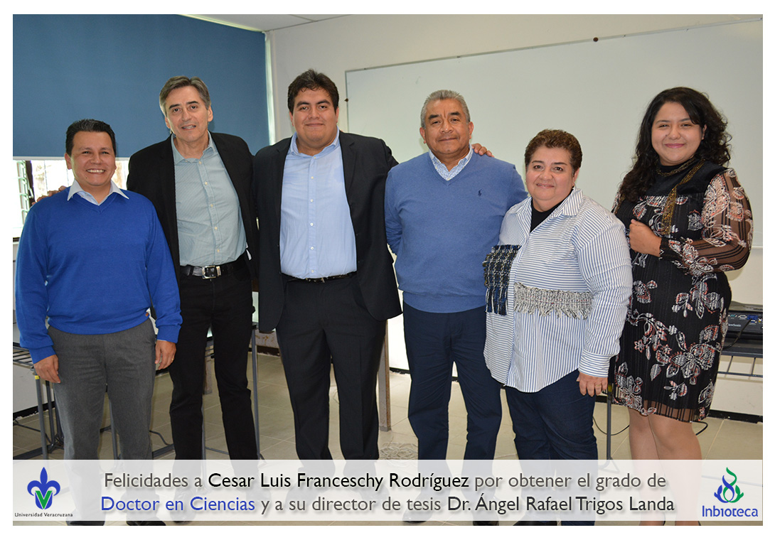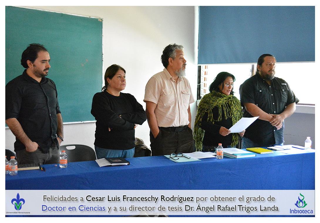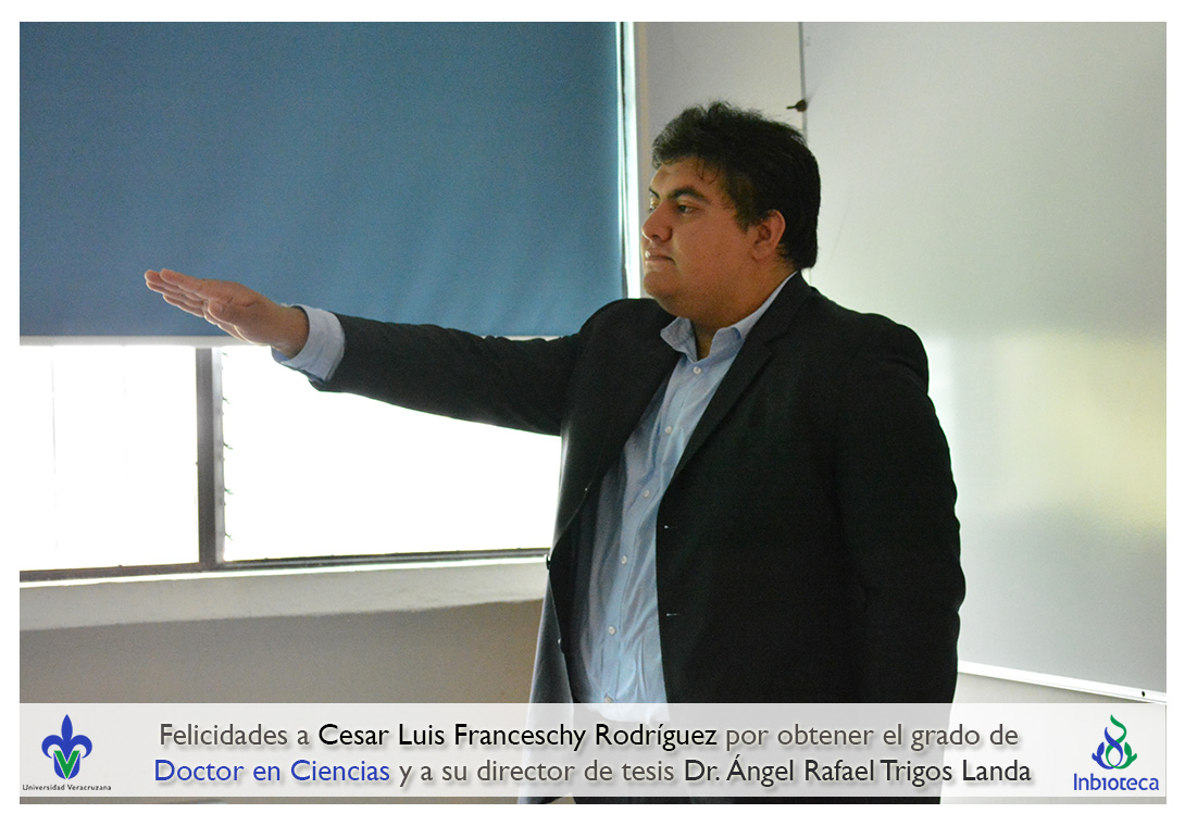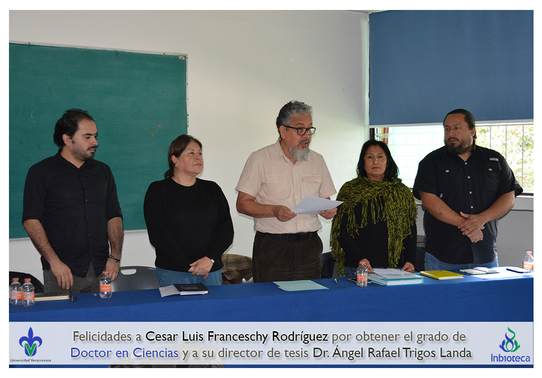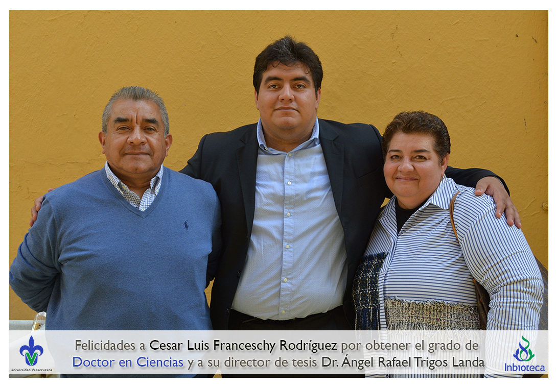 Felicidades a Cesar Luis Franceschy Rodríguez por obtener el grado de Doctor en Ciencias en Ecología y Biotecnología, a su director de tesis Dr. Ángel Rafael Trigos Landa, a su codirector de tesis Dr. César Espinoza Ramírez, a su comité y a todos los que contribuyeron en el trabajo realizado. ¡Enhorabuena!