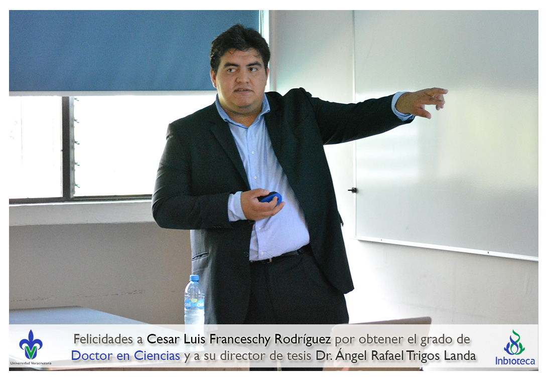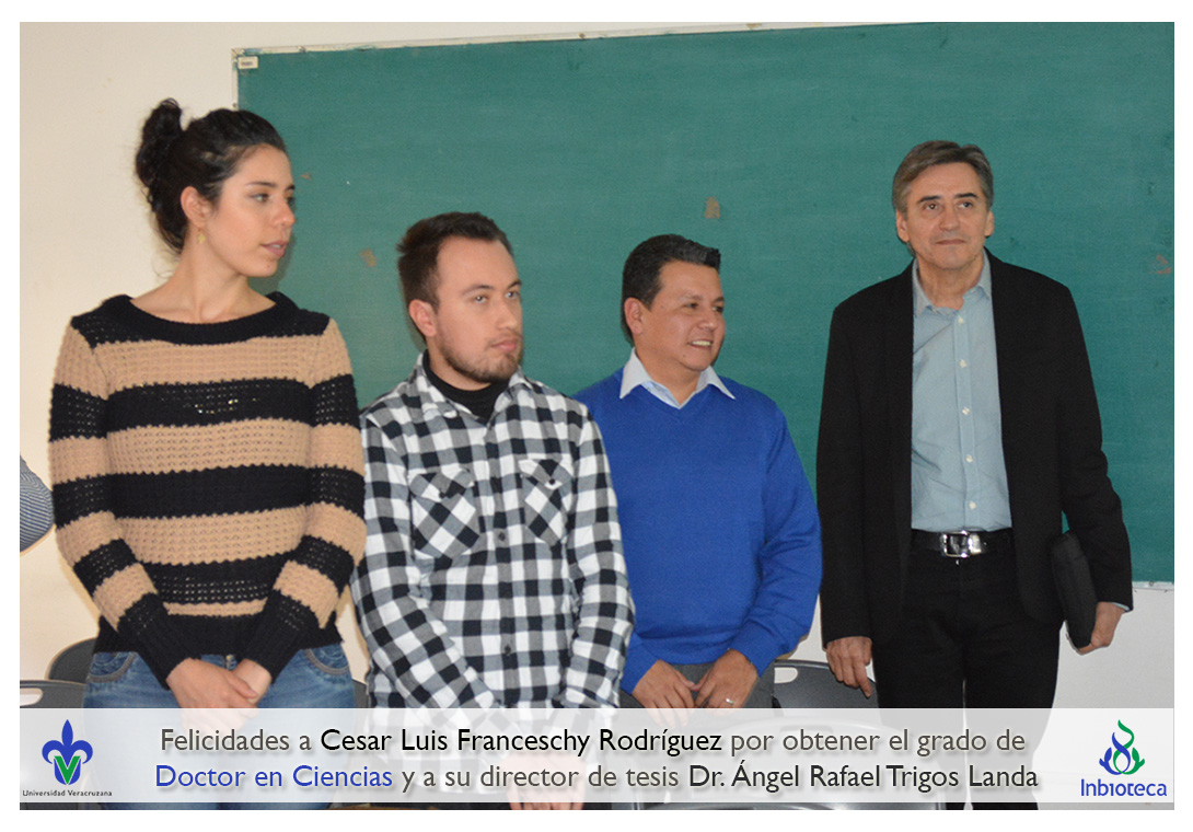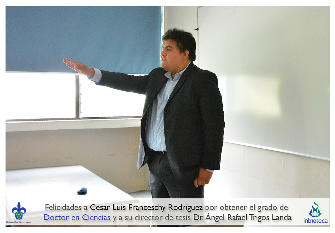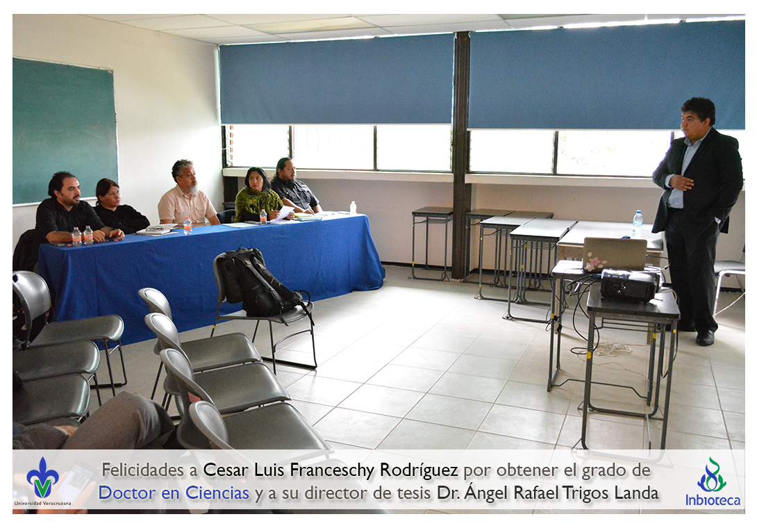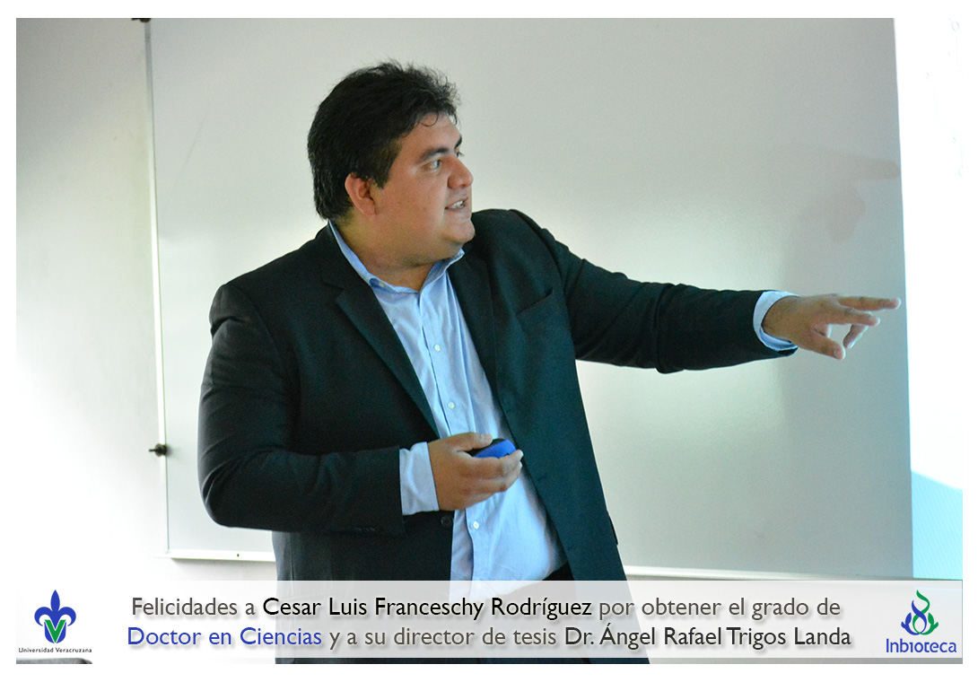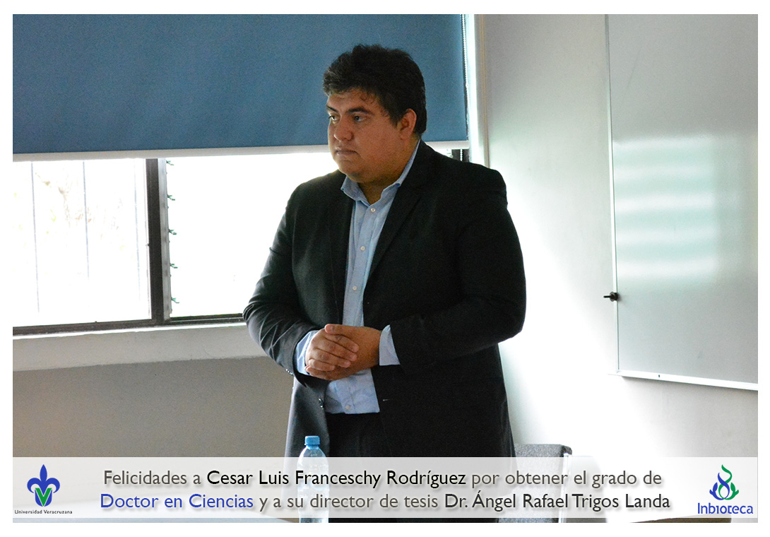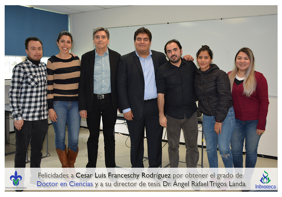 Felicidades a Cesar Luis Franceschy Rodríguez por obtener el grado de Doctor en Ciencias en Ecología y Biotecnología, a su director de tesis Dr. Ángel Rafael Trigos Landa, a su codirector de tesis Dr. César Espinoza Ramírez, a su comité y a todos los que contribuyeron en el trabajo realizado. ¡Enhorabuena!