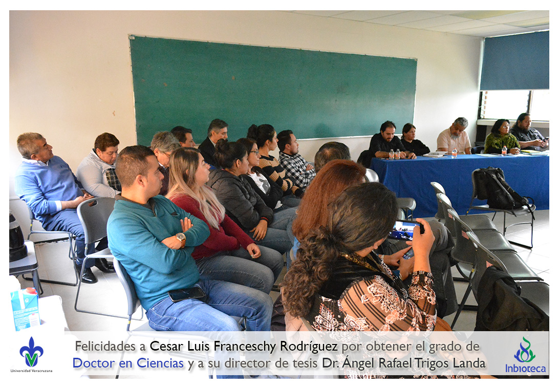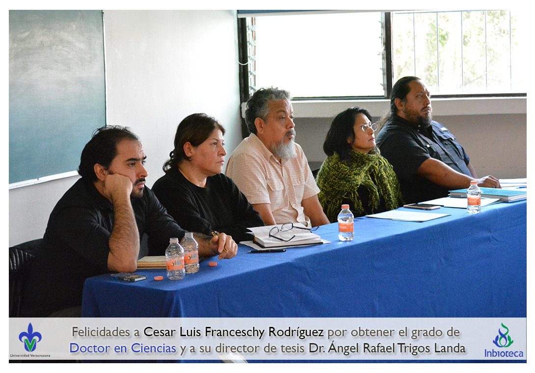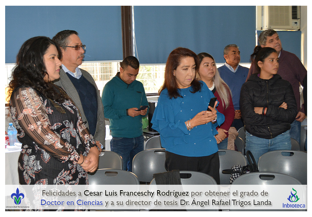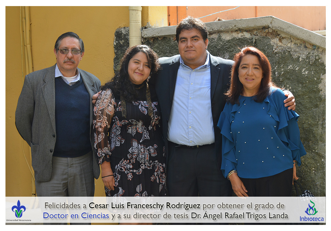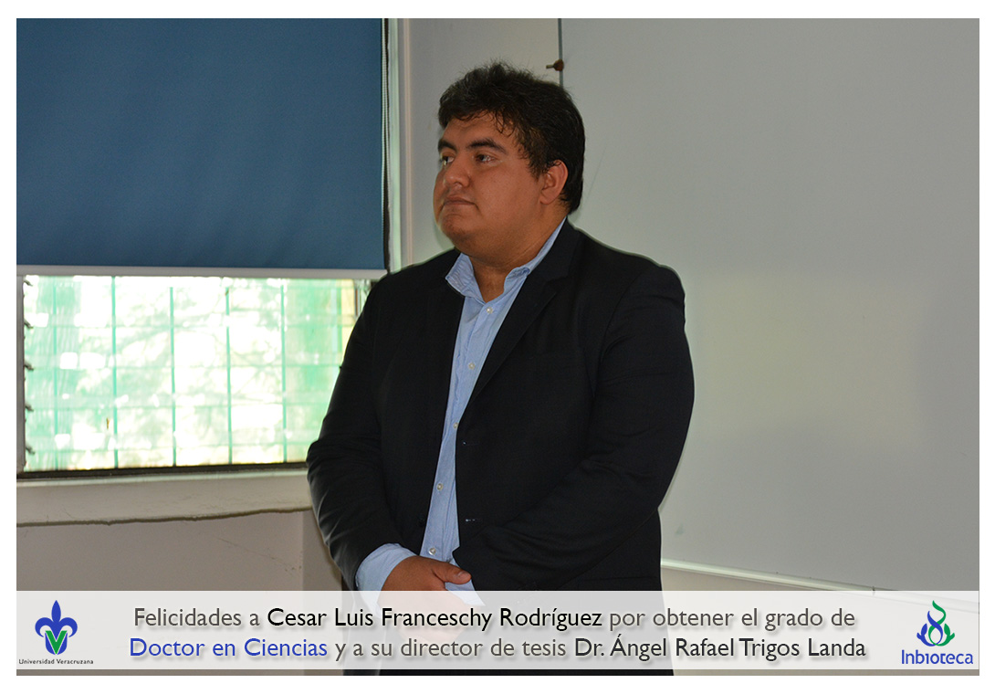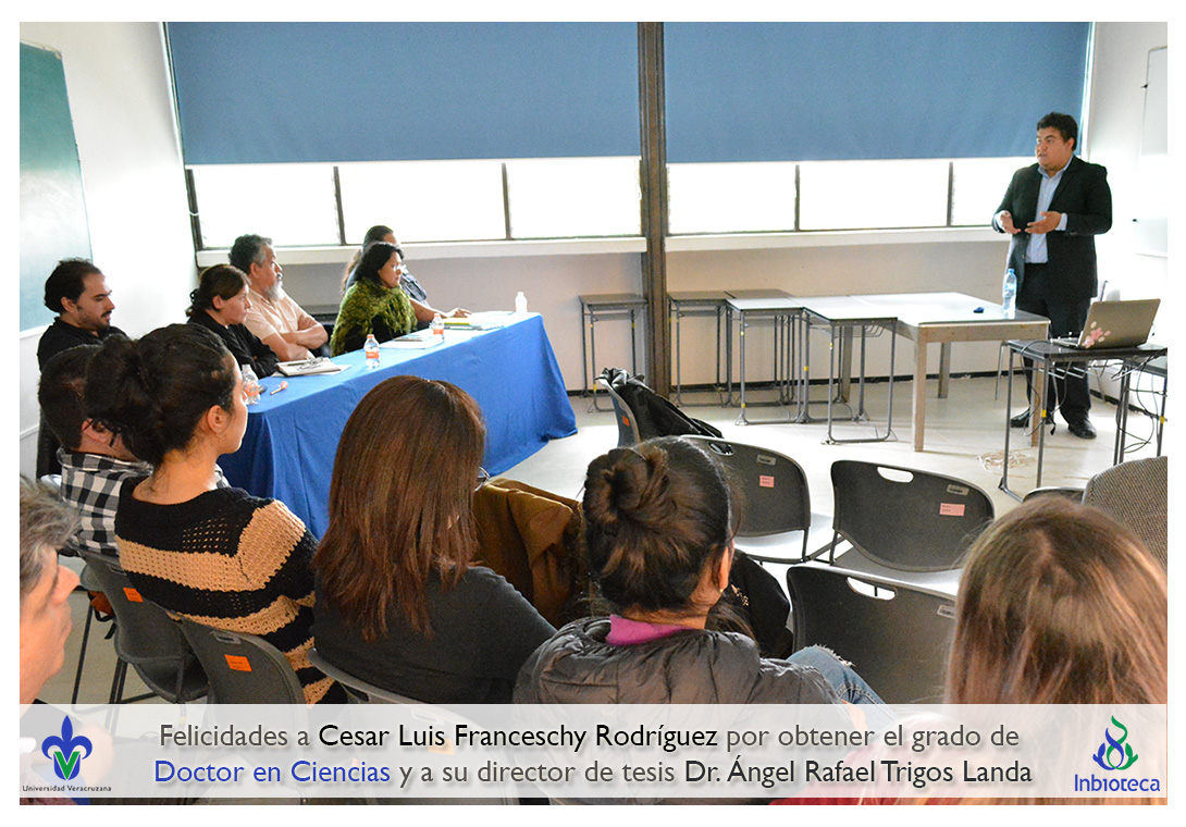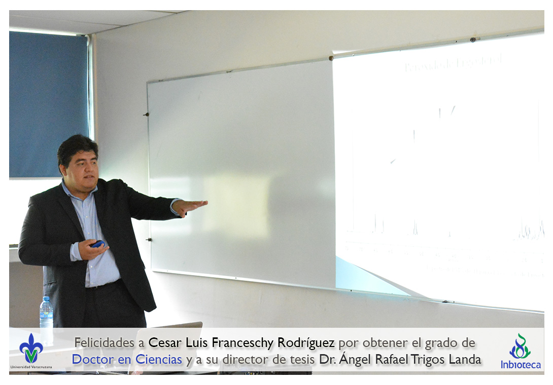 Felicidades a Cesar Luis Franceschy Rodríguez por obtener el grado de Doctor en Ciencias en Ecología y Biotecnología, a su director de tesis Dr. Ángel Rafael Trigos Landa, a su codirector de tesis Dr. César Espinoza Ramírez, a su comité y a todos los que contribuyeron en el trabajo realizado. ¡Enhorabuena!