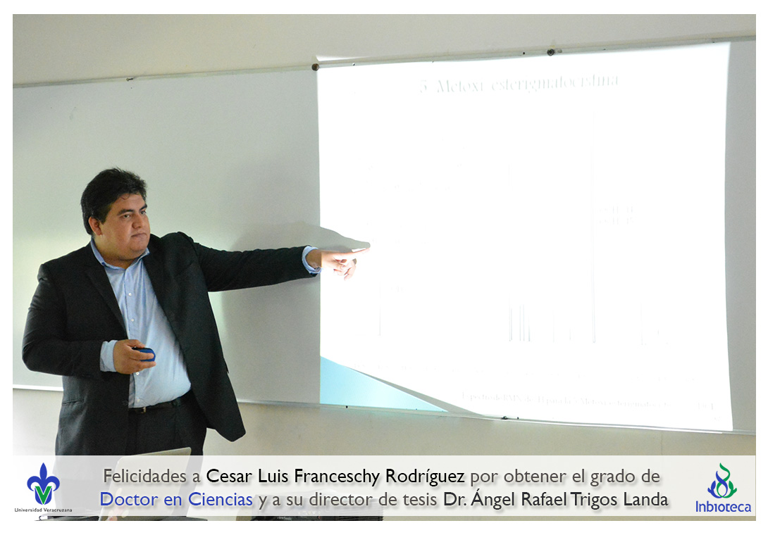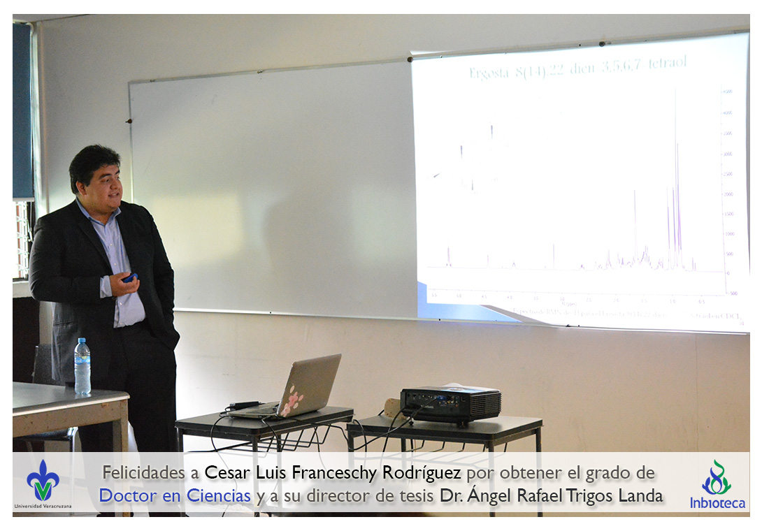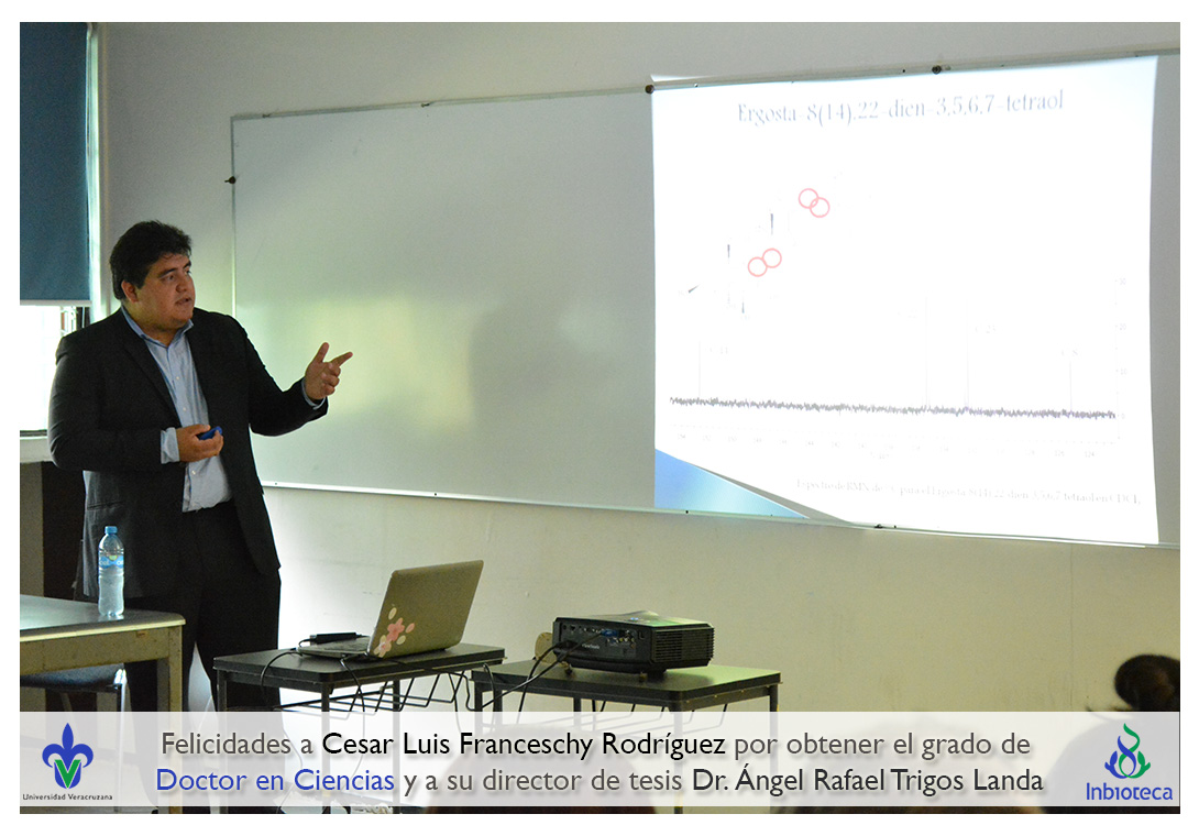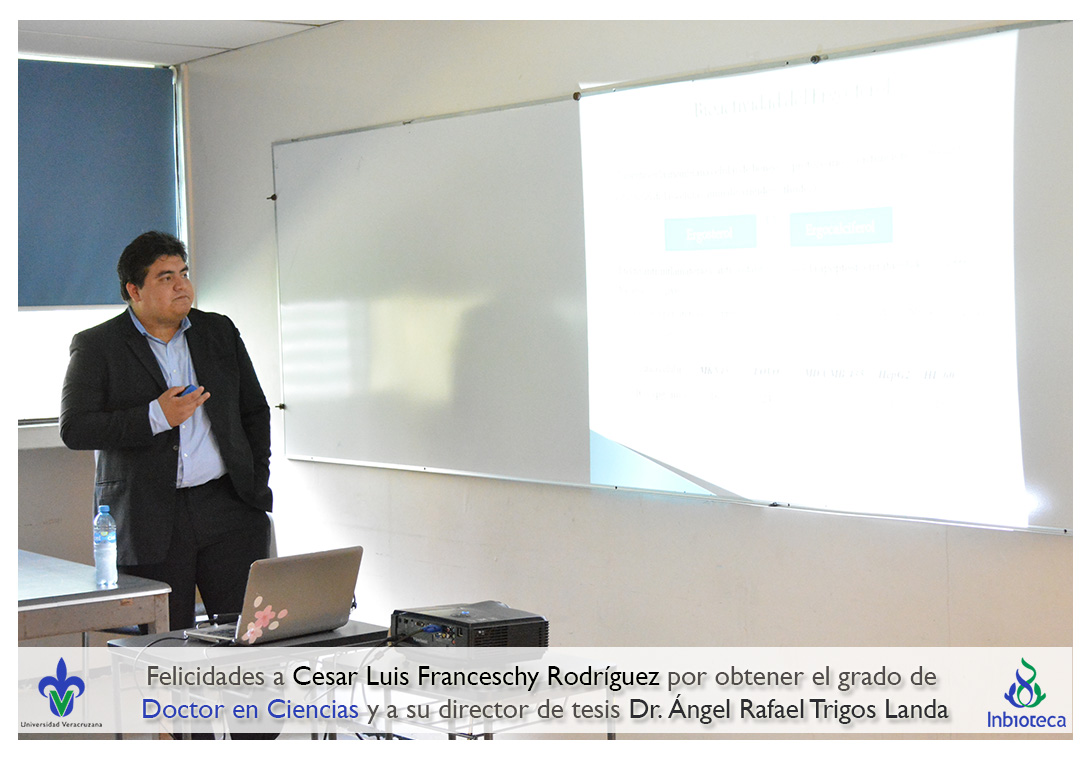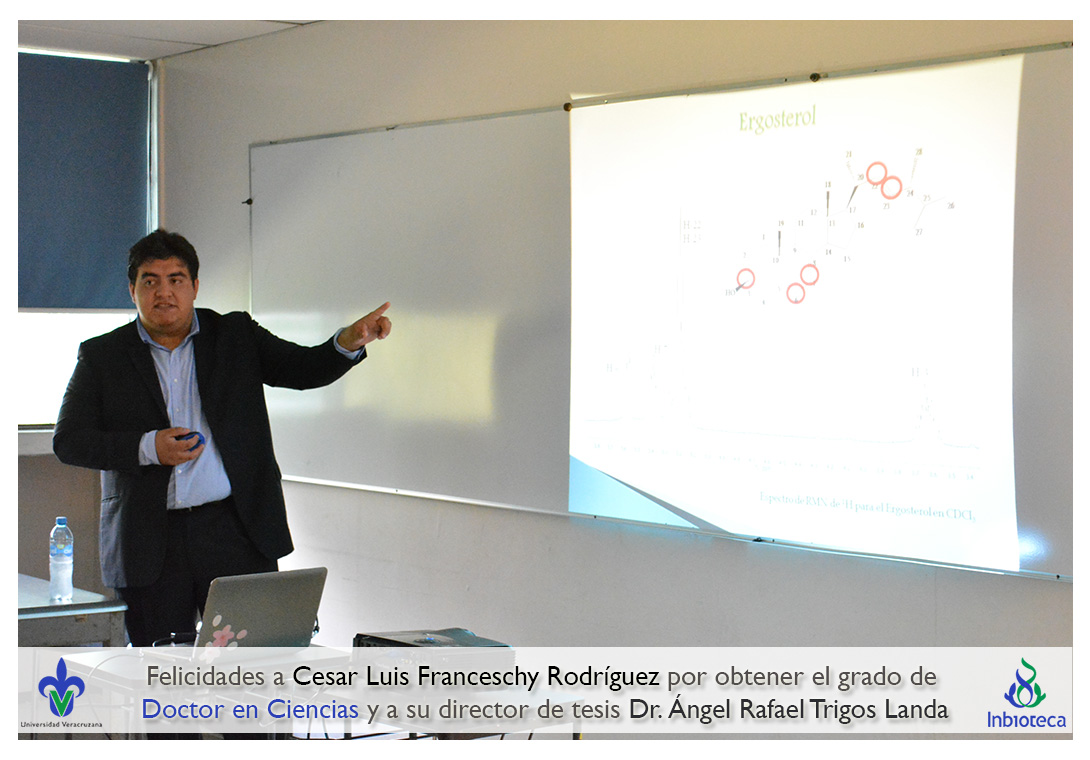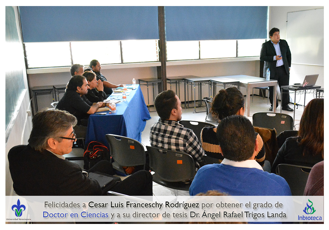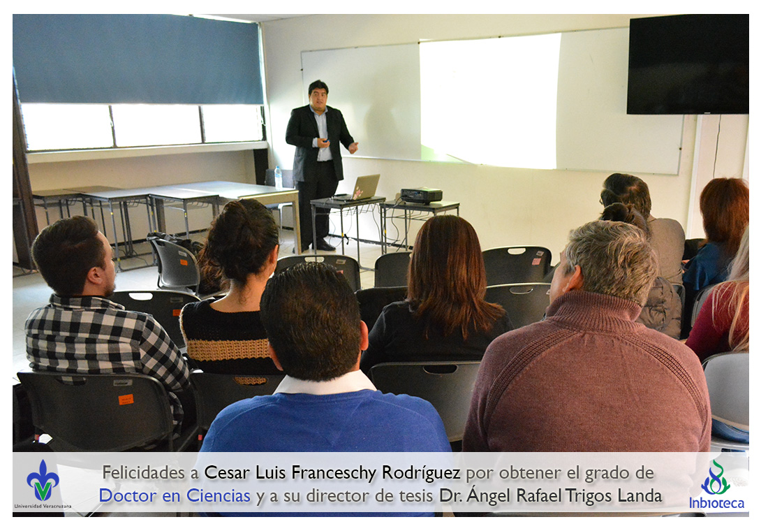 Felicidades a Cesar Luis Franceschy Rodríguez por obtener el grado de Doctor en Ciencias en Ecología y Biotecnología, a su director de tesis Dr. Ángel Rafael Trigos Landa, a su codirector de tesis Dr. César Espinoza Ramírez, a su comité y a todos los que contribuyeron en el trabajo realizado. ¡Enhorabuena!