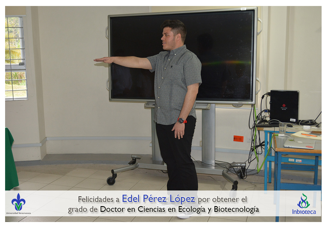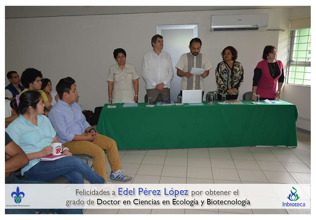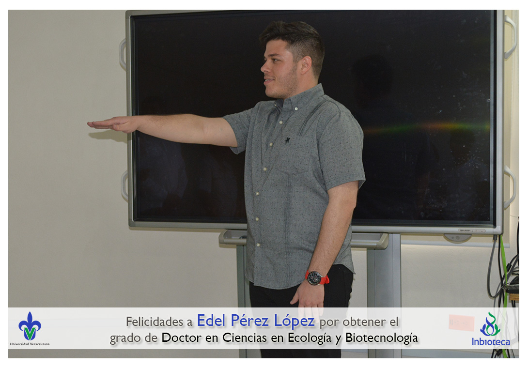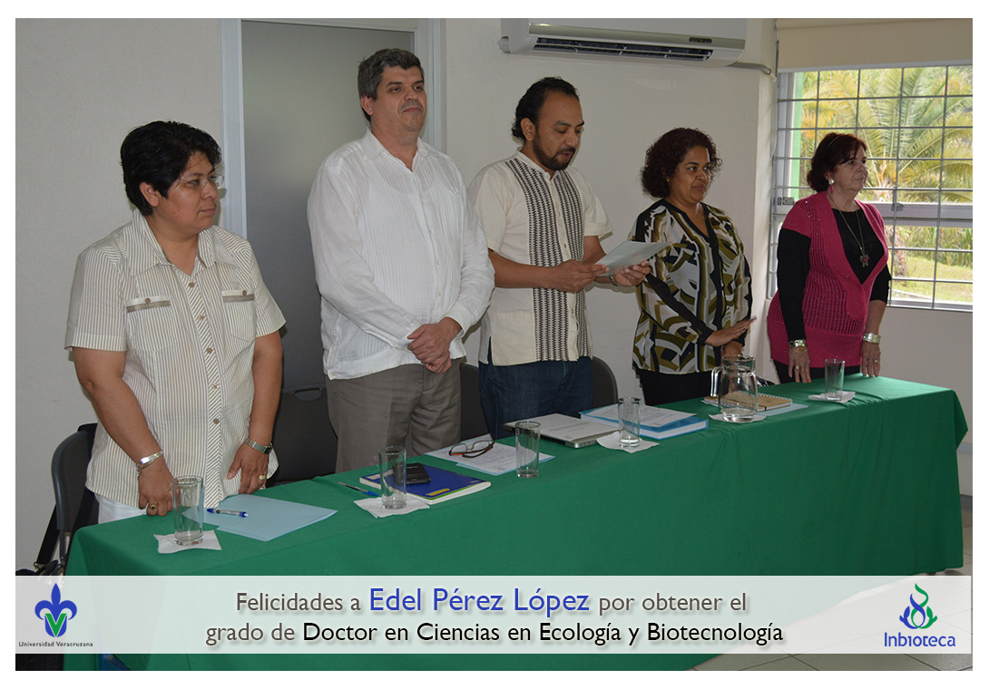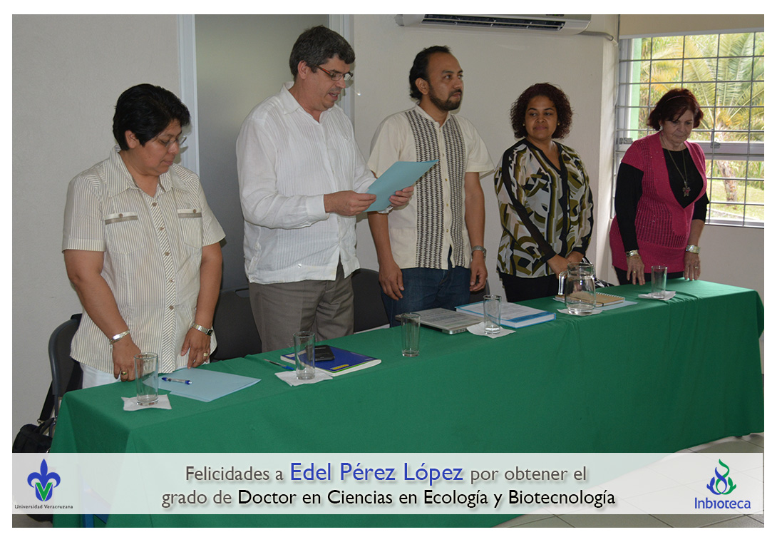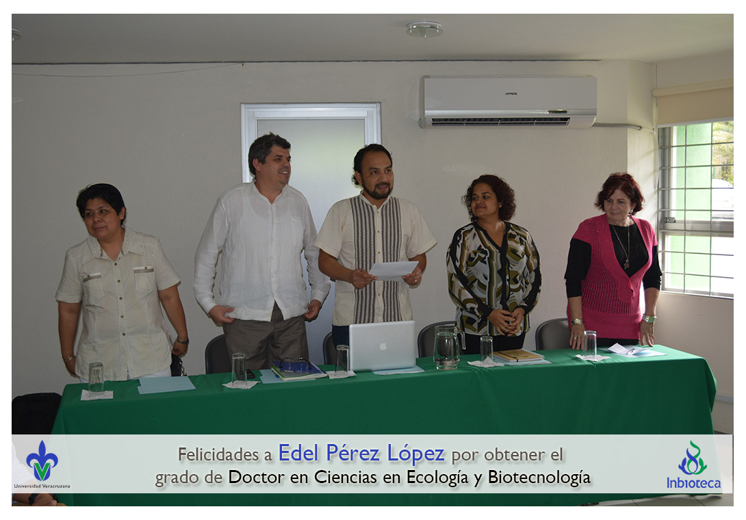 Felicidades a Edel Pérez López por obtener el grado de Doctor en Ciencias en Ecología y Biotecnología, a su director de tesis Dr. Mauricio Luna Rodríguez, a su comité y a todos los que contribuyeron en el trabajo realizado.