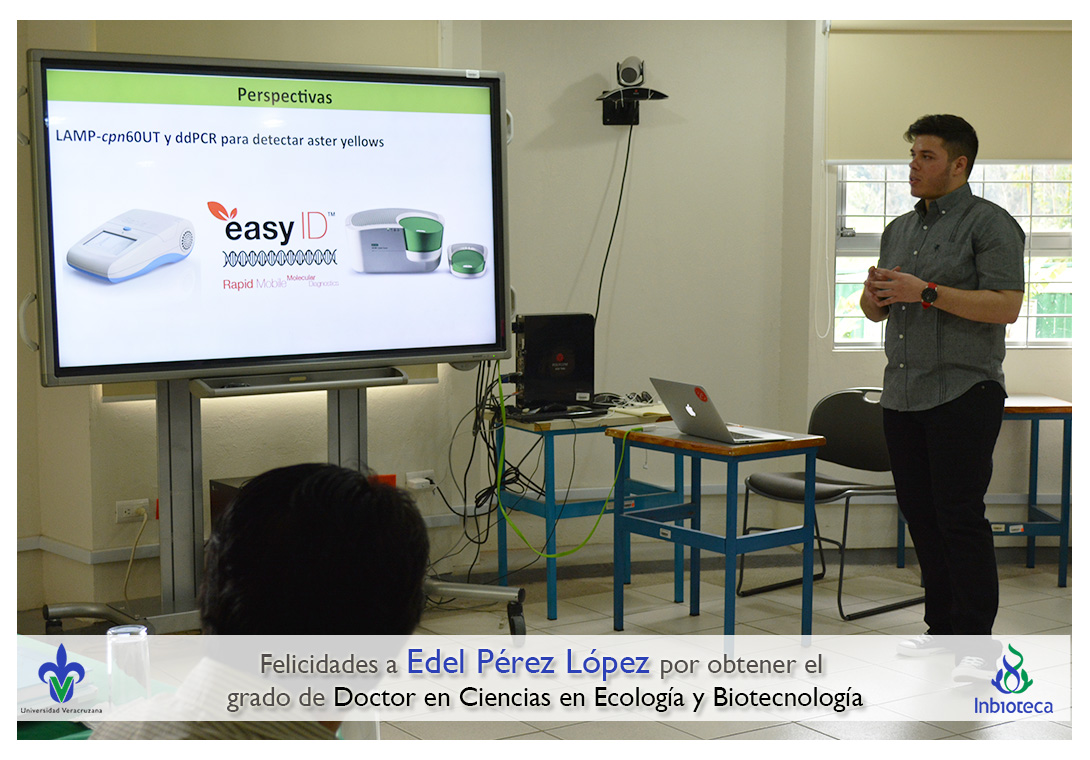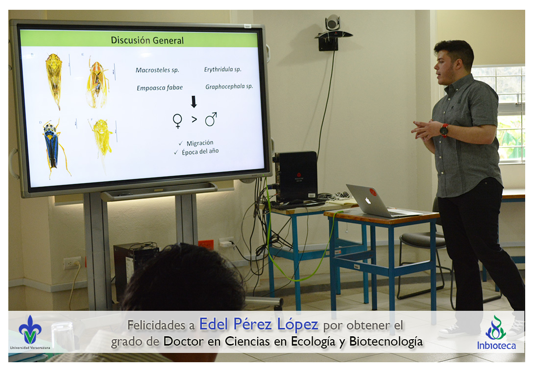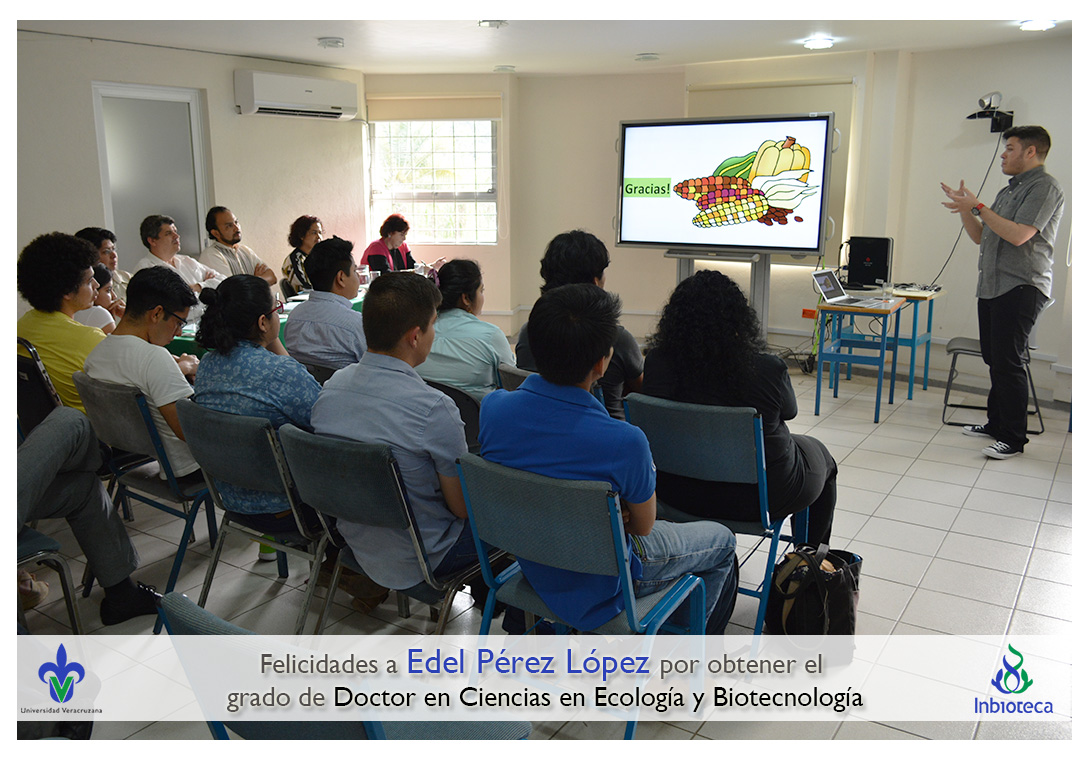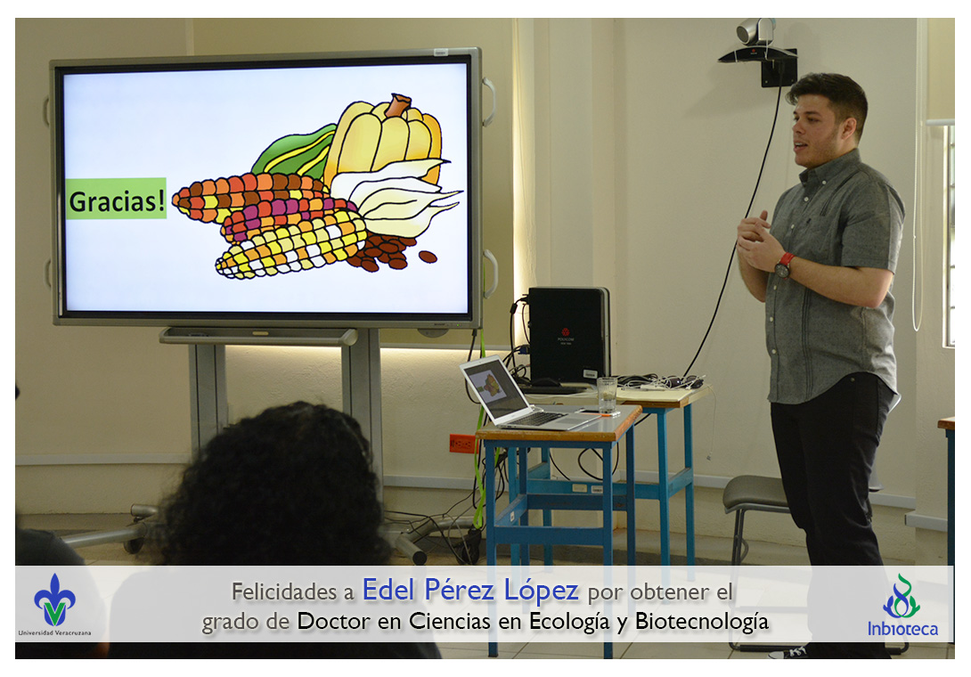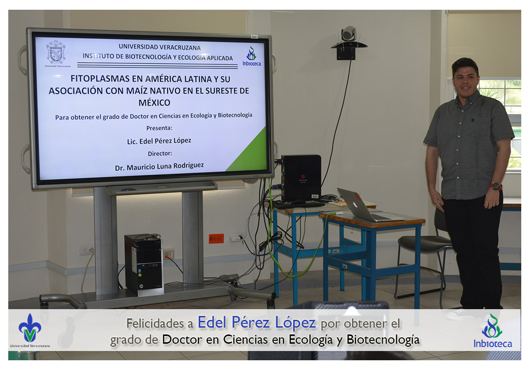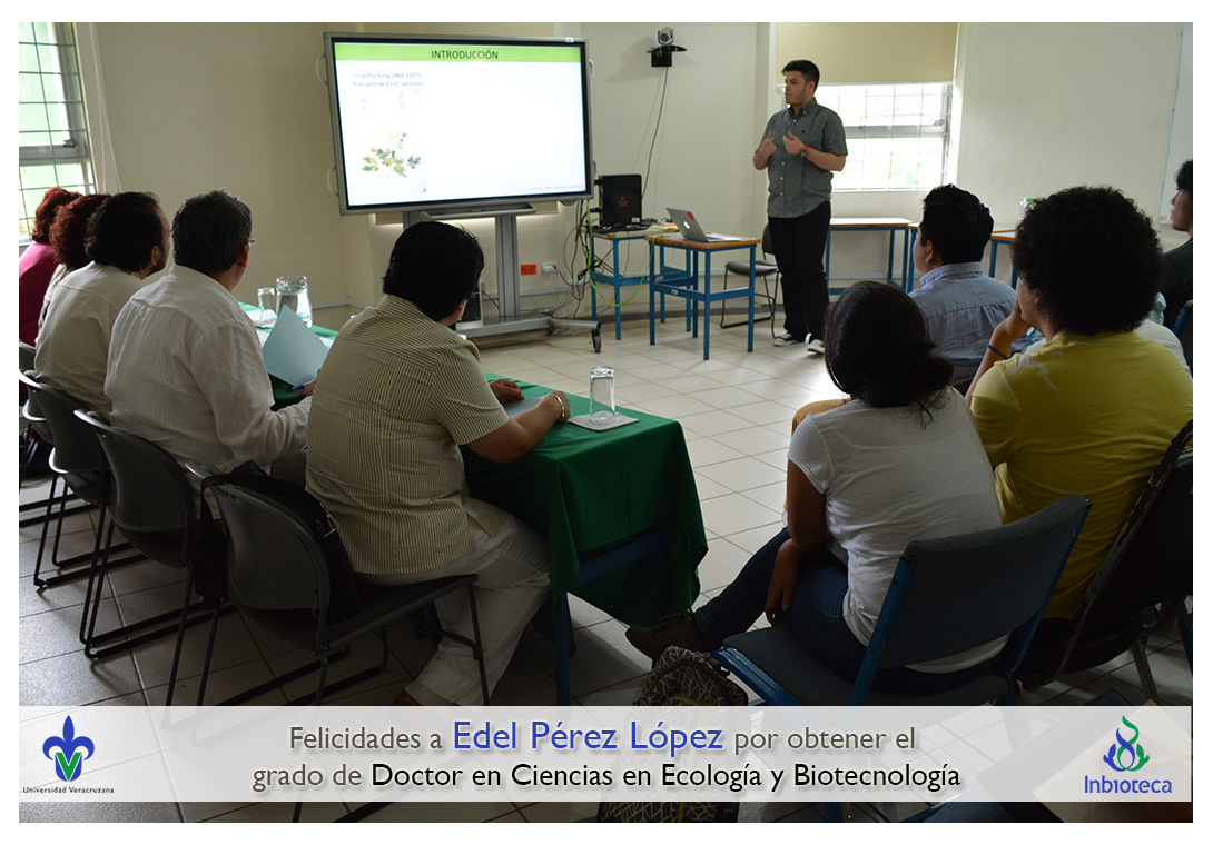 Felicidades a Edel Pérez López por obtener el grado de Doctor en Ciencias en Ecología y Biotecnología, a su director de tesis Dr. Mauricio Luna Rodríguez, a su comité y a todos los que contribuyeron en el trabajo realizado.