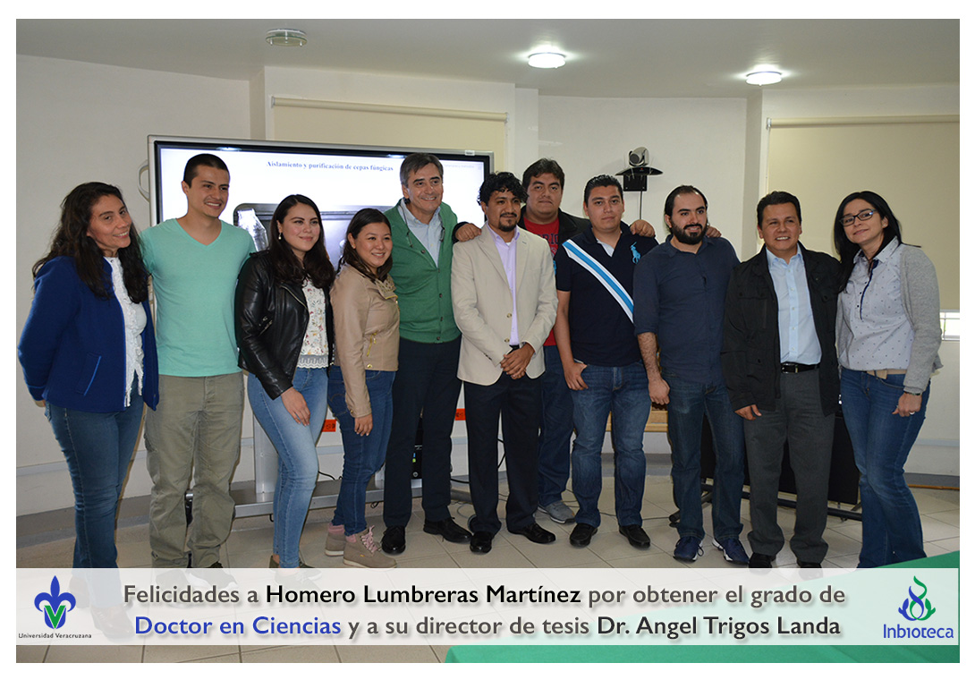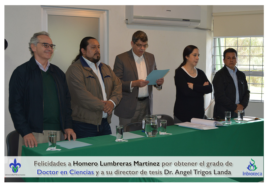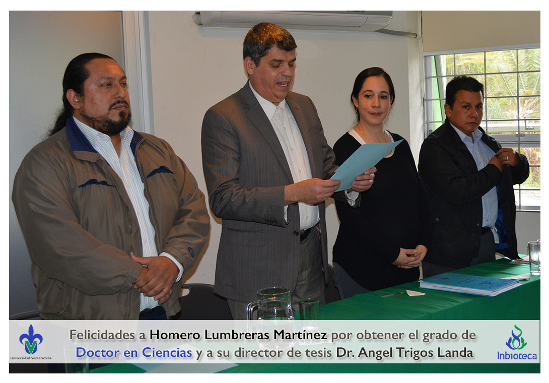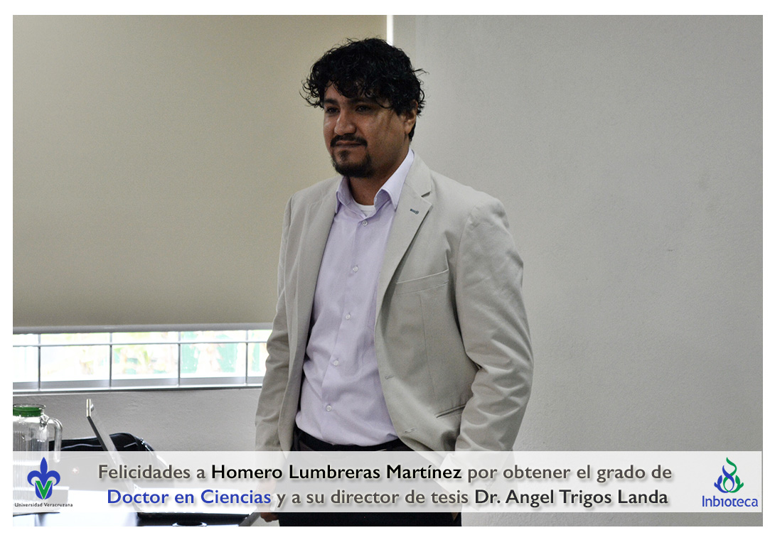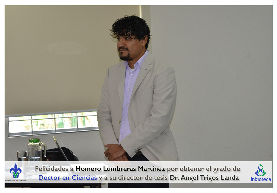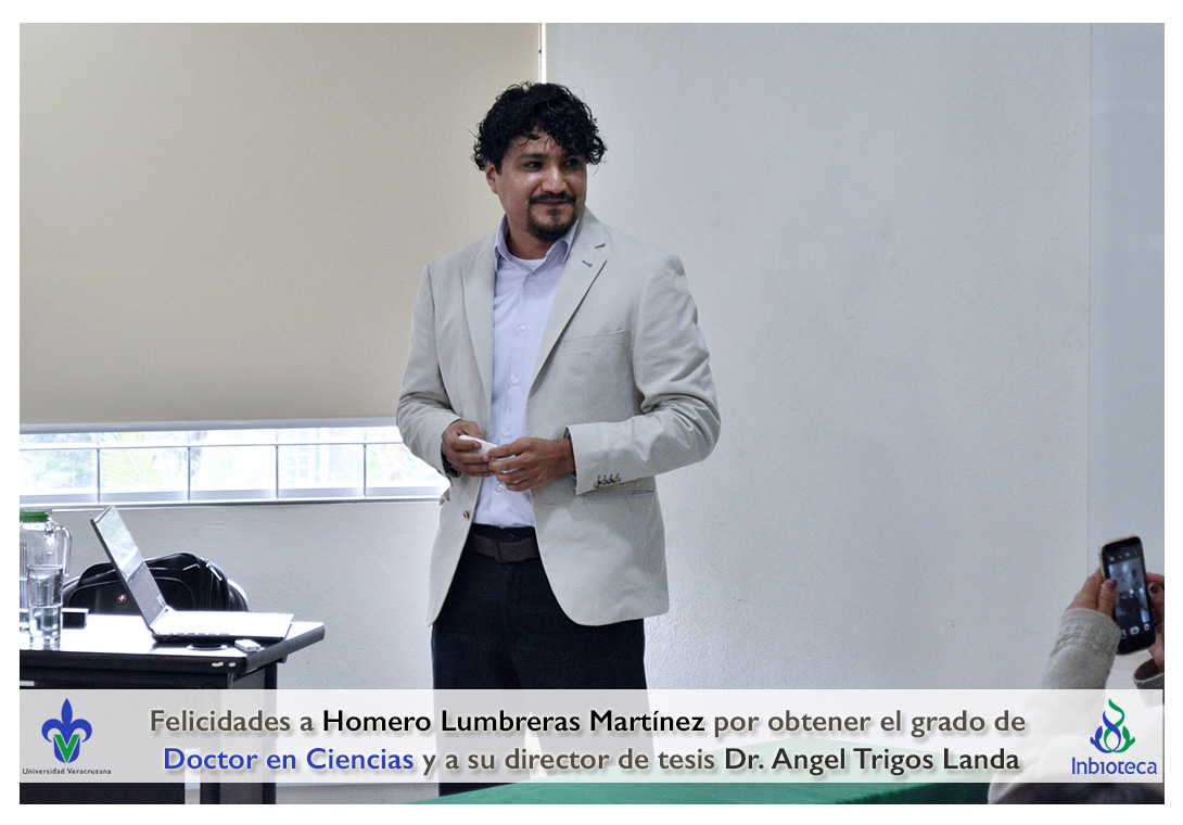 Felicidades a Homero Lumbreras martinez por obtener el grado de Doctor en Ciencias en Ecología y Biotecnología, a su director de tesis Dr. Angel Rafael Trigos Landa, a su codirector de tesis Dr. Cesar Espinoza Ramírez, a su comité y a todos los que contribuyeron en el trabajo realizado.