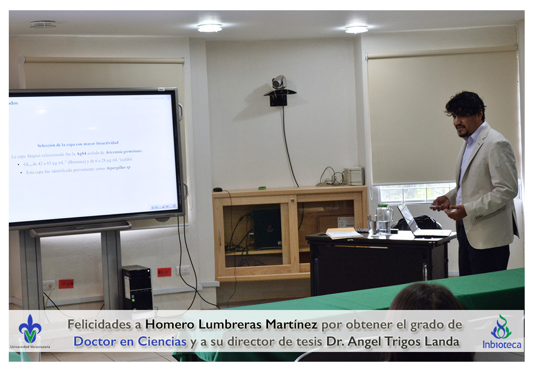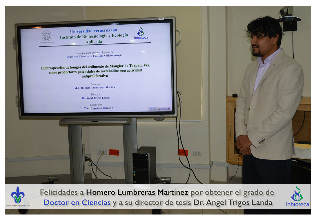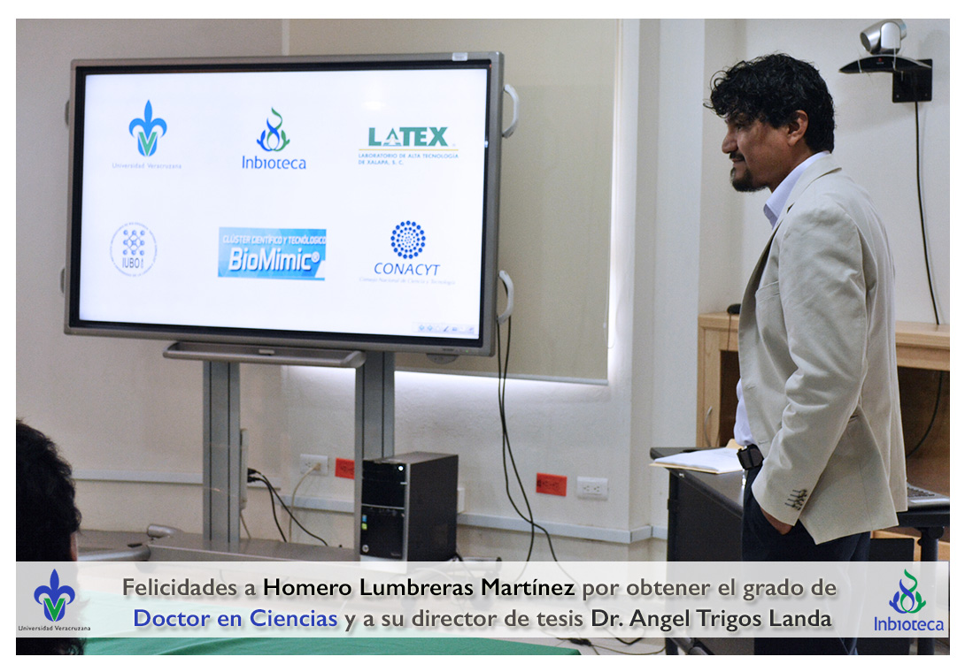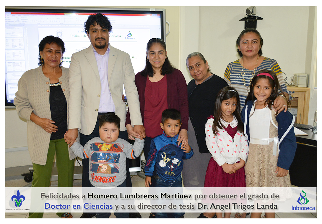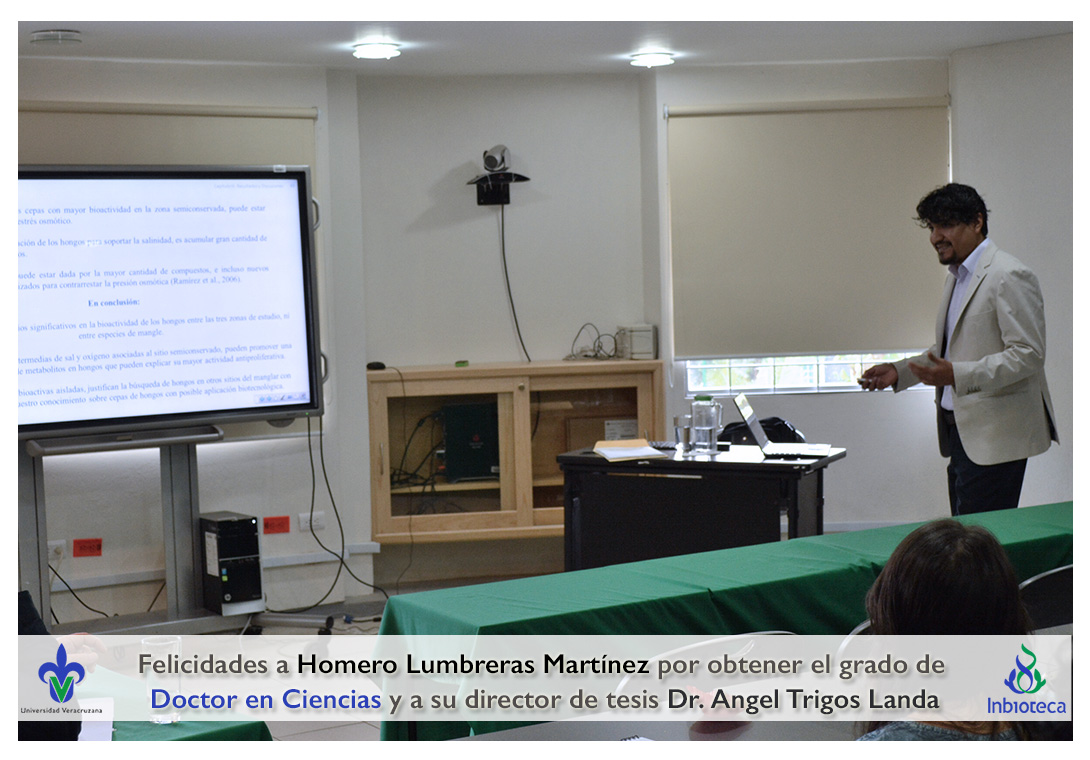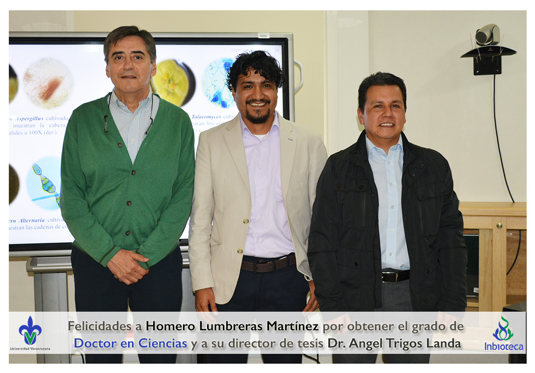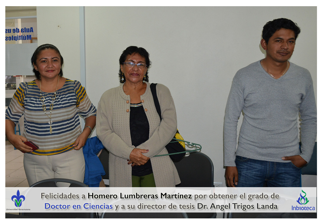 Felicidades a Homero Lumbreras martinez por obtener el grado de Doctor en Ciencias en Ecología y Biotecnología, a su director de tesis Dr. Angel Rafael Trigos Landa, a su codirector de tesis Dr. Cesar Espinoza Ramírez, a su comité y a todos los que contribuyeron en el trabajo realizado.