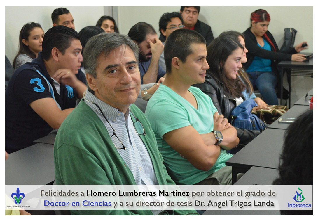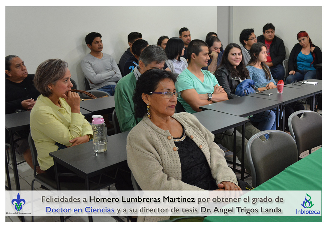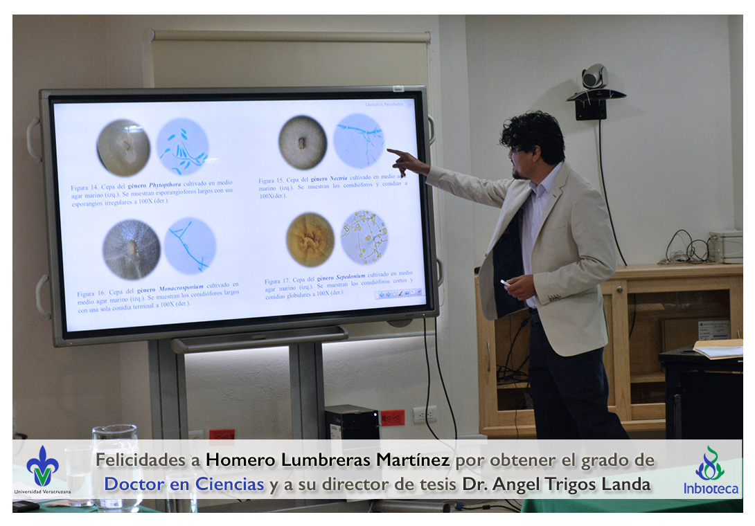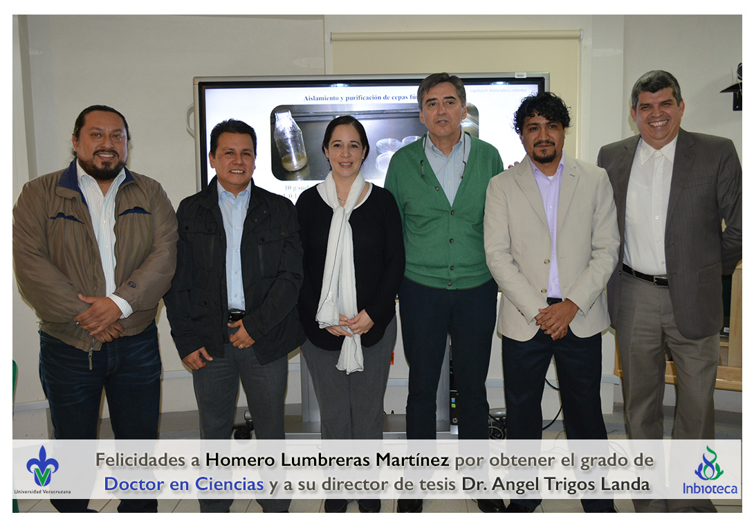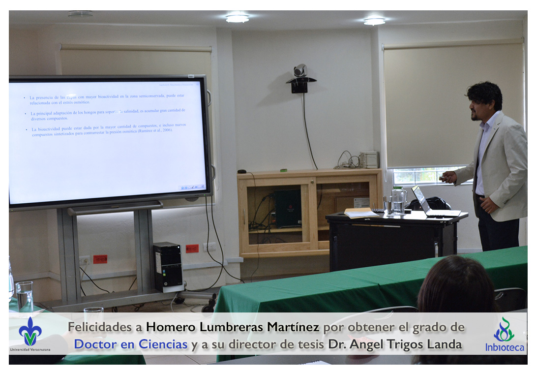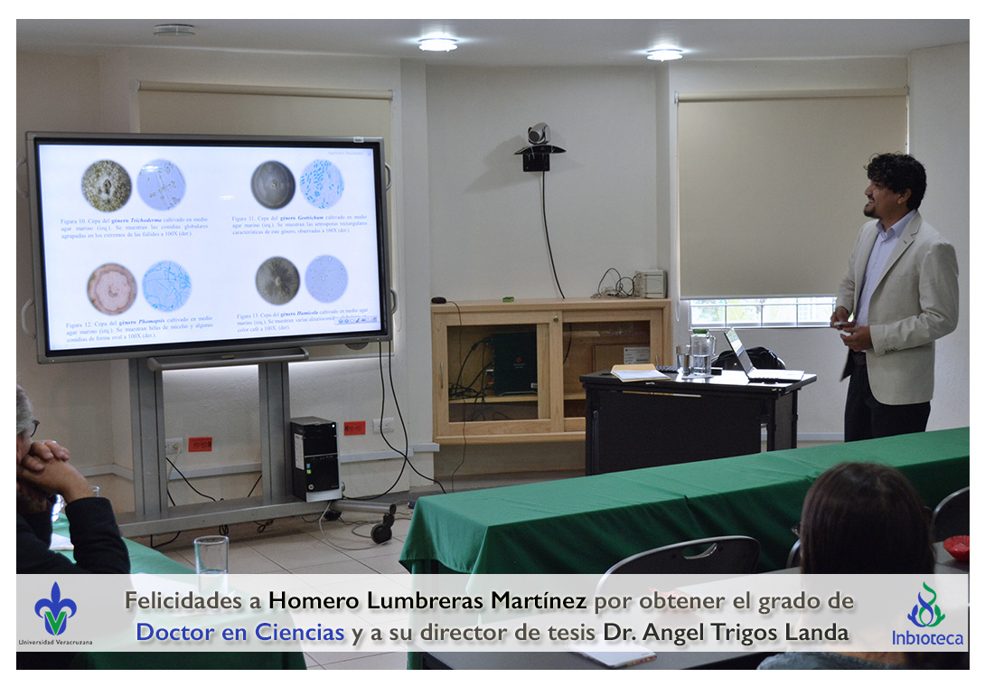 Felicidades a Homero Lumbreras martinez por obtener el grado de Doctor en Ciencias en Ecología y Biotecnología, a su director de tesis Dr. Angel Rafael Trigos Landa, a su codirector de tesis Dr. Cesar Espinoza Ramírez, a su comité y a todos los que contribuyeron en el trabajo realizado.