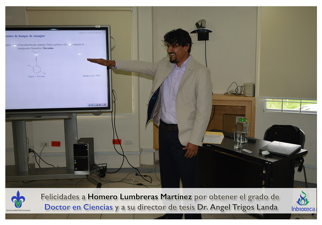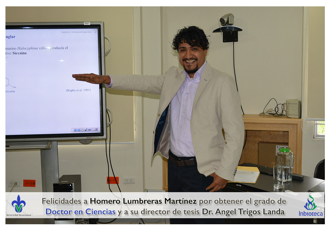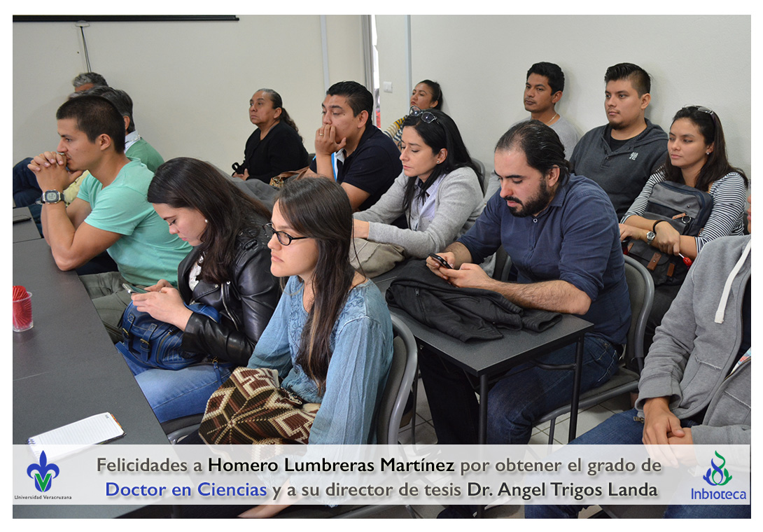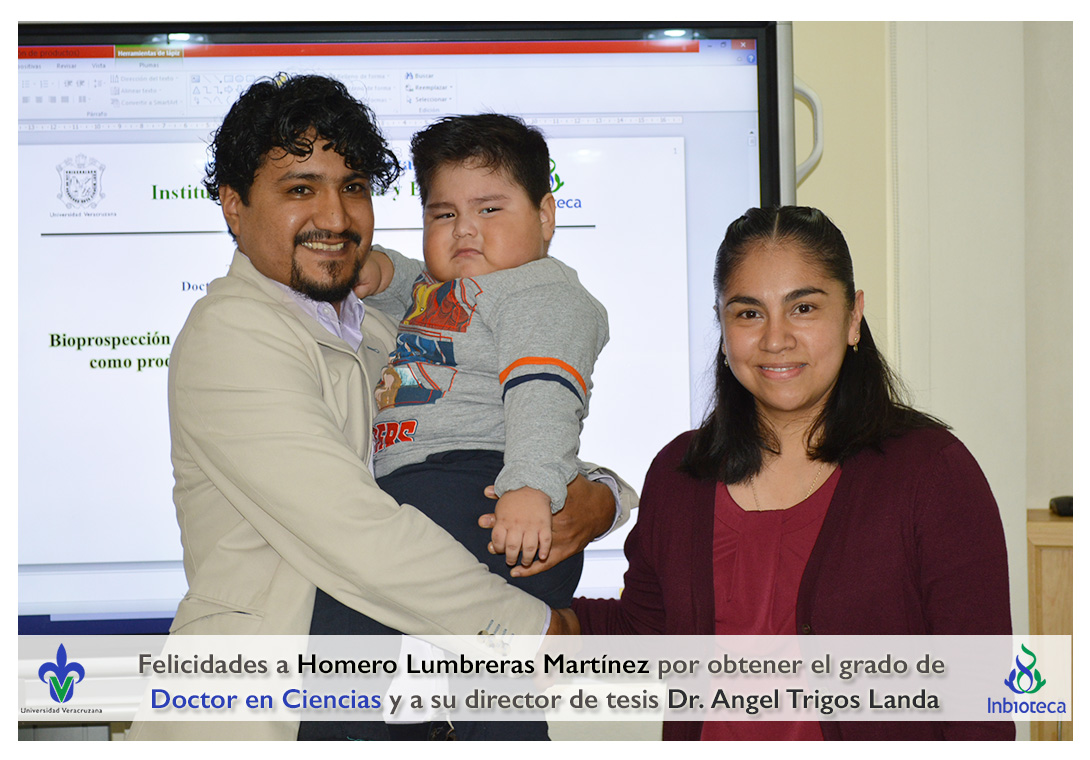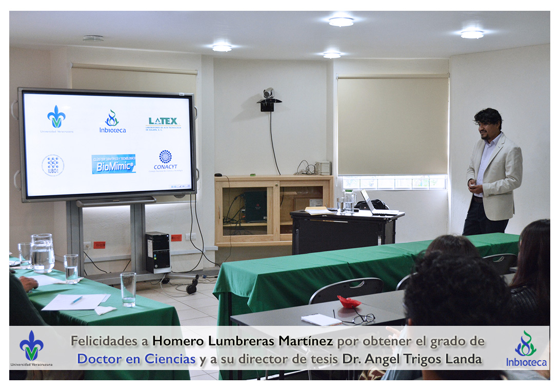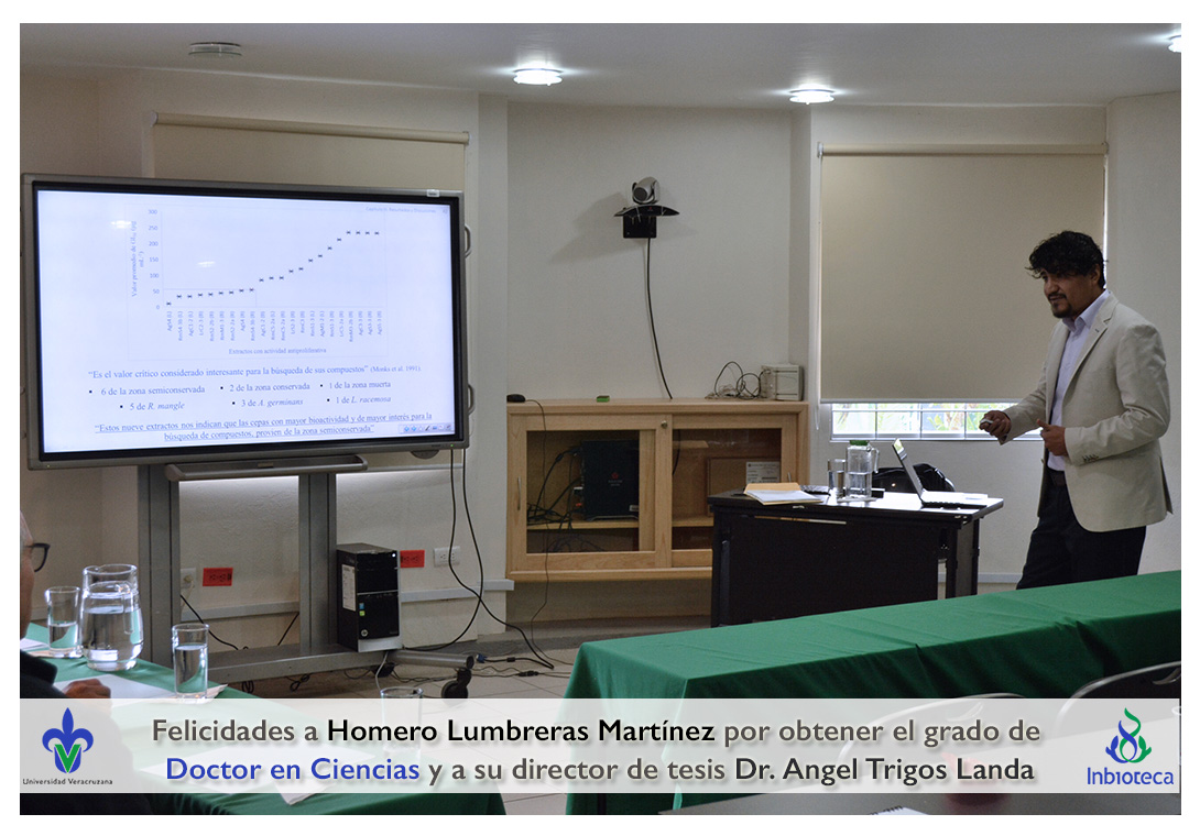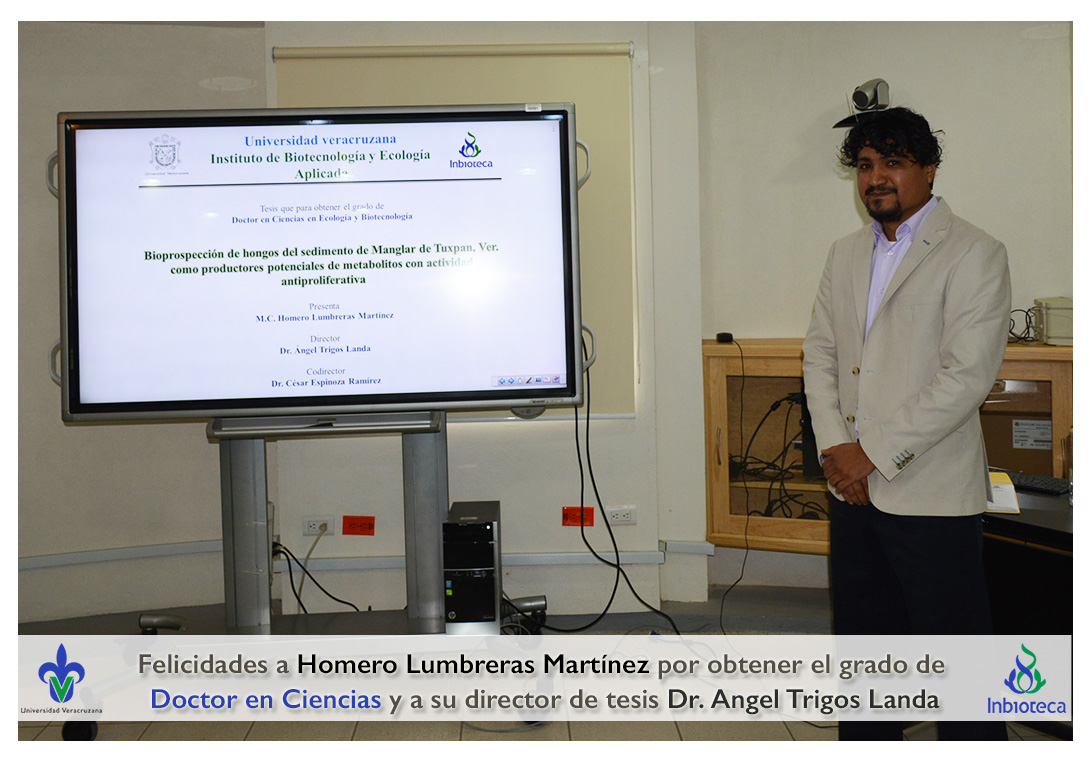 Felicidades a Homero Lumbreras martinez por obtener el grado de Doctor en Ciencias en Ecología y Biotecnología, a su director de tesis Dr. Angel Rafael Trigos Landa, a su codirector de tesis Dr. Cesar Espinoza Ramírez, a su comité y a todos los que contribuyeron en el trabajo realizado.