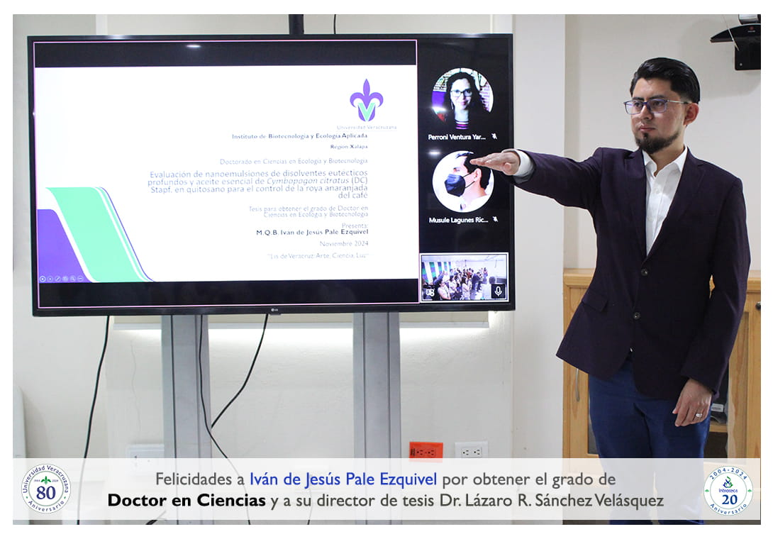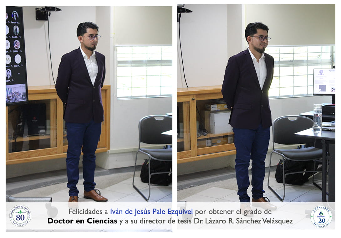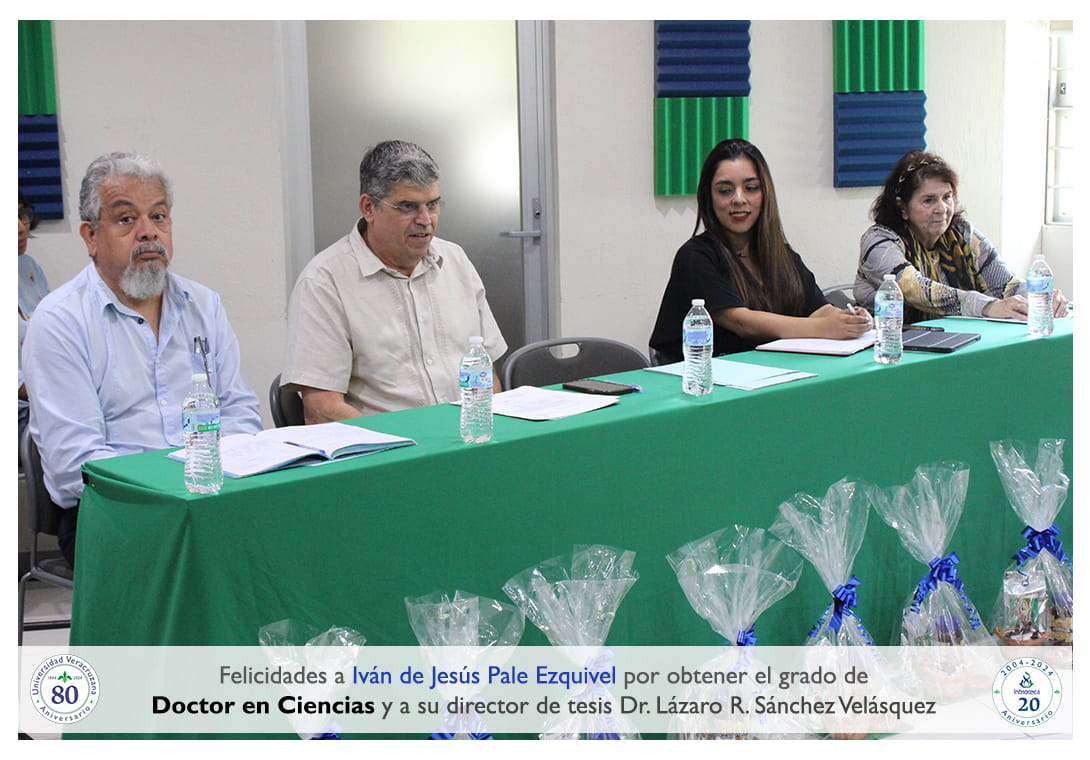 Felicidades al M.Q.B. Iván de Jesús Pale Ezquivel por obtener por Unanimidad el grado de Doctor en Ciencias en Ecología y Biotecnología, a su director de tesis Dr. Lázaro Rafael Sánchez Velásquez, a su codirectora de tesis Dra. Zaira Julieta Domínguez Esquivel (Instituto de Química Aplicada – UV), a su comité asesor y a todos los que contribuyeron en el trabajo realizado. ¡Enhorabuena!