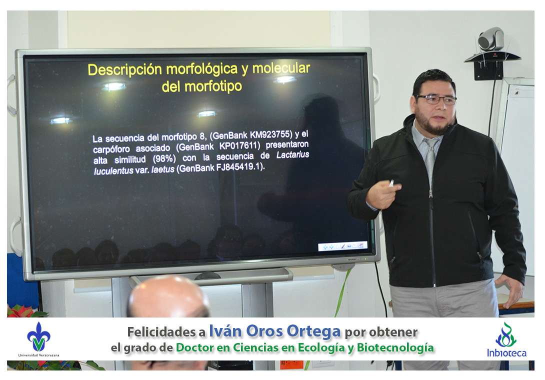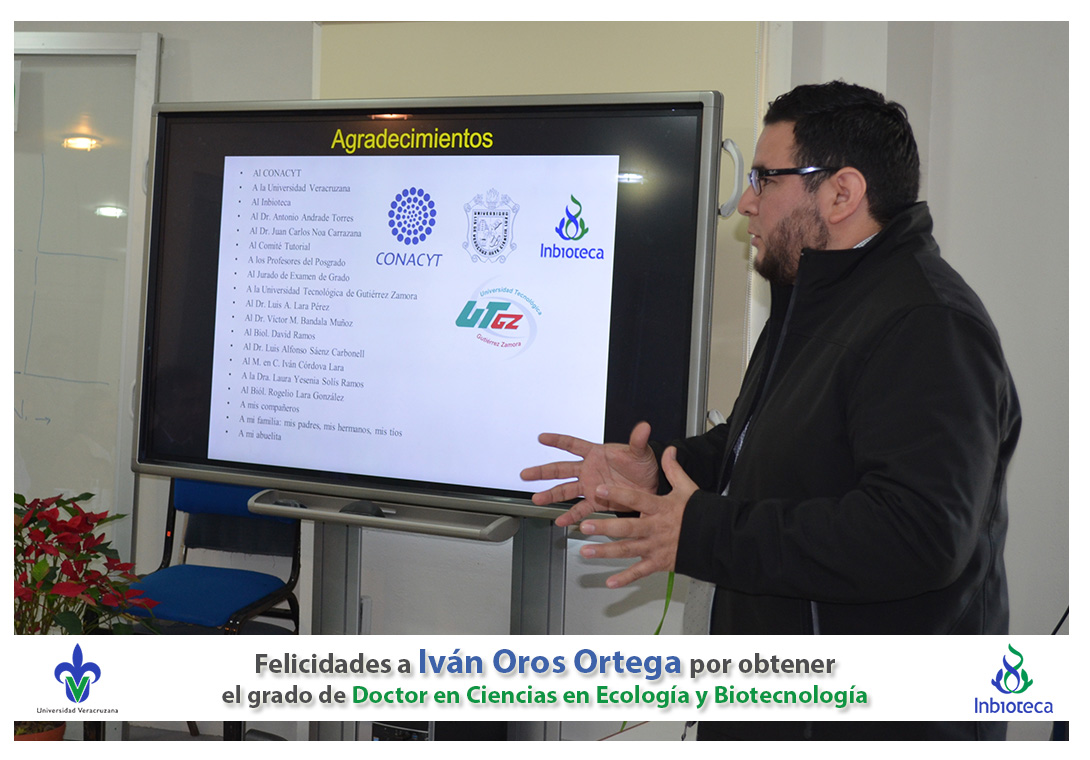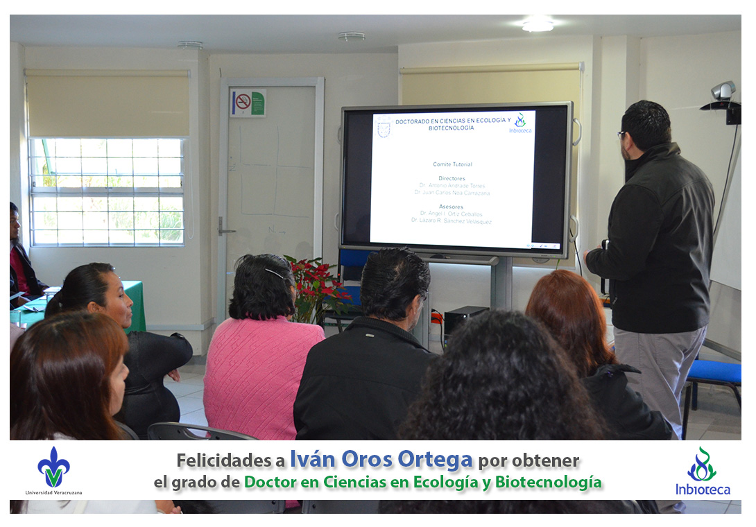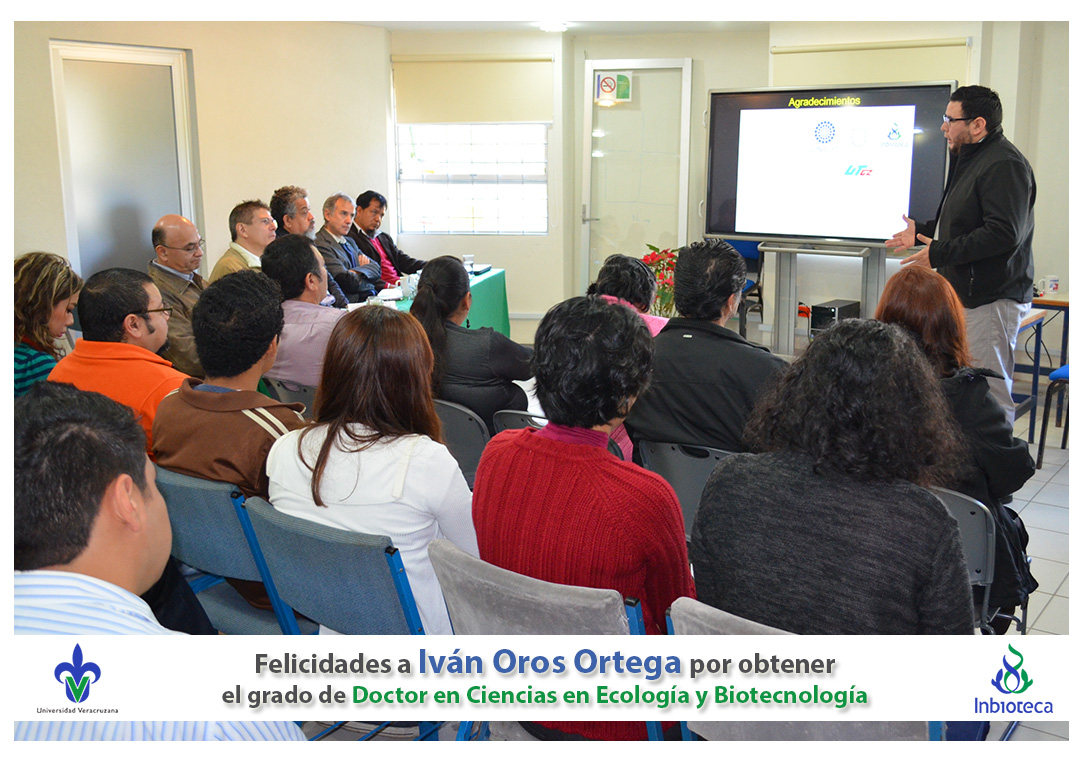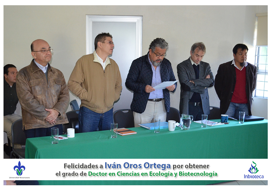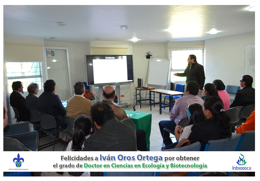 28 de Enero de 2015.- En el aula de usos multiples del Instituto de Biotecnología y Ecología Aplicada INBIOTECA a las 10:00 horas, se realizó el examen de grado del DCEB con la tesis titulada "Estructura de la comunidad de hongos ectomicorrizógenos en bosque de Abies religiosa (H. B. K.) Schl. Et Cham, a través de un gradiente altitudinal.".