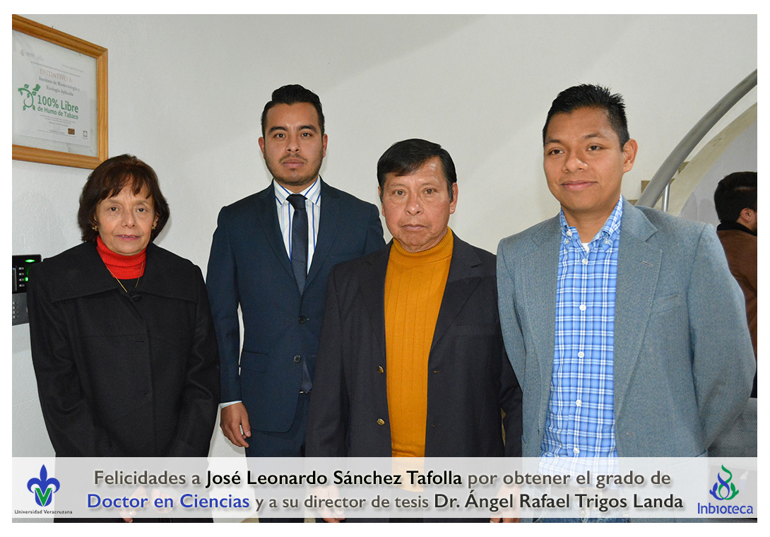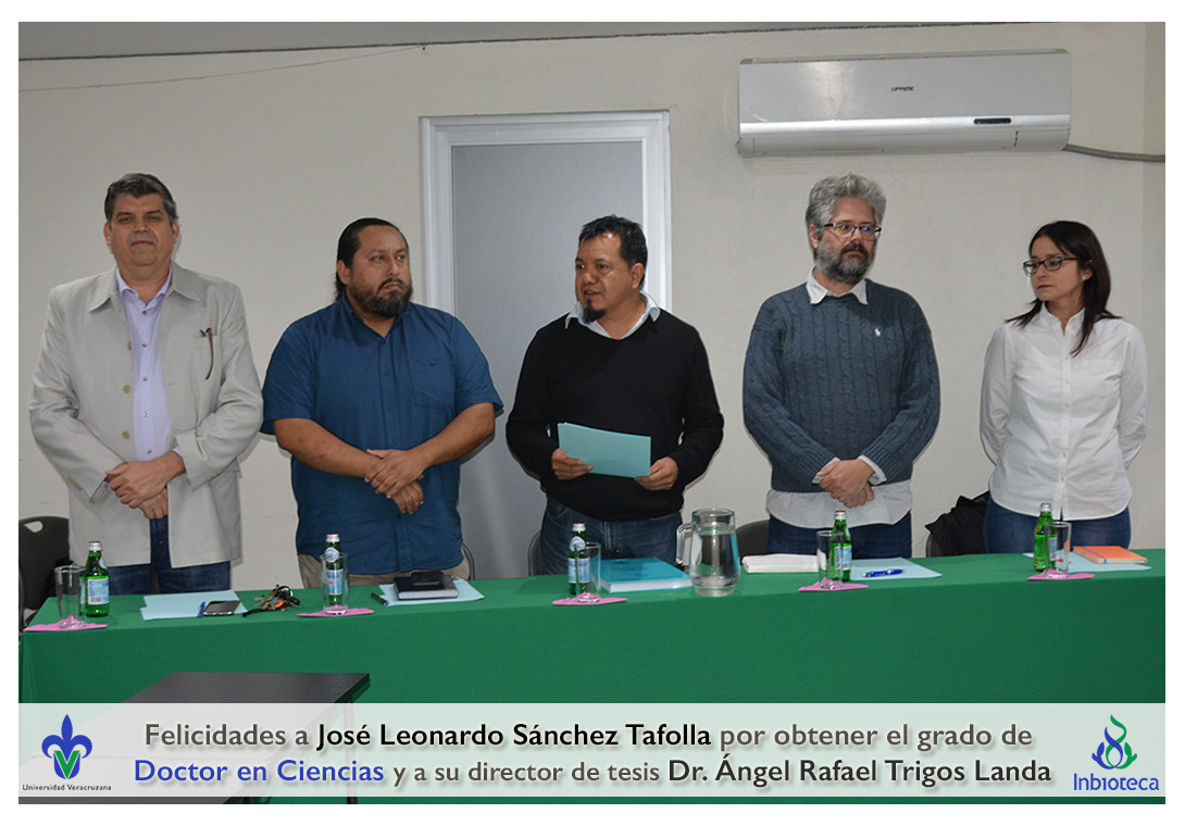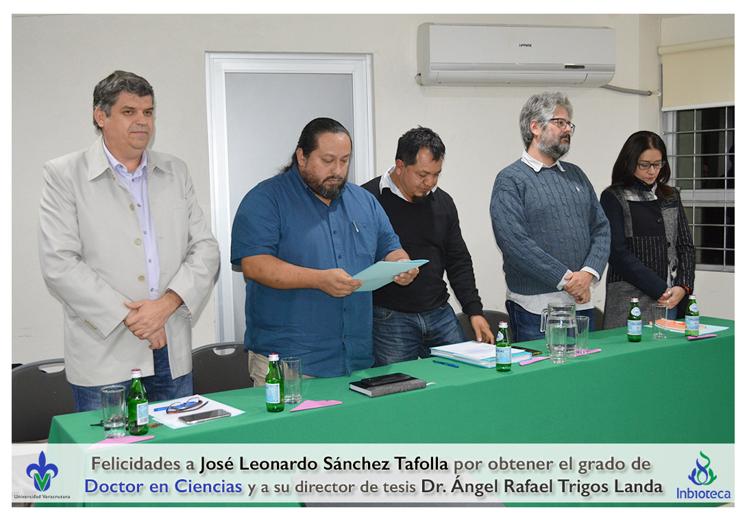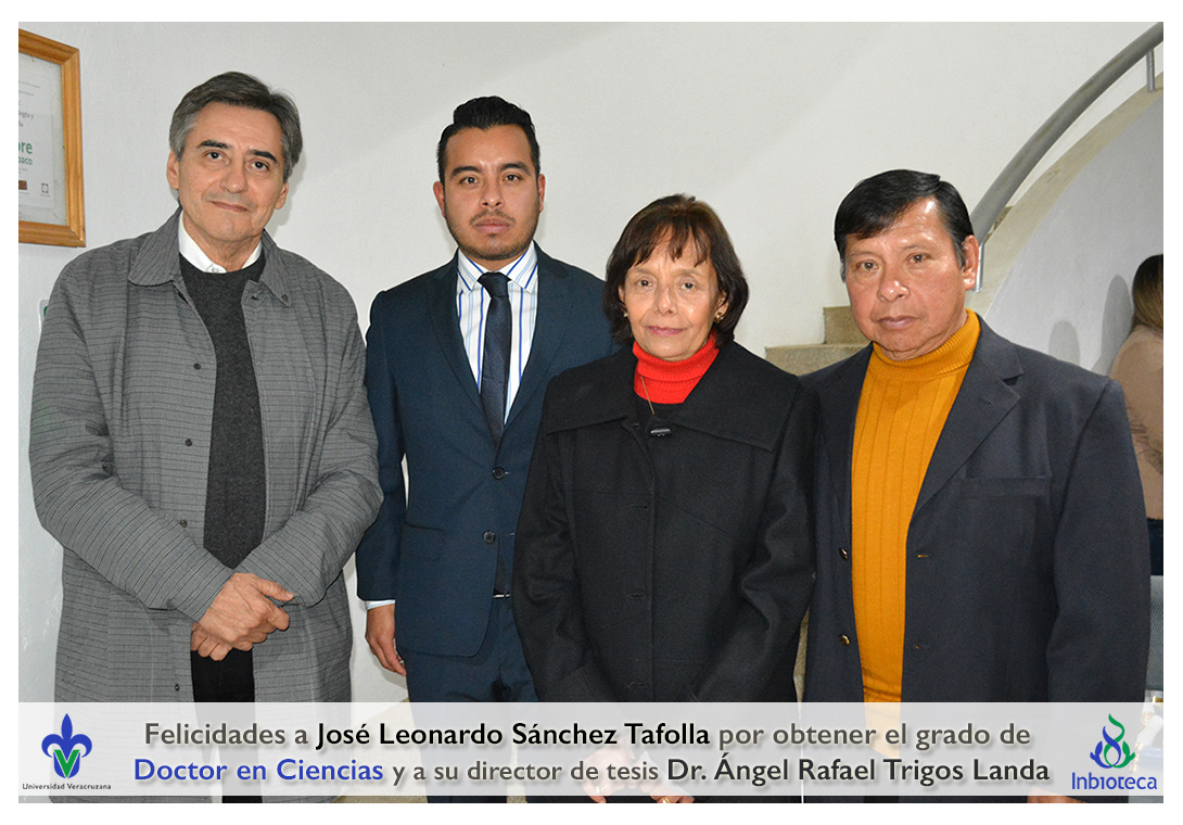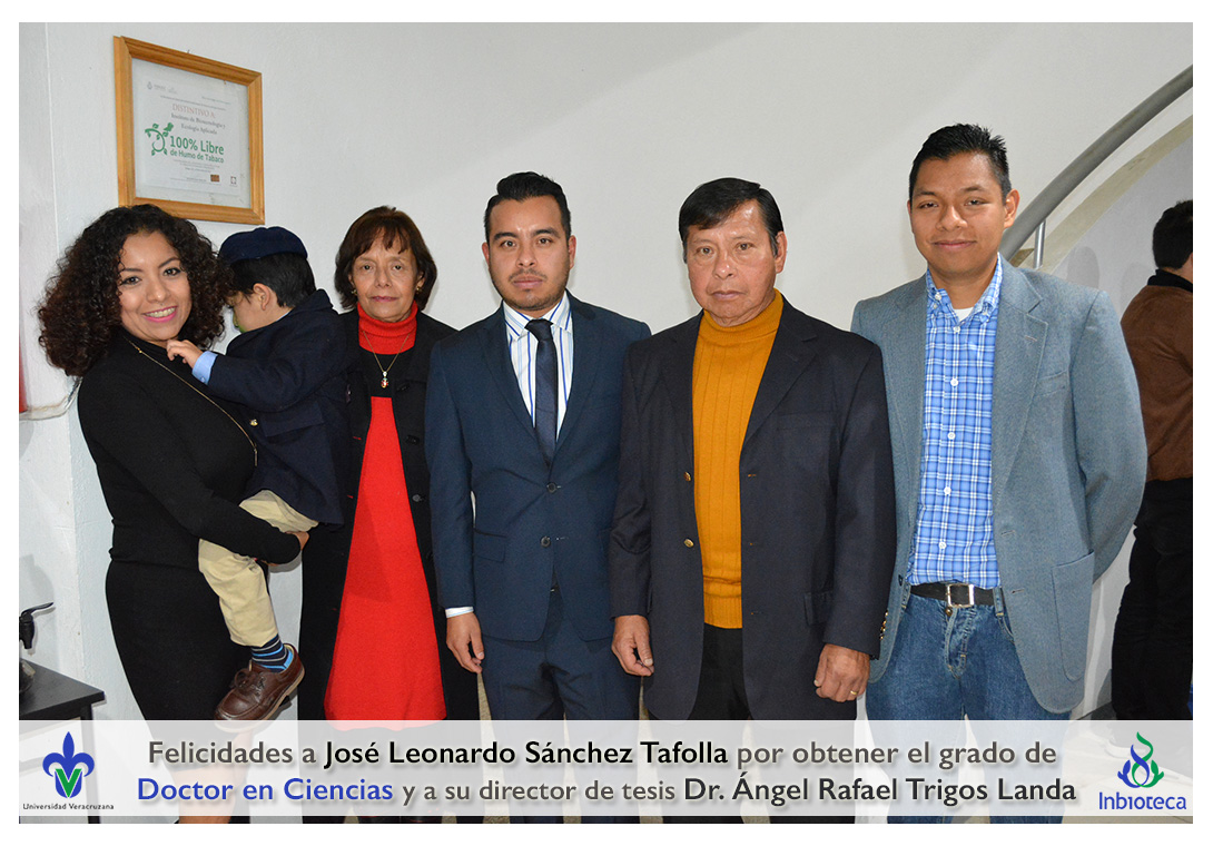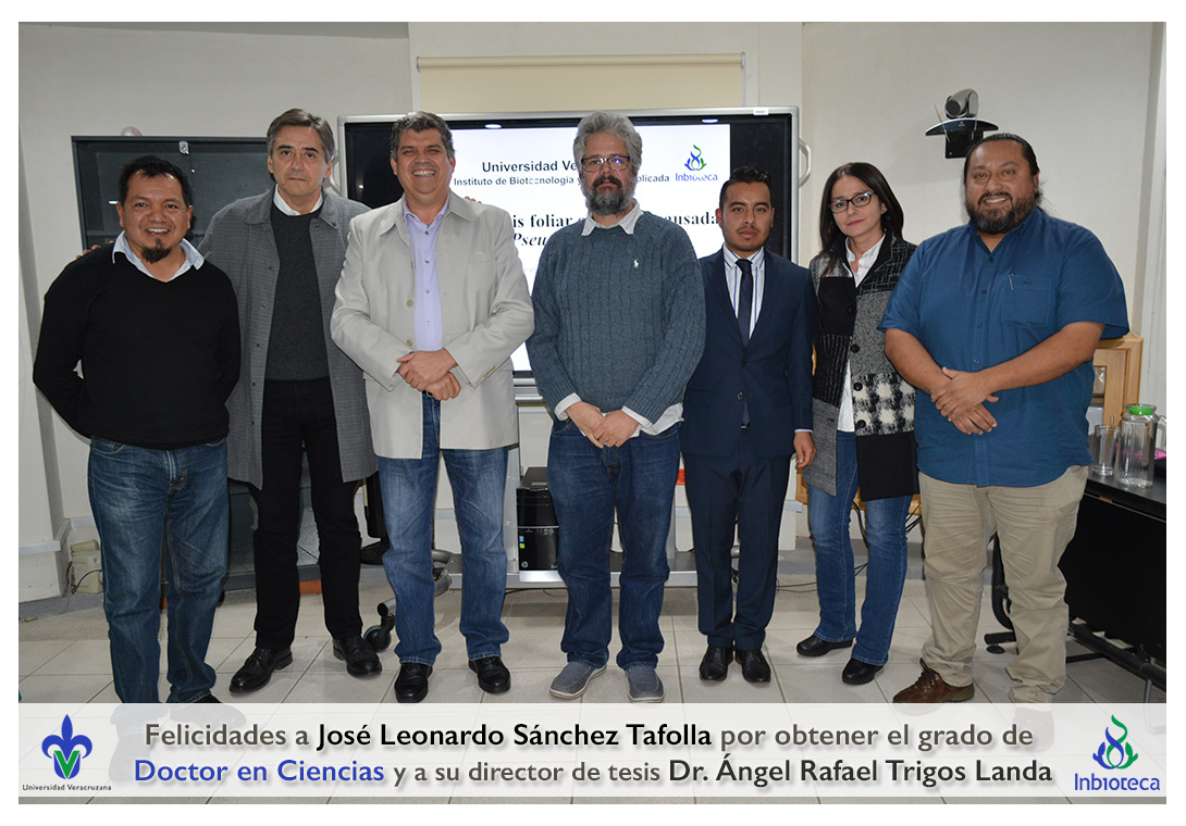 Felicidades a José Leonardo Sánchez Tafolla por obtener el grado de Doctor en Ciencias en Ecología y Biotecnología, a su director de tesis Dr. Ángel Rafael Trigos Landa, a su comité y a todos los que contribuyeron en el trabajo realizado.