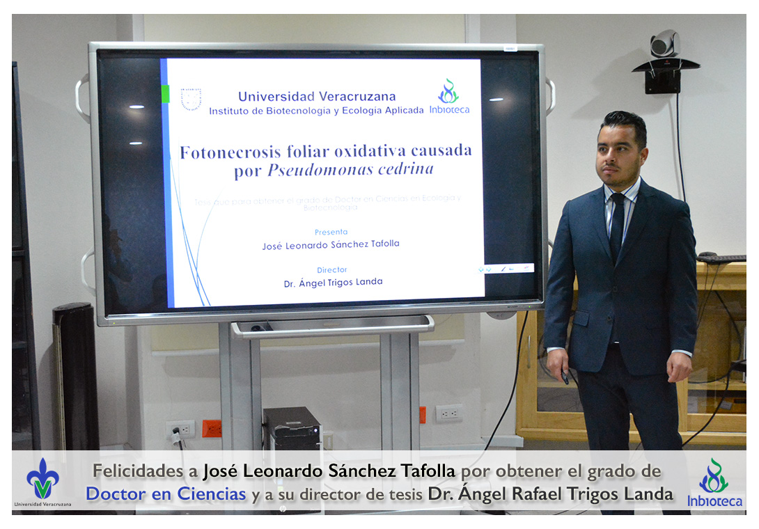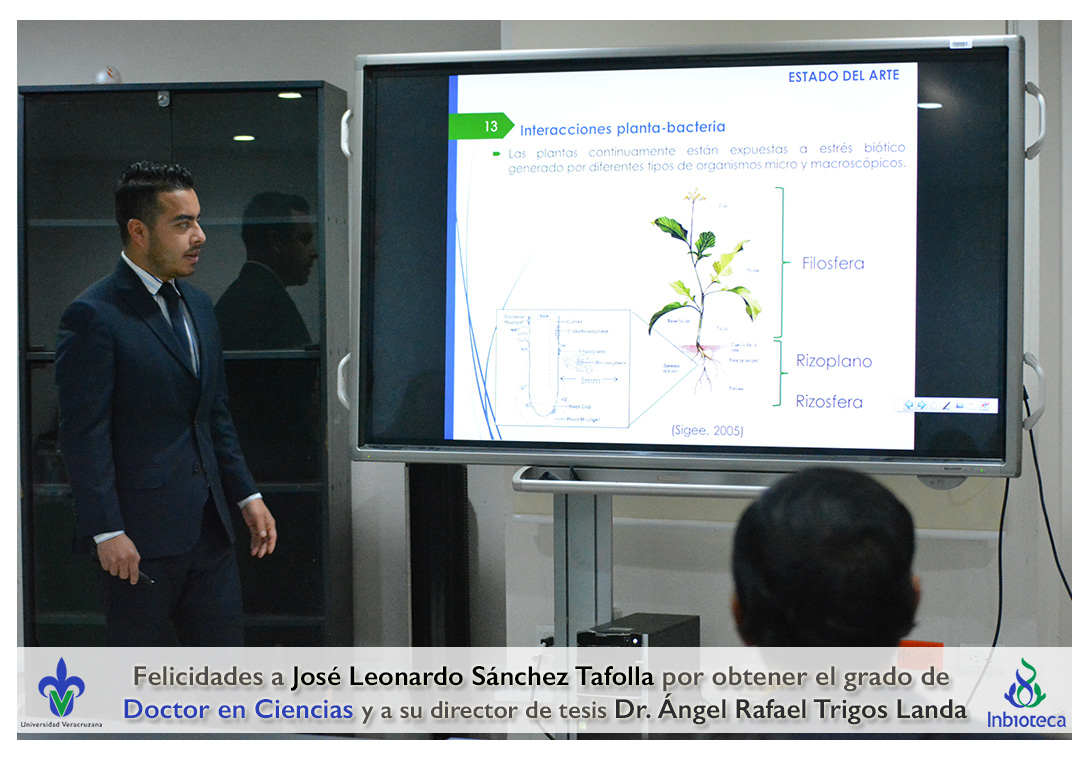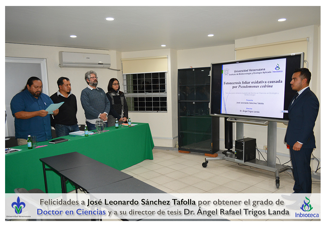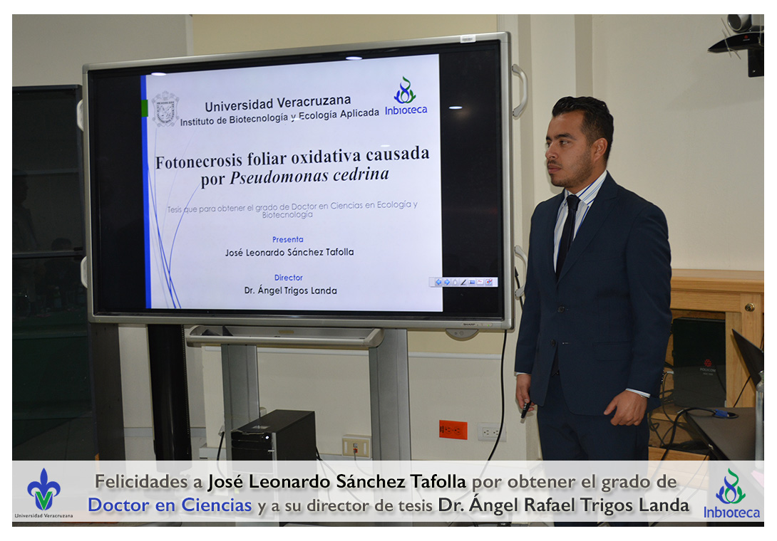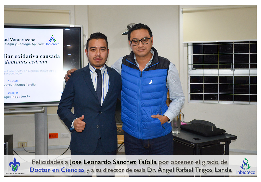 Felicidades a José Leonardo Sánchez Tafolla por obtener el grado de Doctor en Ciencias en Ecología y Biotecnología, a su director de tesis Dr. Ángel Rafael Trigos Landa, a su comité y a todos los que contribuyeron en el trabajo realizado.