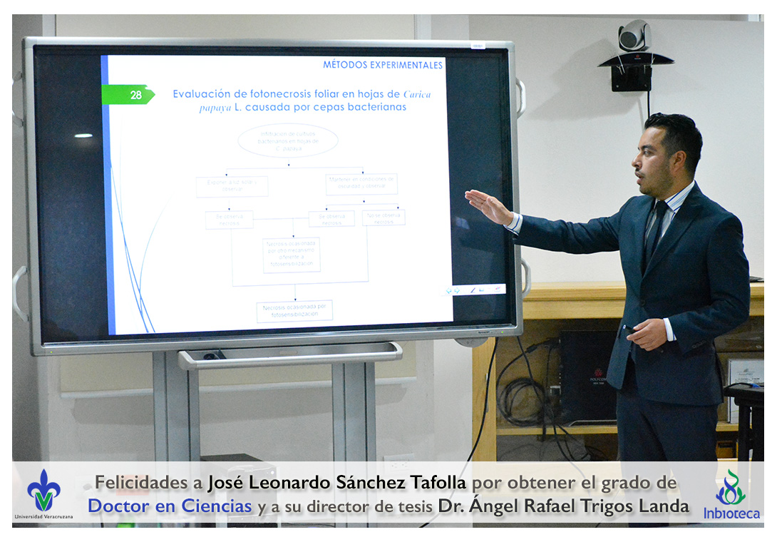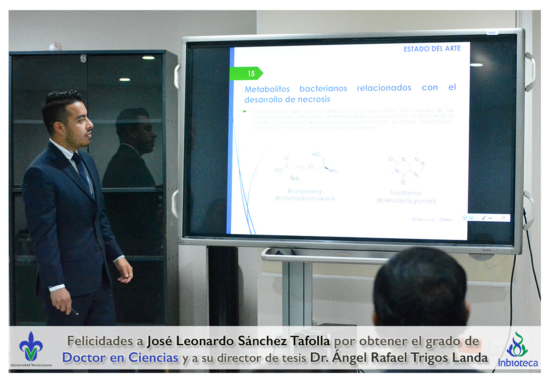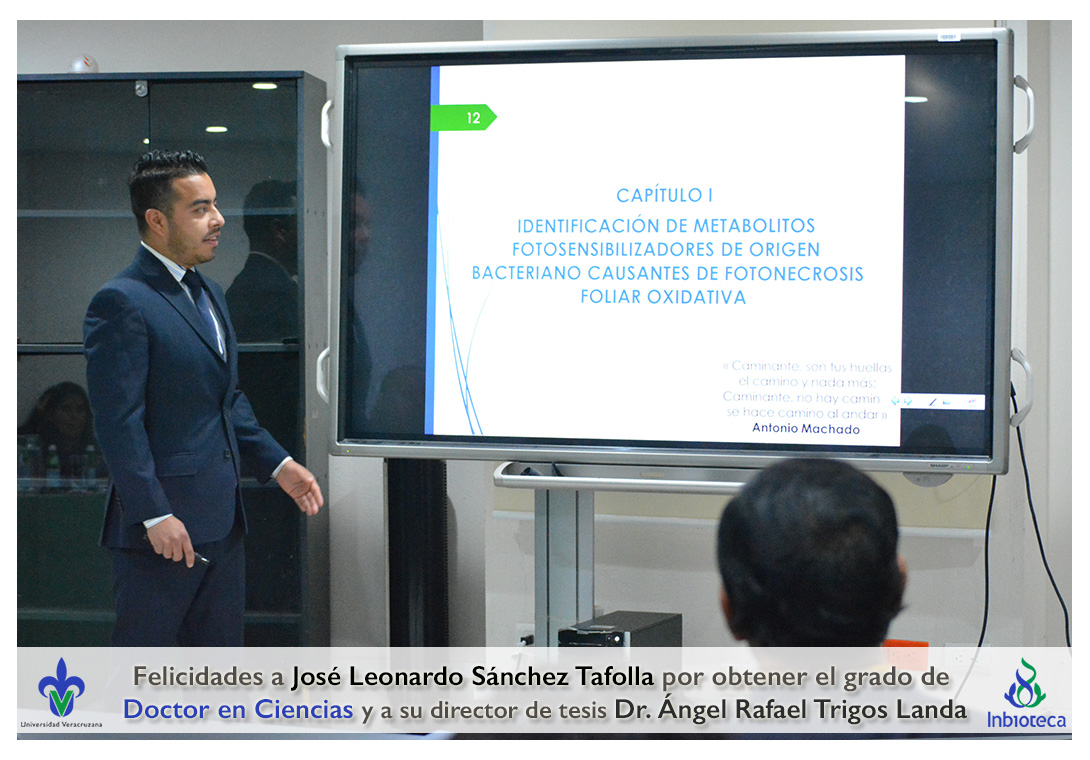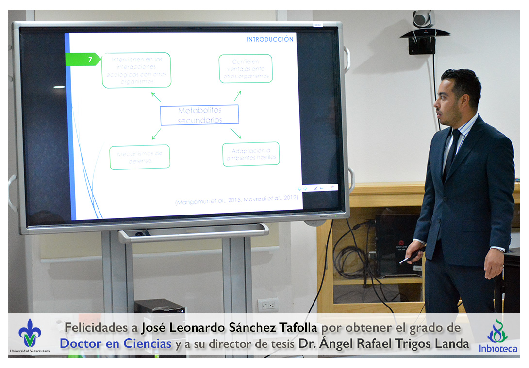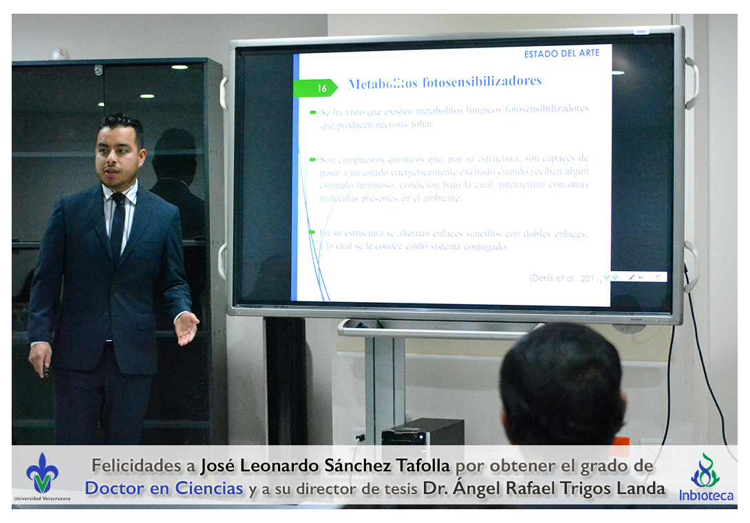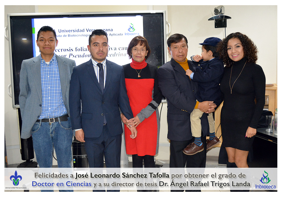 Felicidades a José Leonardo Sánchez Tafolla por obtener el grado de Doctor en Ciencias en Ecología y Biotecnología, a su director de tesis Dr. Ángel Rafael Trigos Landa, a su comité y a todos los que contribuyeron en el trabajo realizado.