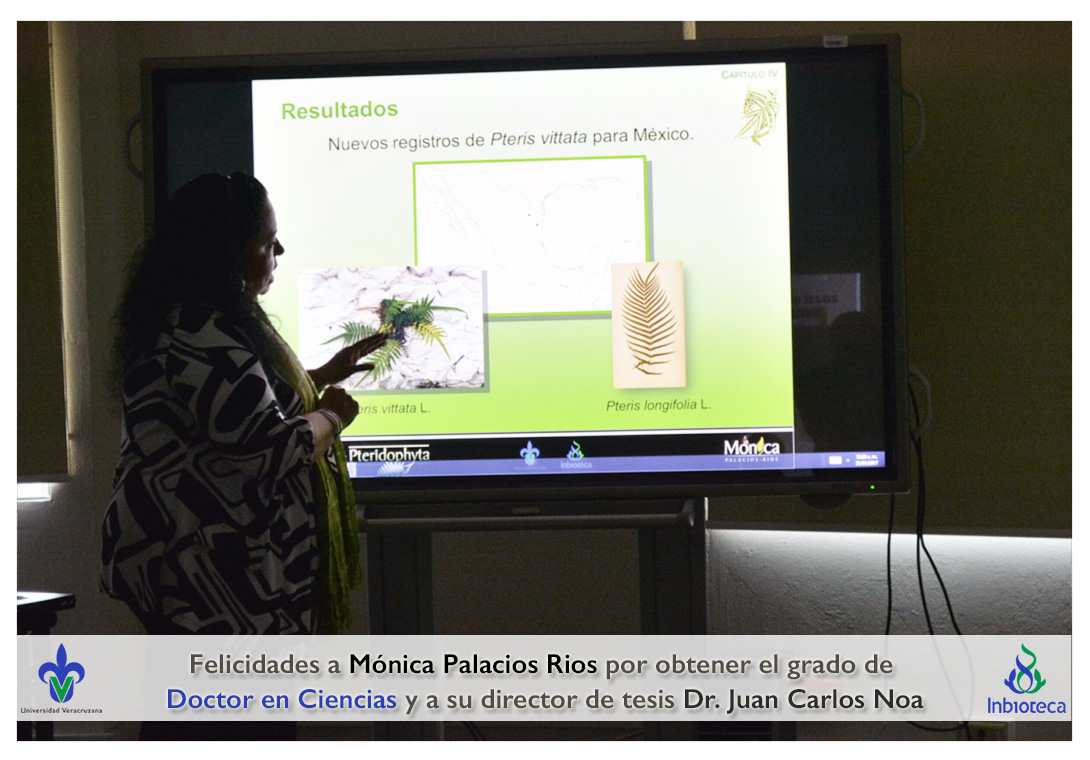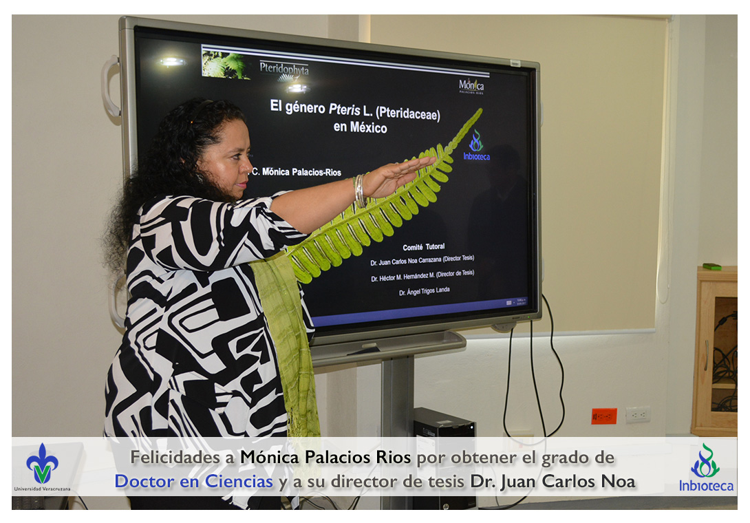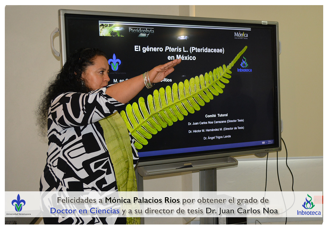 31 de Enero de 2017.- En el Aula de Usos Múltiples del INBIOTECA a las 10:00 horas, se realizó el examen de grado de Doctorado con la defensa pública de la tesis titulada: "El género Pteris (Pteridaceae) en México".