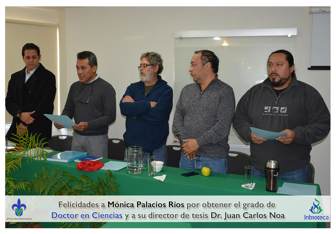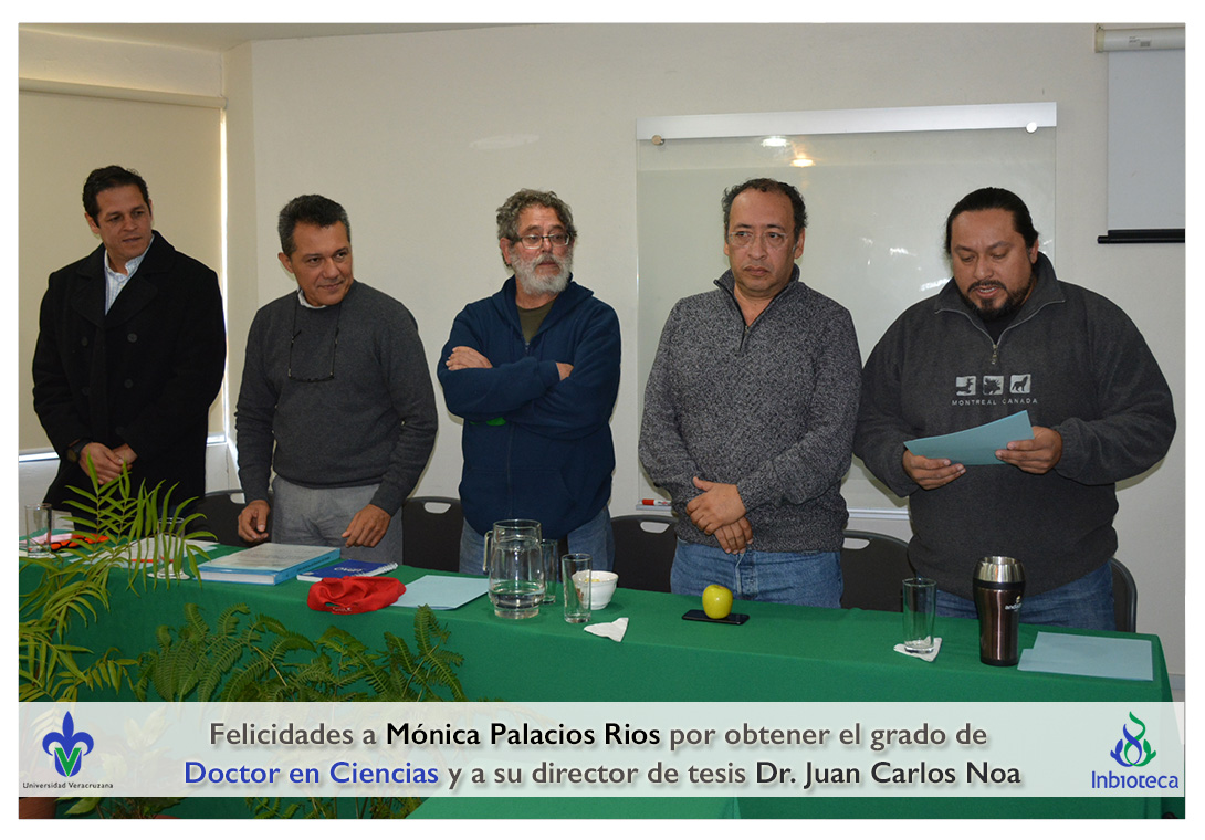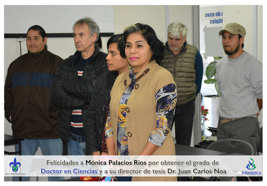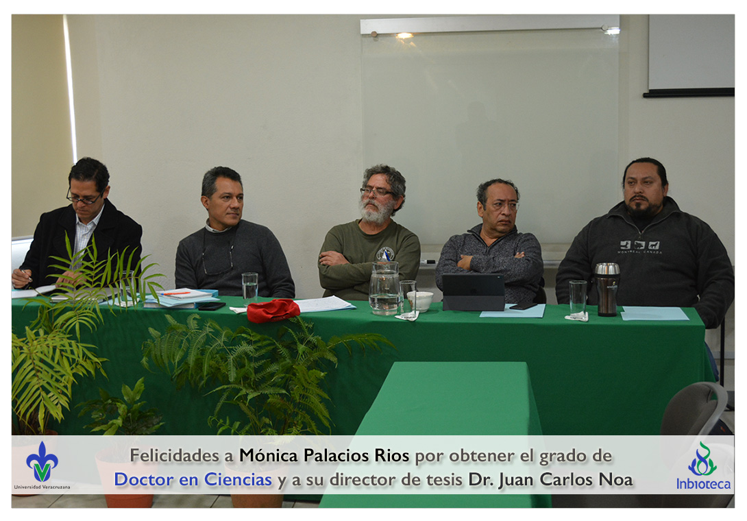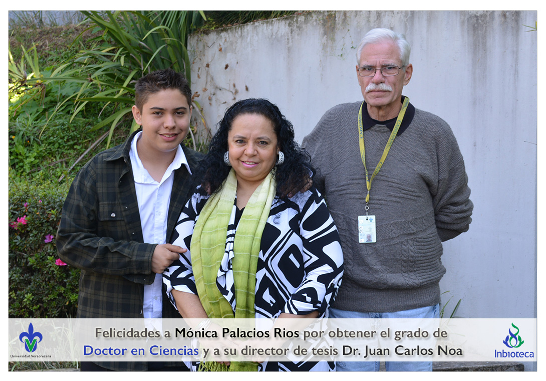 Felicidades a Mónica Palacios Rios por obtener el grado de Doctor en Ciencias en Ecología y Biotecnología, a su director de tesis Dr. Juan Carlos Noa Carrazana, a su codirector de tesis Dr. Héctor Manuel Hernández Macías, a su comité y a todos los que contribuyeron en el trabajo realizado.