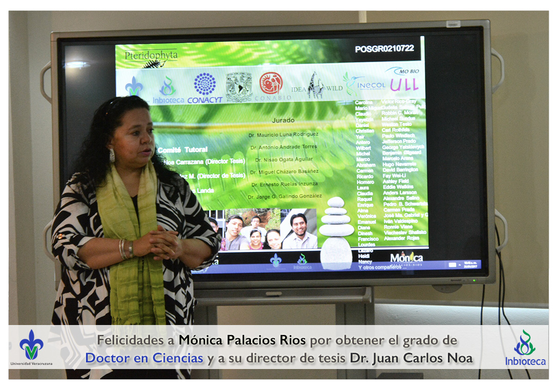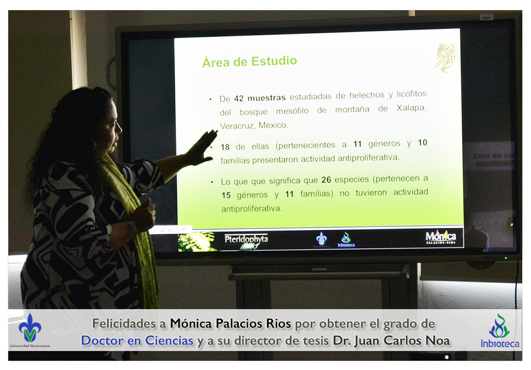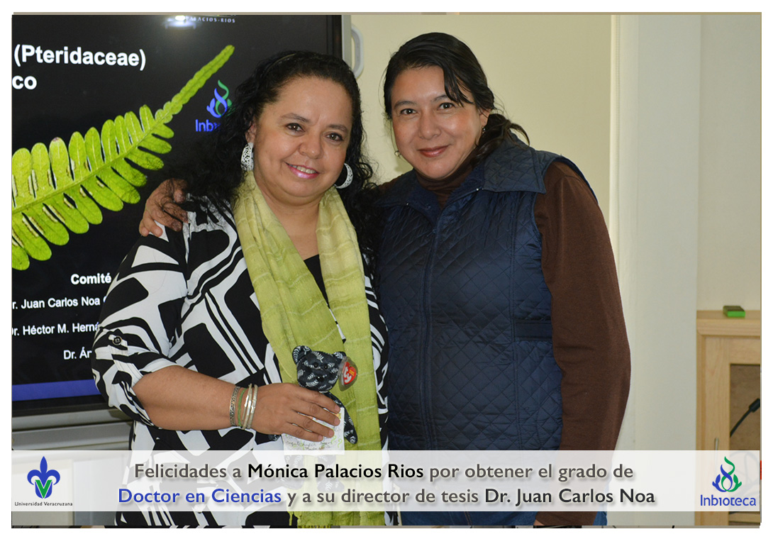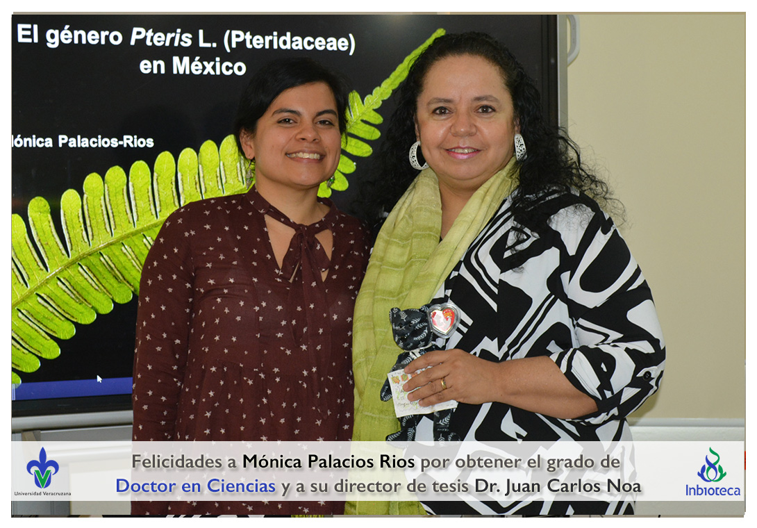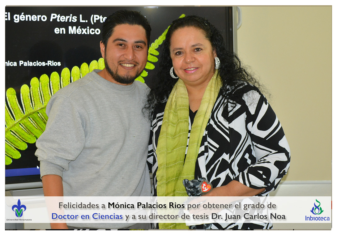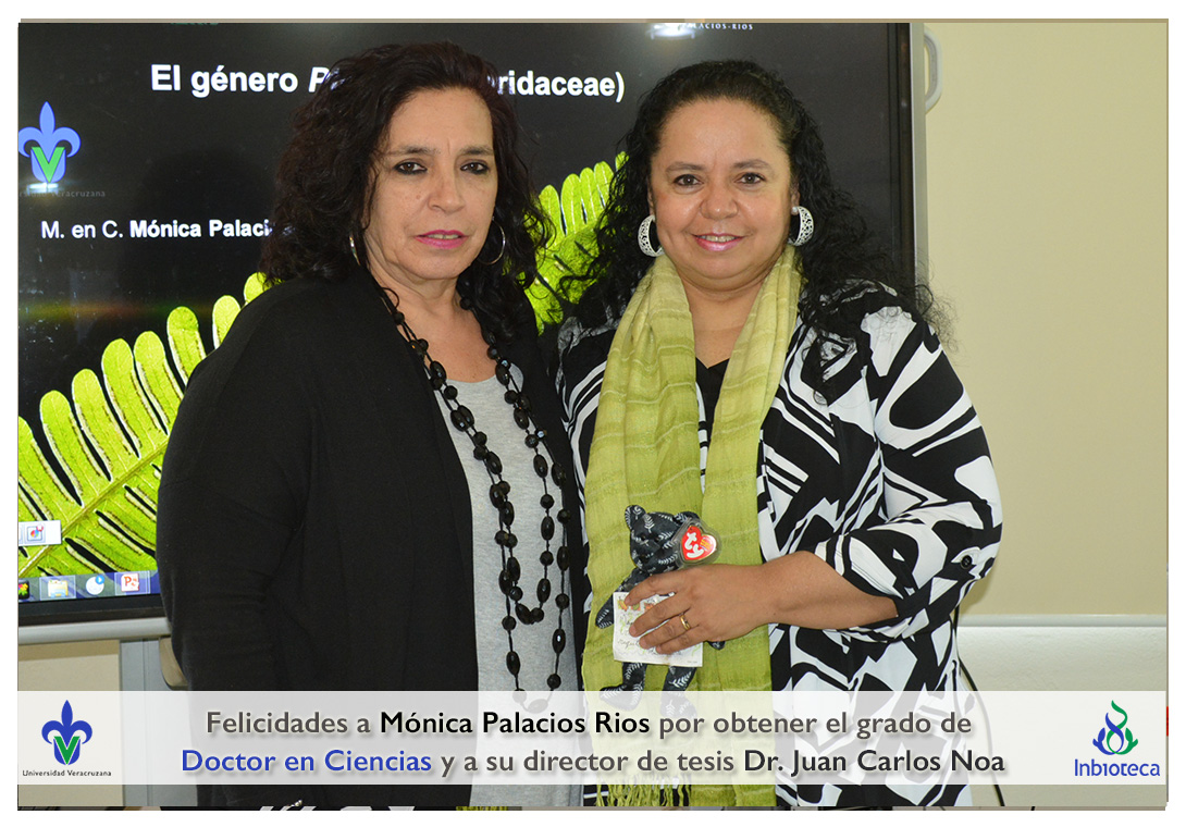 Felicidades a Mónica Palacios Rios por obtener el grado de Doctor en Ciencias en Ecología y Biotecnología, a su director de tesis Dr. Juan Carlos Noa Carrazana, a su codirector de tesis Dr. Héctor Manuel Hernández Macías, a su comité y a todos los que contribuyeron en el trabajo realizado.