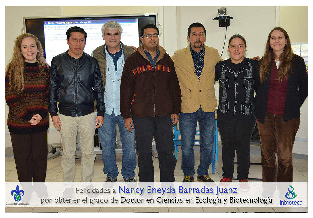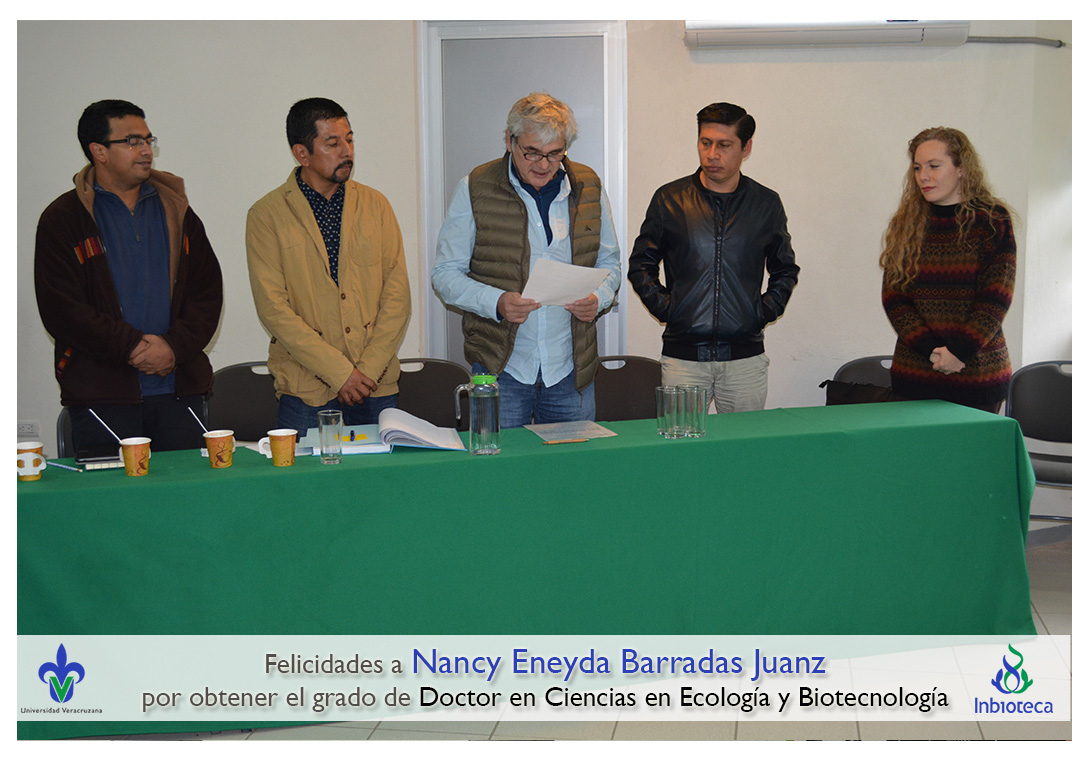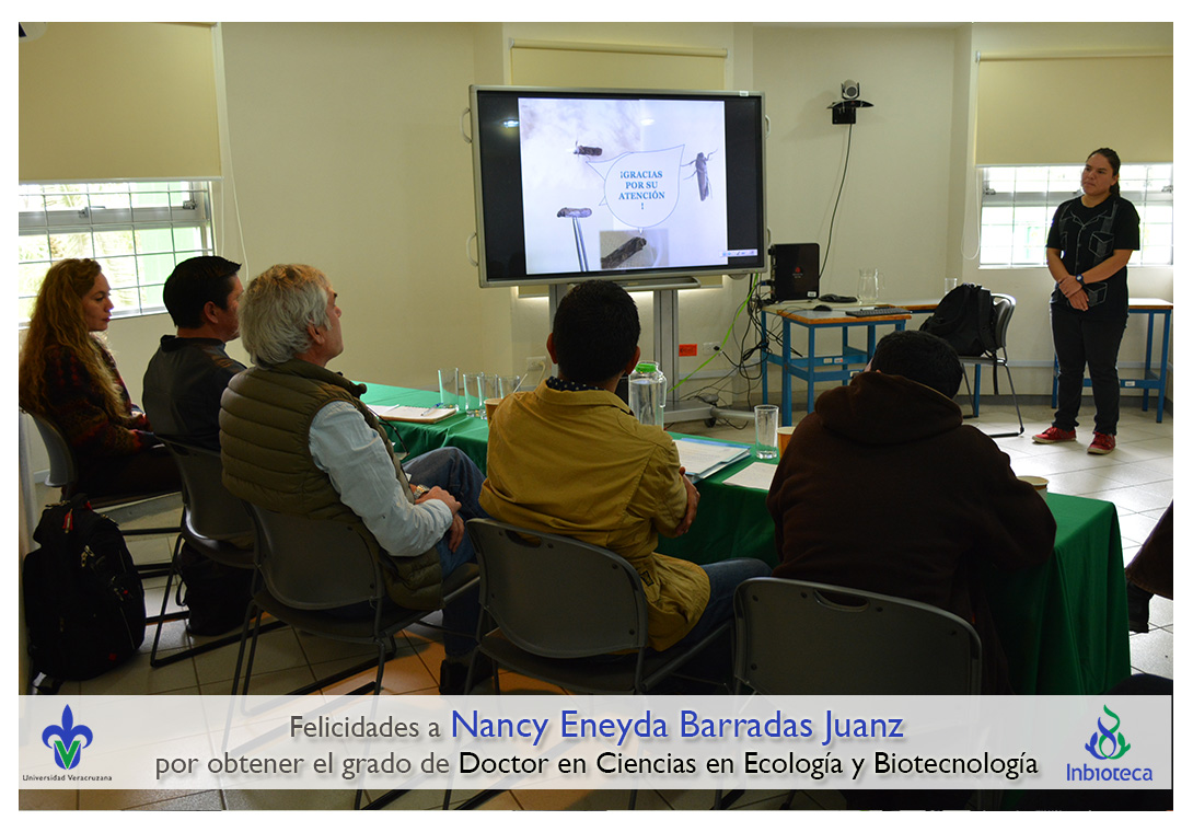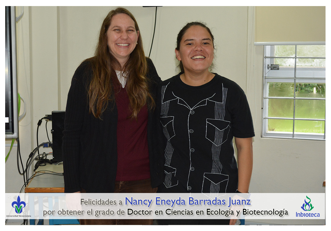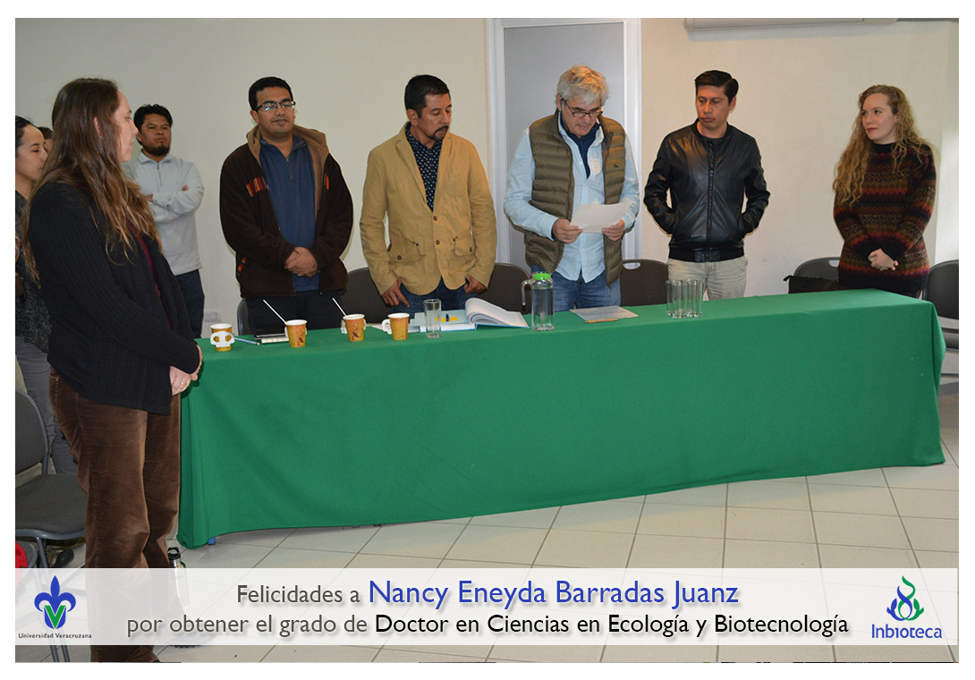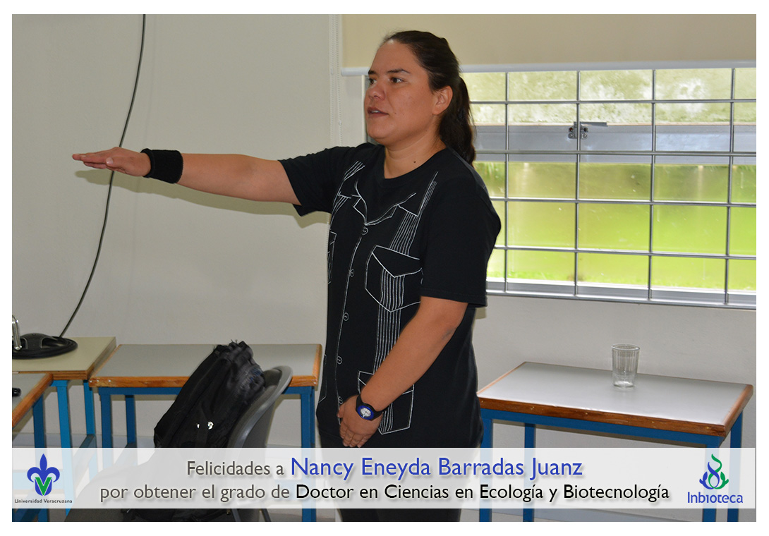 Felicidades a Nancy Eneyda Barradas Juanz por obtener el grado de Doctor en Ciencias en Ecología y Biotecnología, a su directora de tesis Dra. Diana Folger Pérez Staples, a su comité y a todos los que contribuyeron en el trabajo realizado.