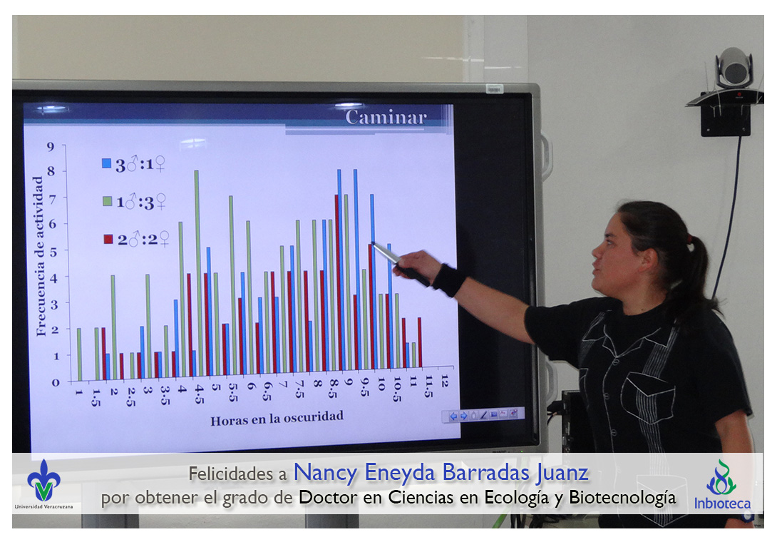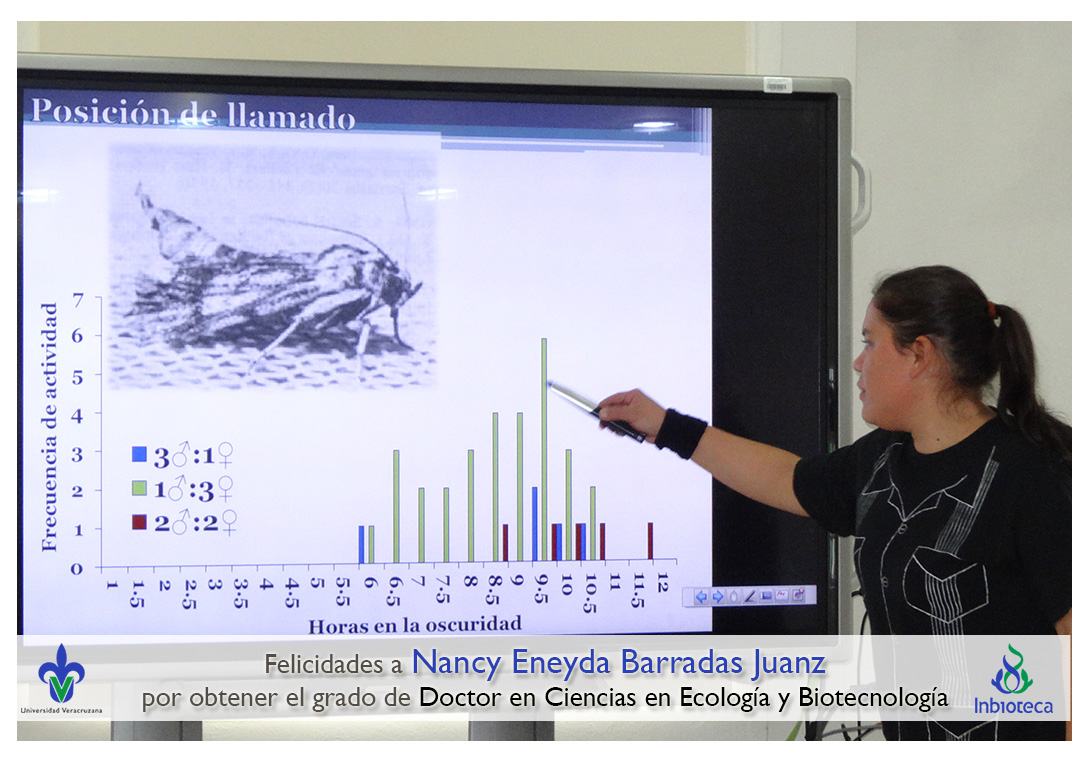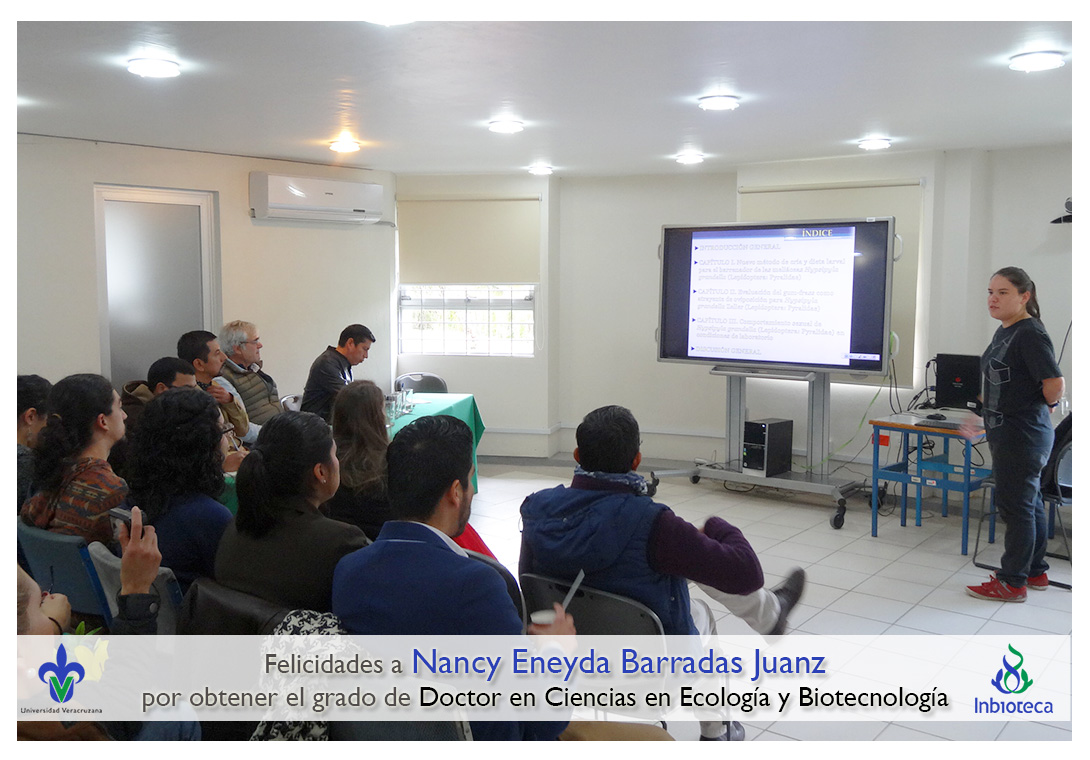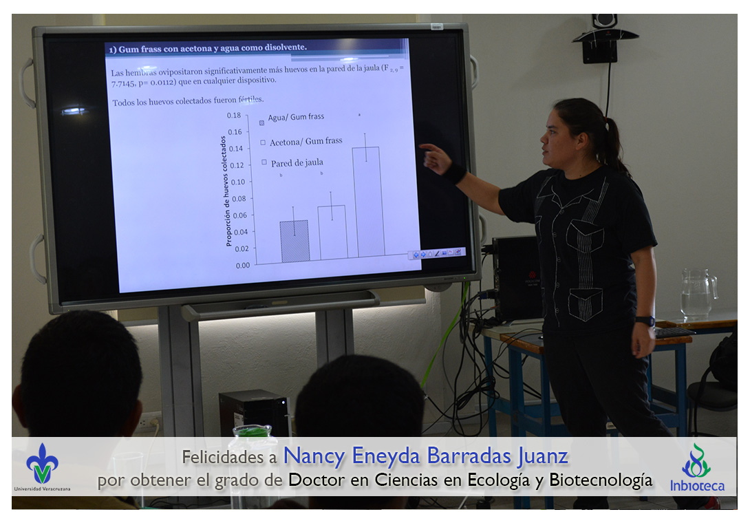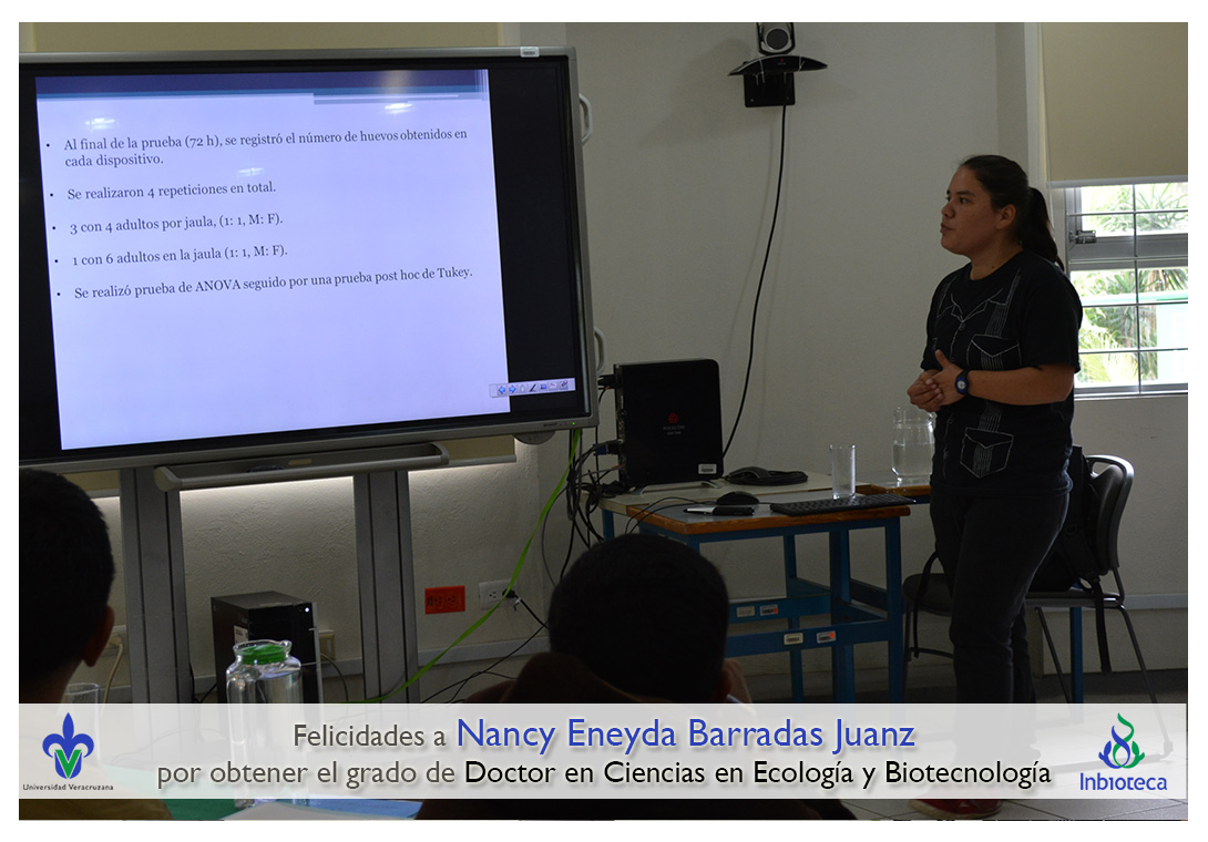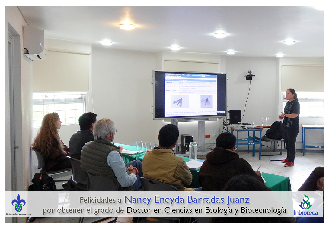 Felicidades a Nancy Eneyda Barradas Juanz por obtener el grado de Doctor en Ciencias en Ecología y Biotecnología, a su directora de tesis Dra. Diana Folger Pérez Staples, a su comité y a todos los que contribuyeron en el trabajo realizado.