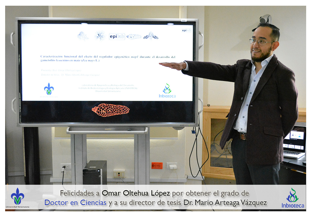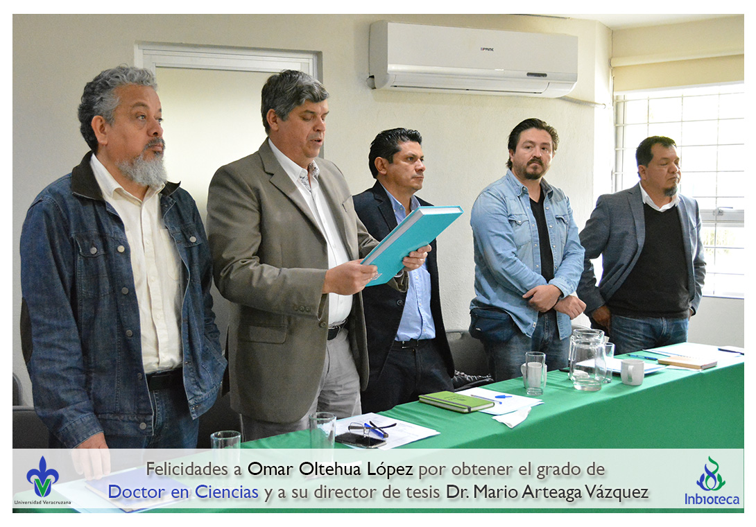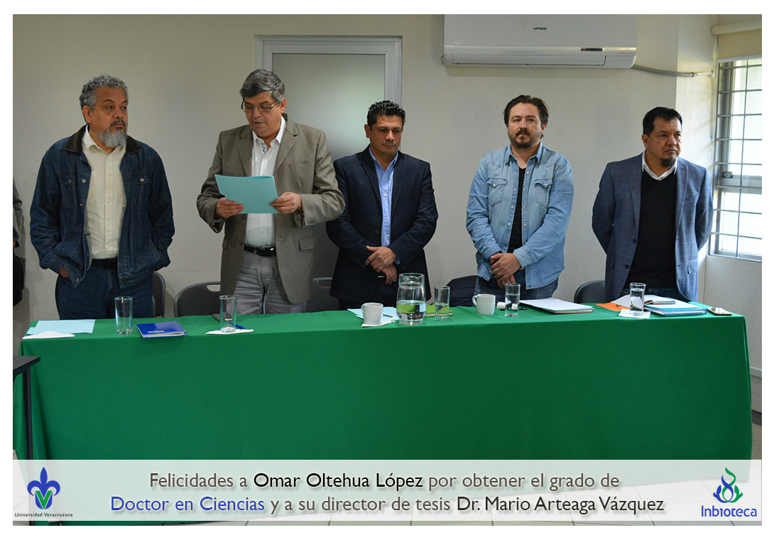 Felicidades a Omar Oltehua López por obtener el grado de Doctor en Ciencias en Ecología y Biotecnología, a su director de tesis Dr. Mario Alberto Arteaga Vázquez, a su comité y a todos los que contribuyeron en el trabajo realizado.