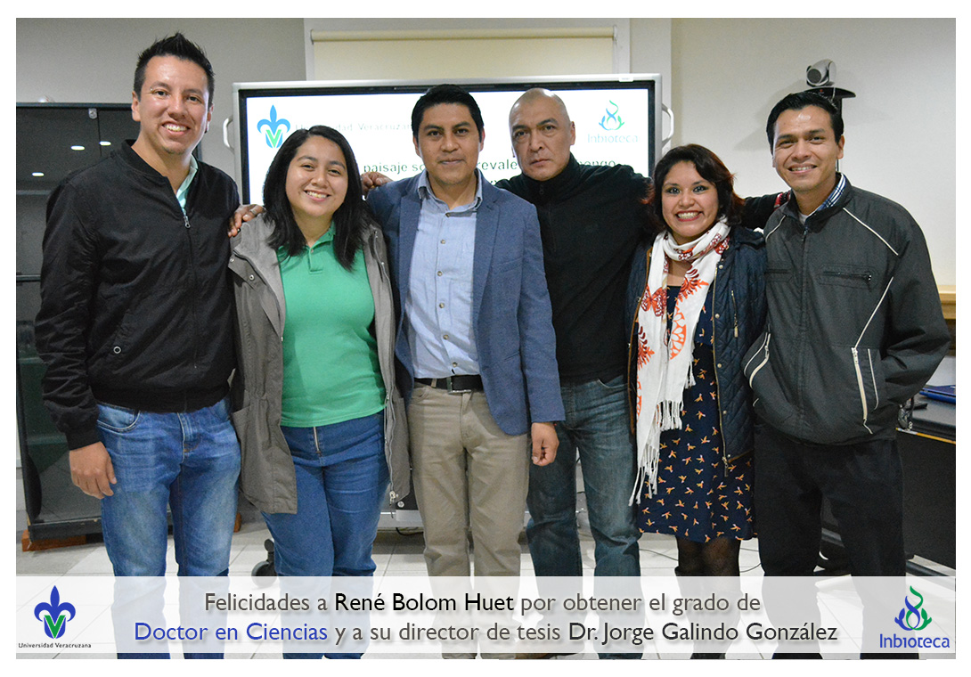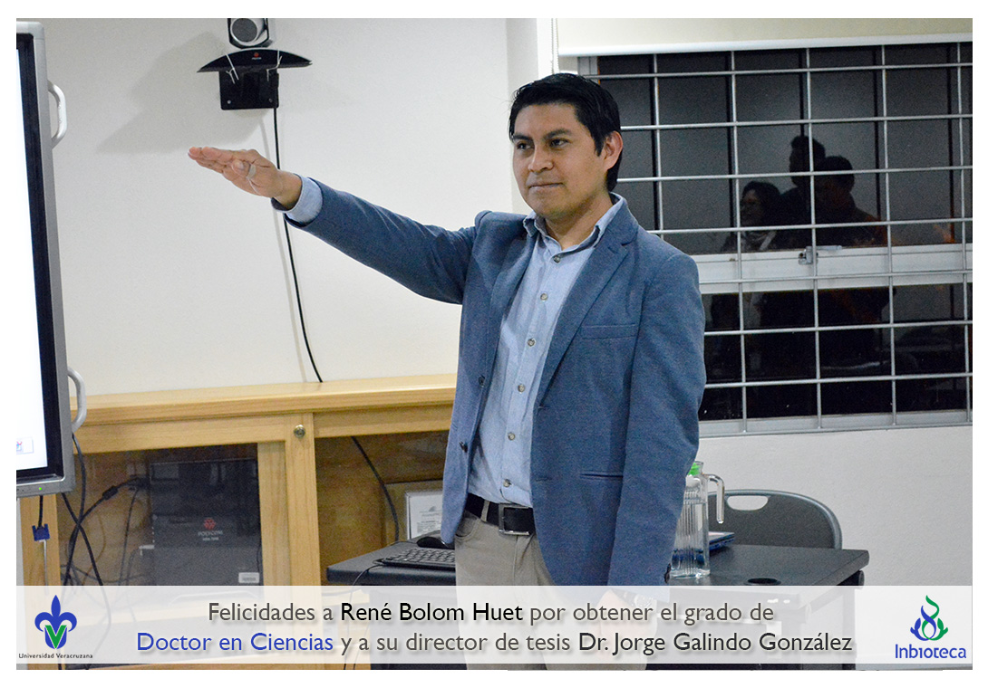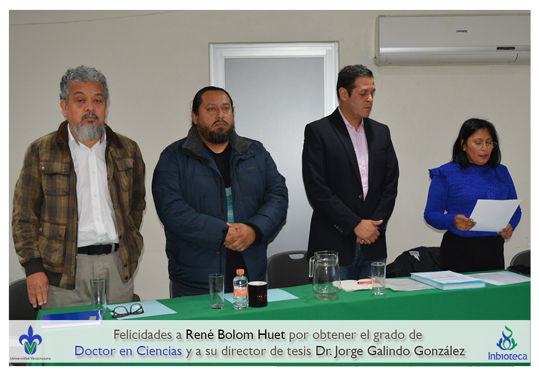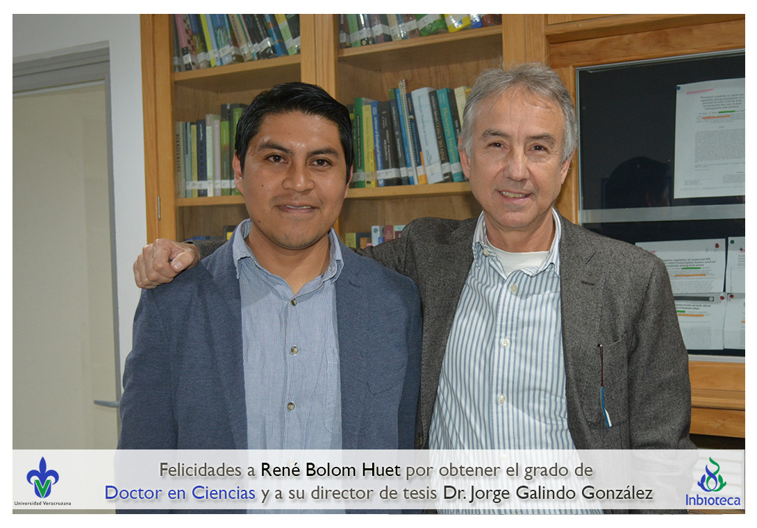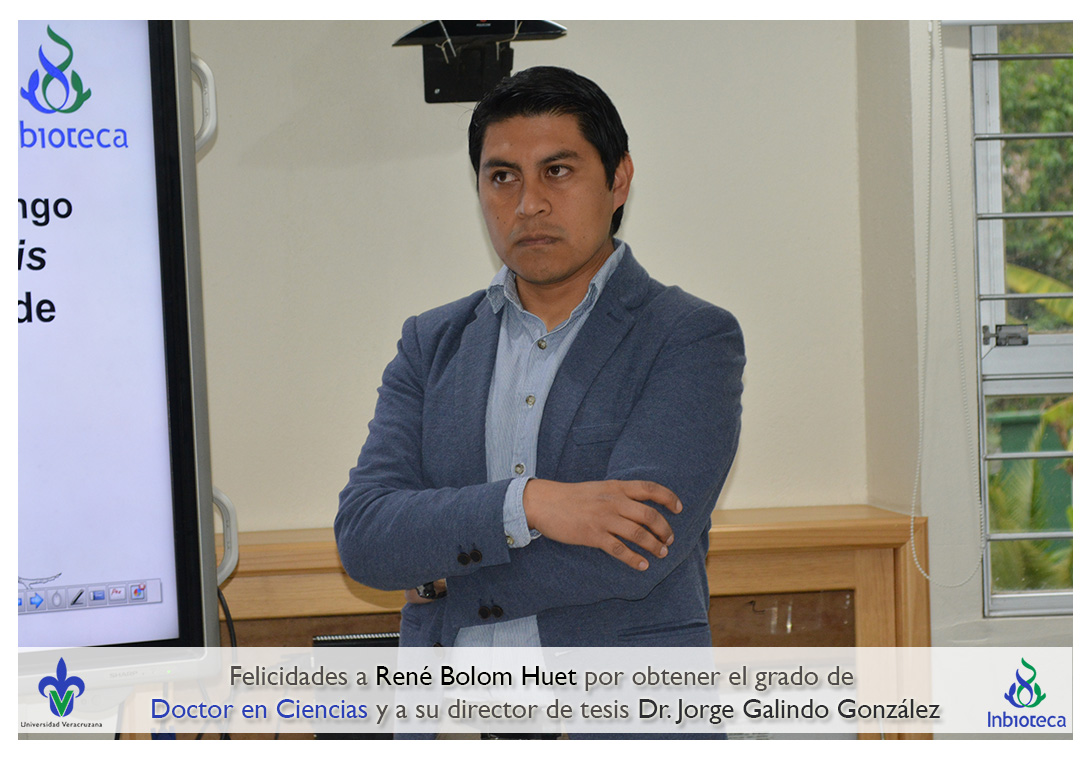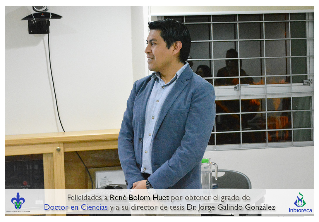 Felicidades a René Bolom Huet por obtener el grado de Doctor en Ciencias en Ecología y Biotecnología, a su director de tesis Dr. Jorge Rodrígo Galindo González, a su comité y a todos los que contribuyeron en el trabajo realizado.