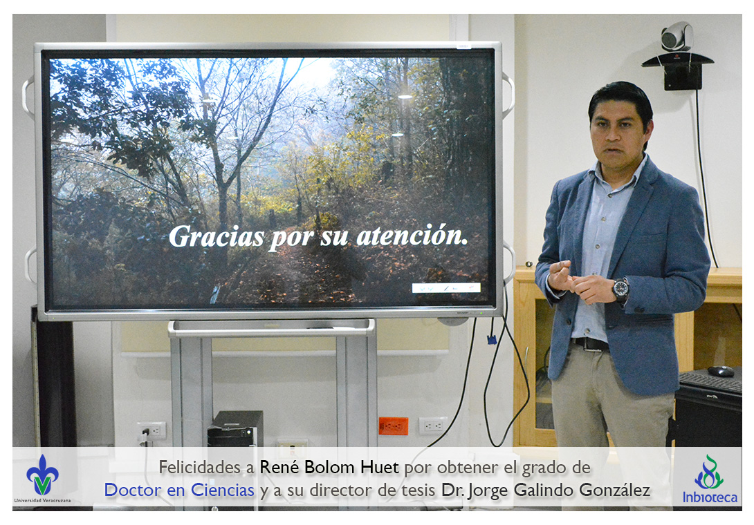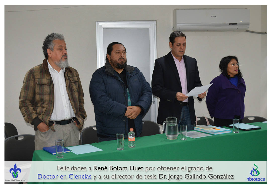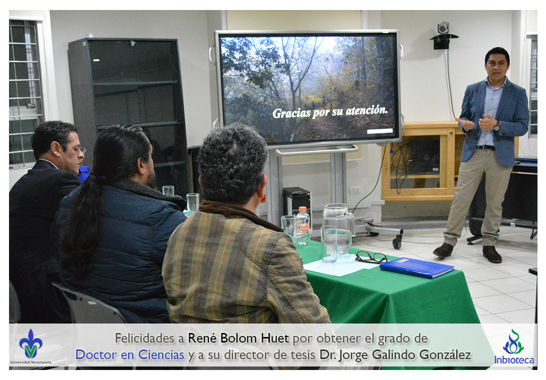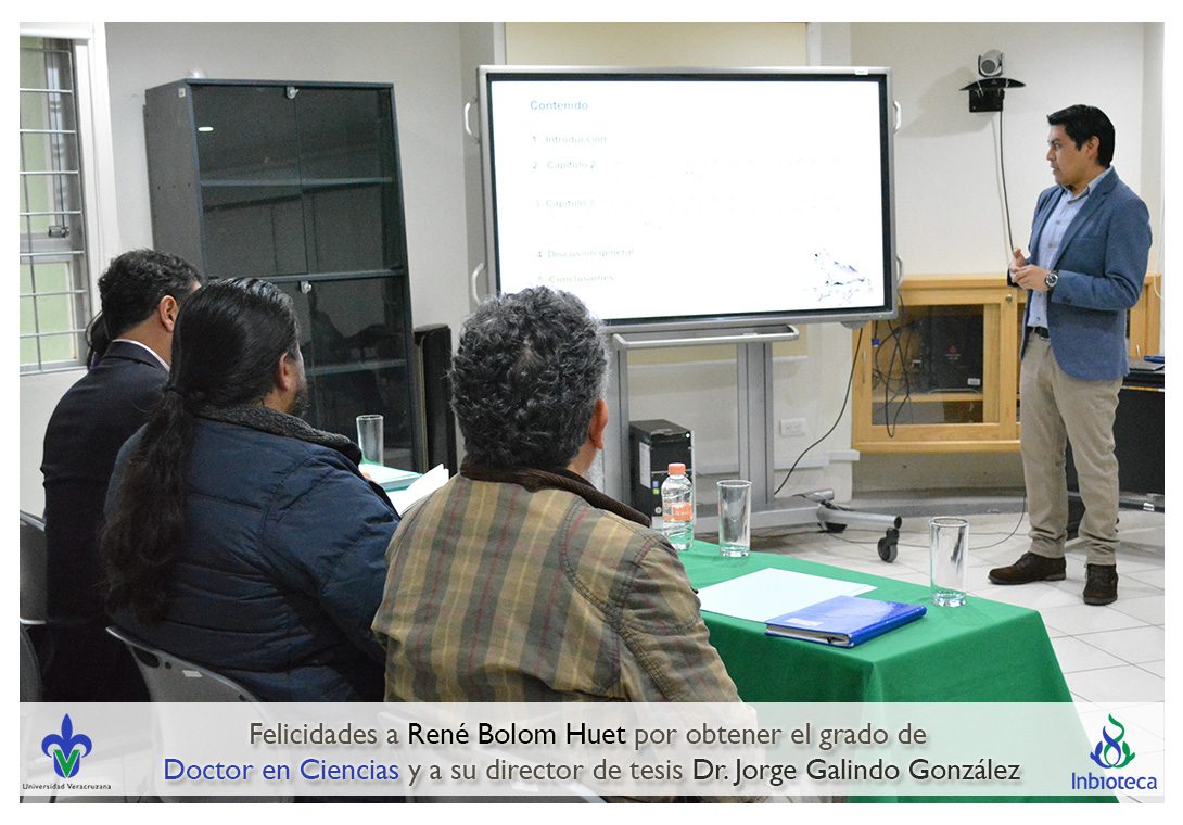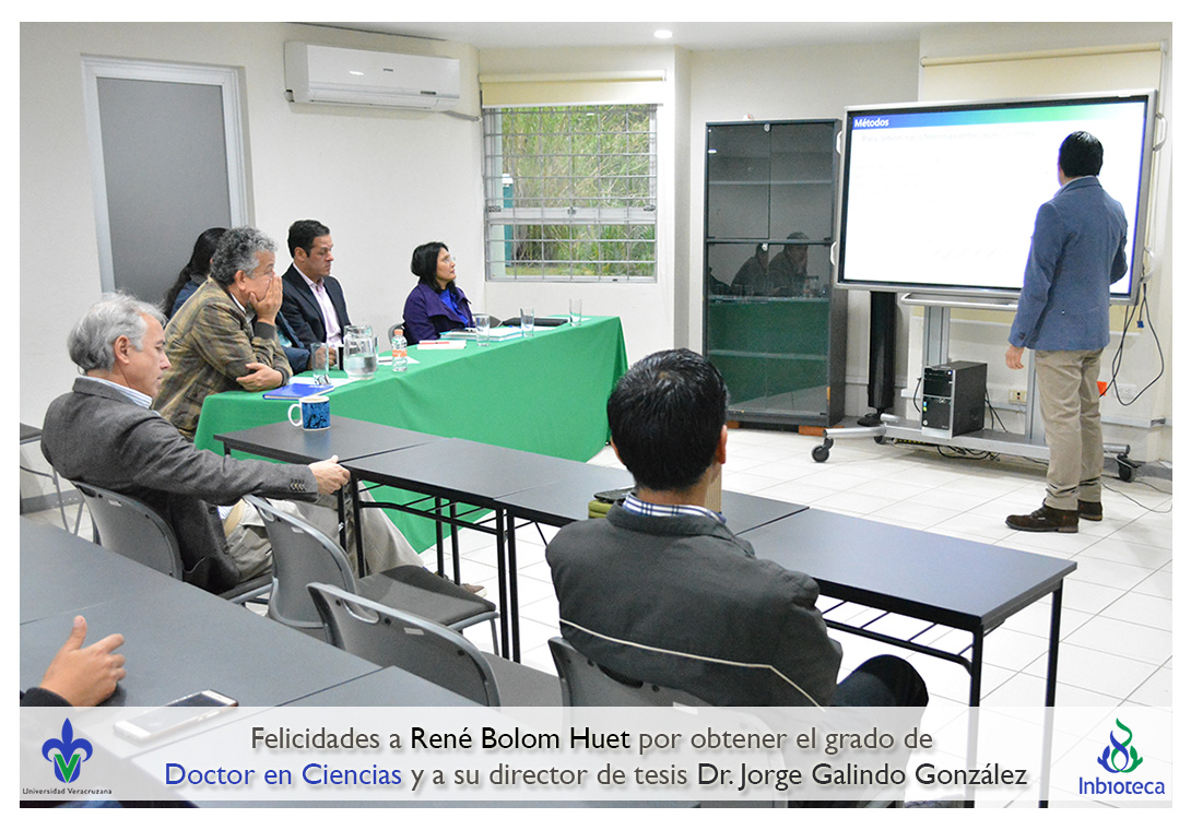 Felicidades a René Bolom Huet por obtener el grado de Doctor en Ciencias en Ecología y Biotecnología, a su director de tesis Dr. Jorge Rodrígo Galindo González, a su comité y a todos los que contribuyeron en el trabajo realizado.