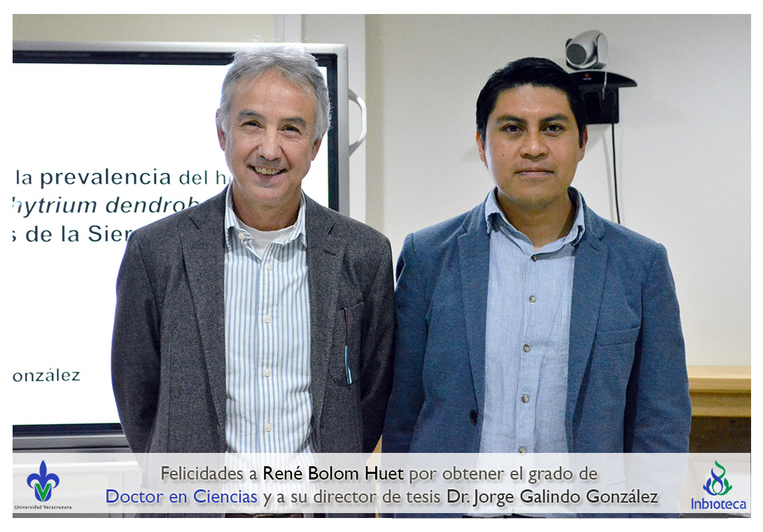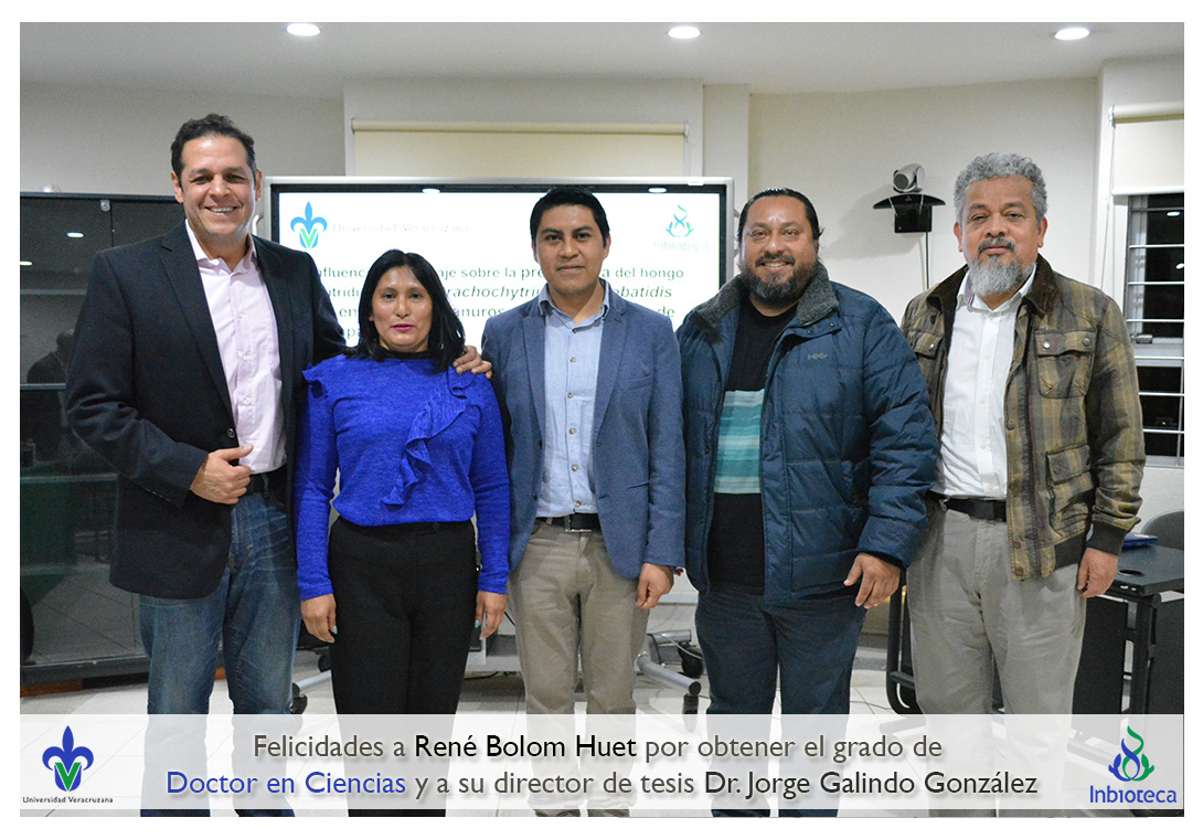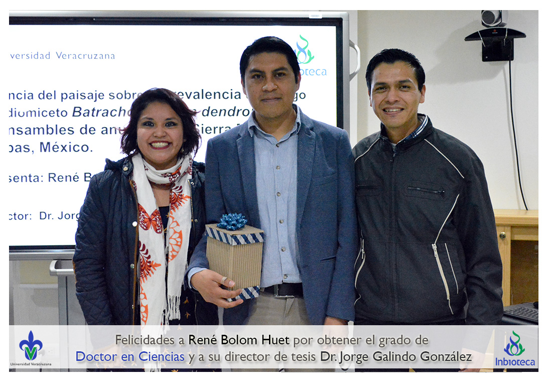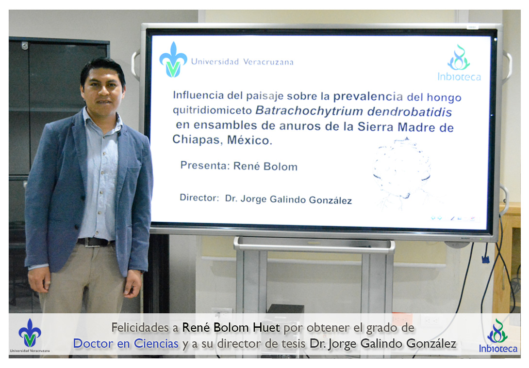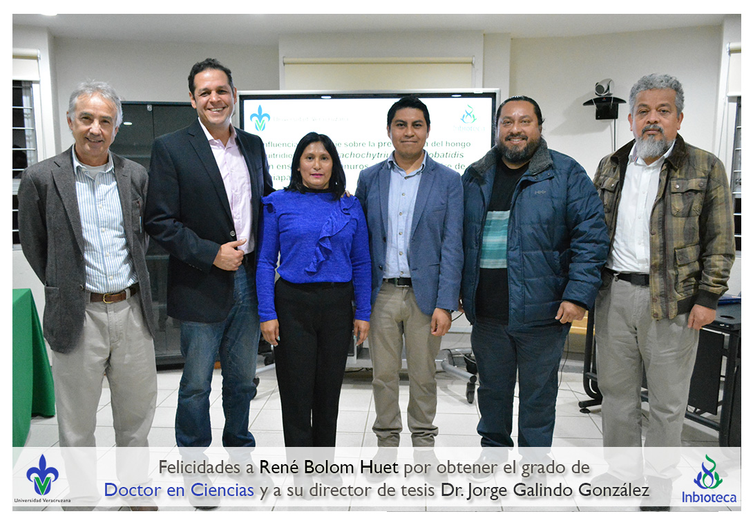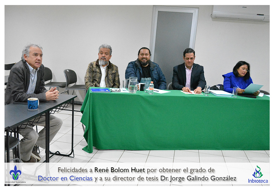 Felicidades a René Bolom Huet por obtener el grado de Doctor en Ciencias en Ecología y Biotecnología, a su director de tesis Dr. Jorge Rodrígo Galindo González, a su comité y a todos los que contribuyeron en el trabajo realizado.