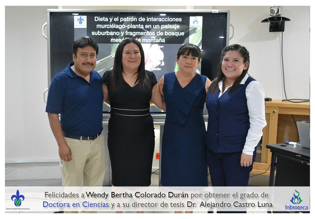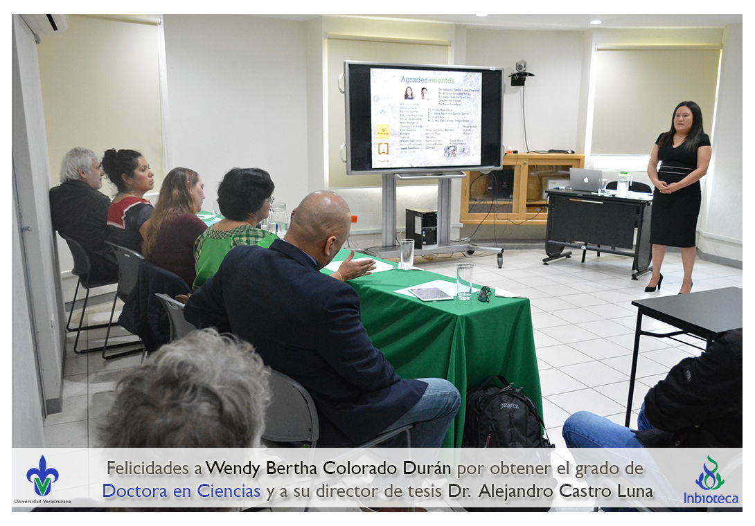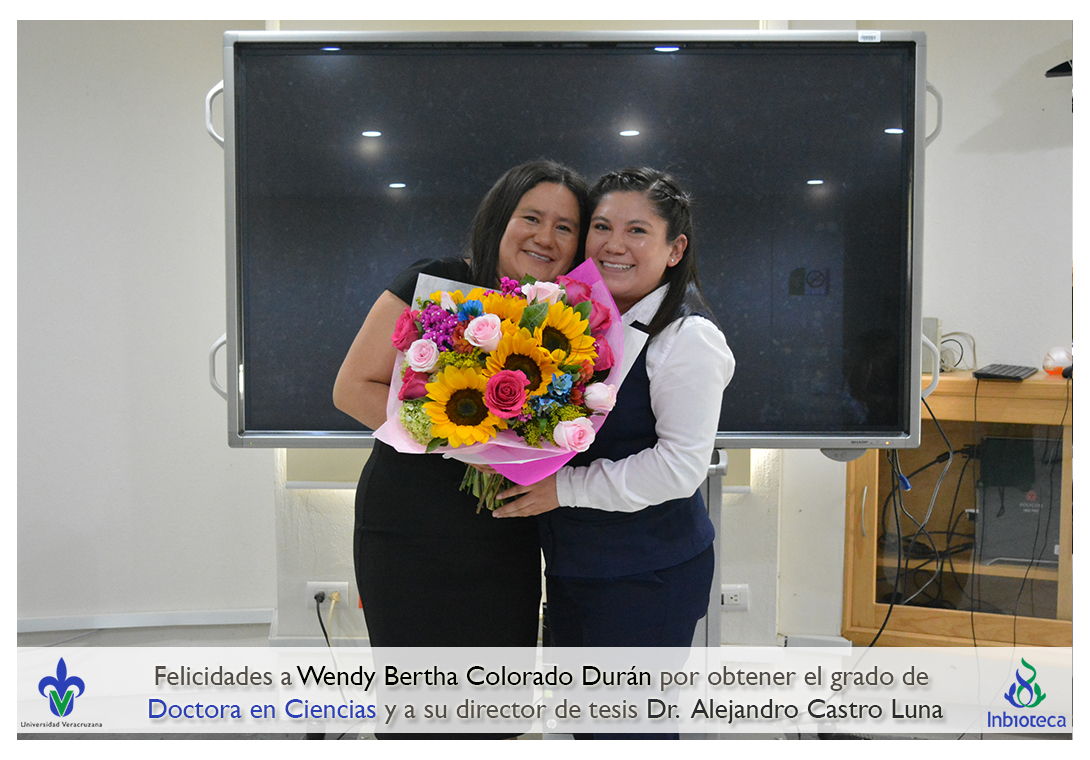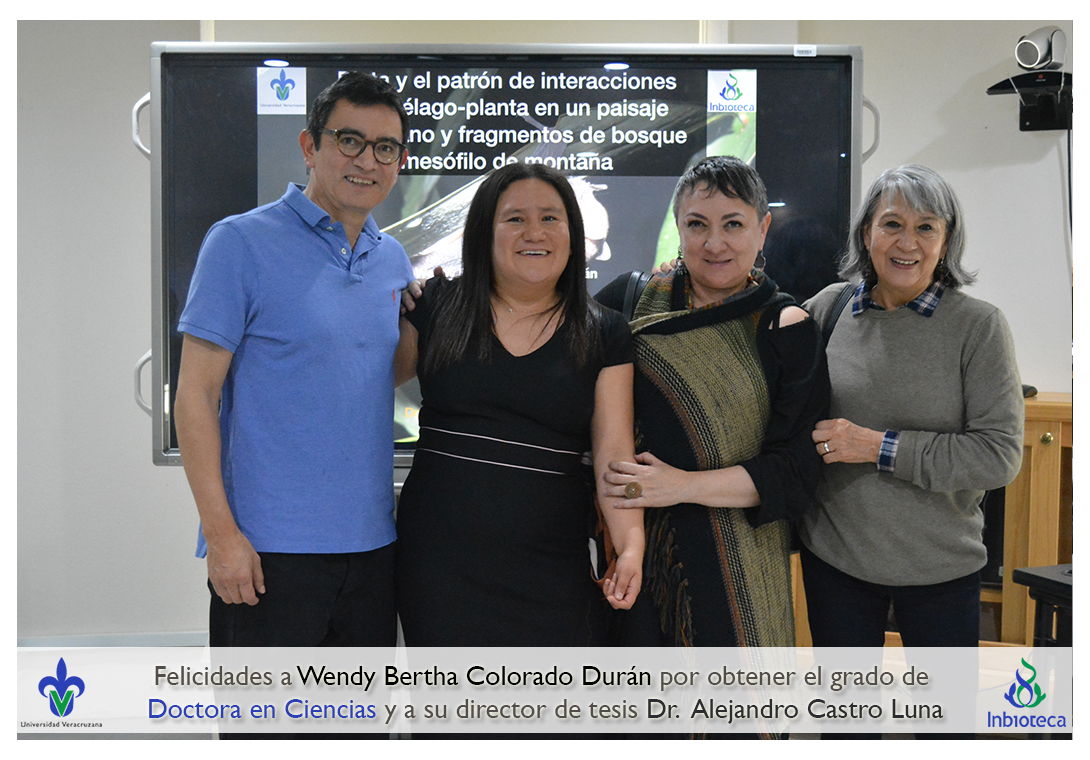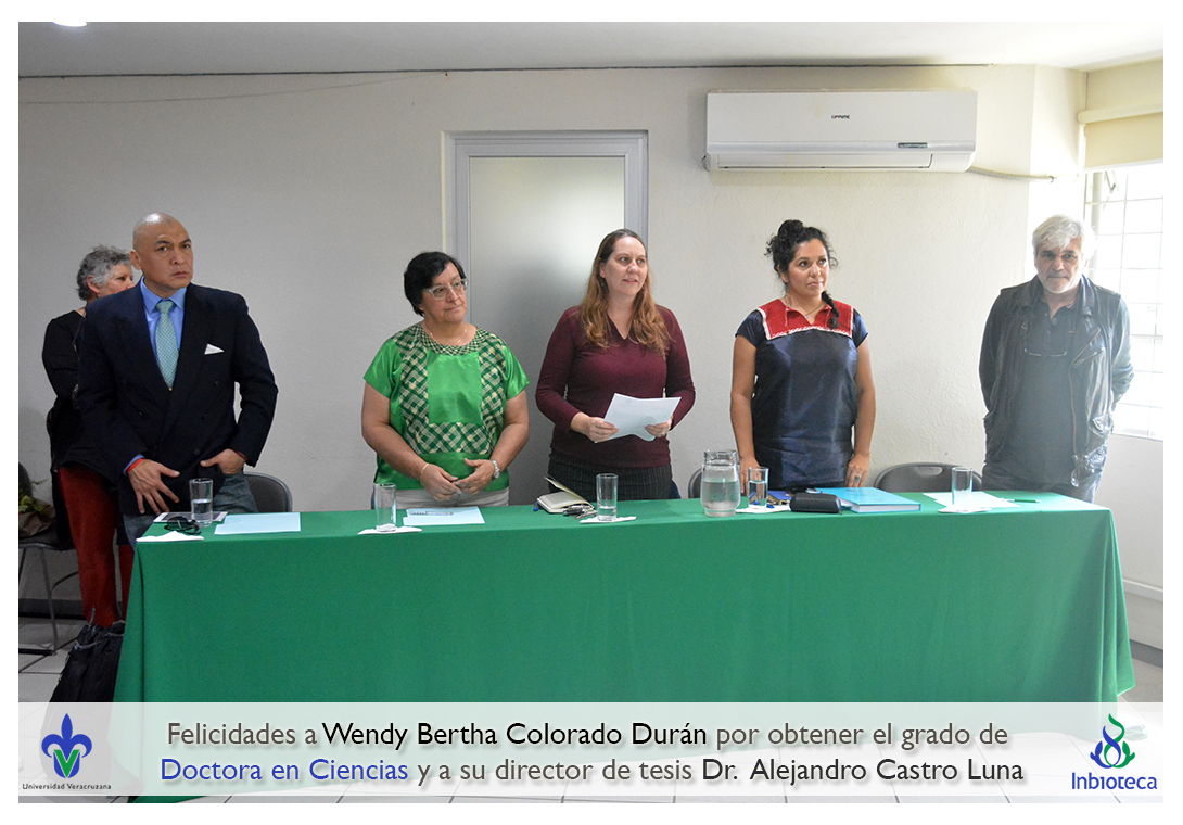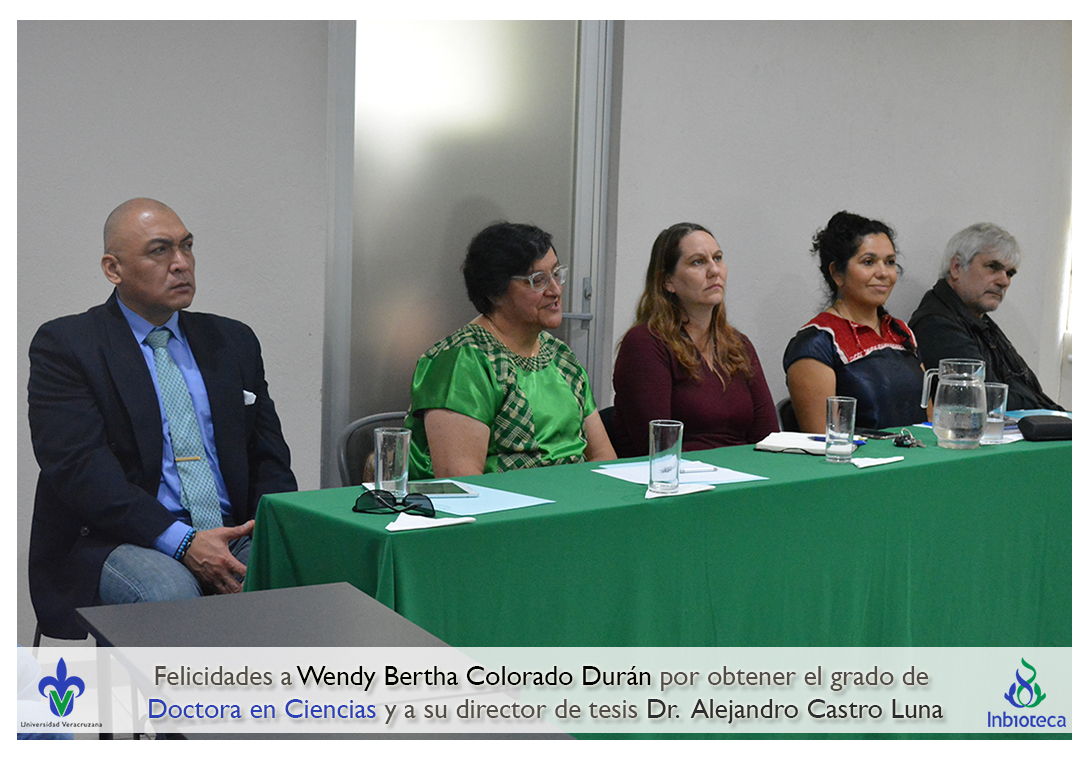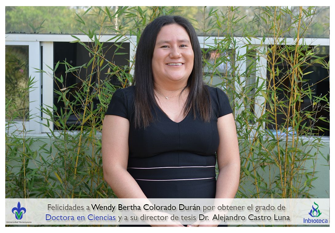 Felicidades a Wendy Bertha Colorado Durán por obtener el grado de Doctora en Ciencias en Ecología y Biotecnología y a su director de tesis Dr. Alejandro Antonio Castro Luna, a su comité y a todos los que contribuyeron en el trabajo realizado. ¡Enhorabuena!
