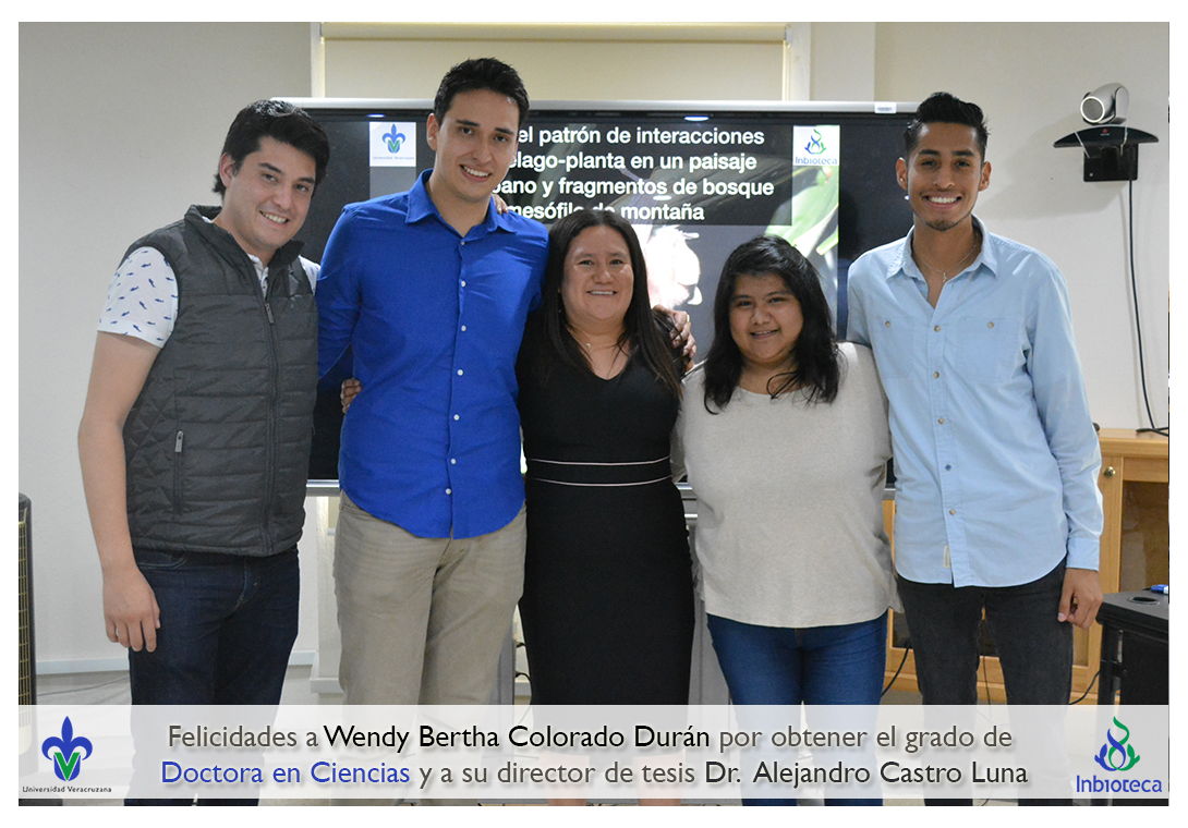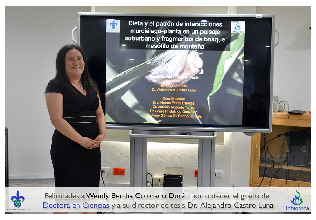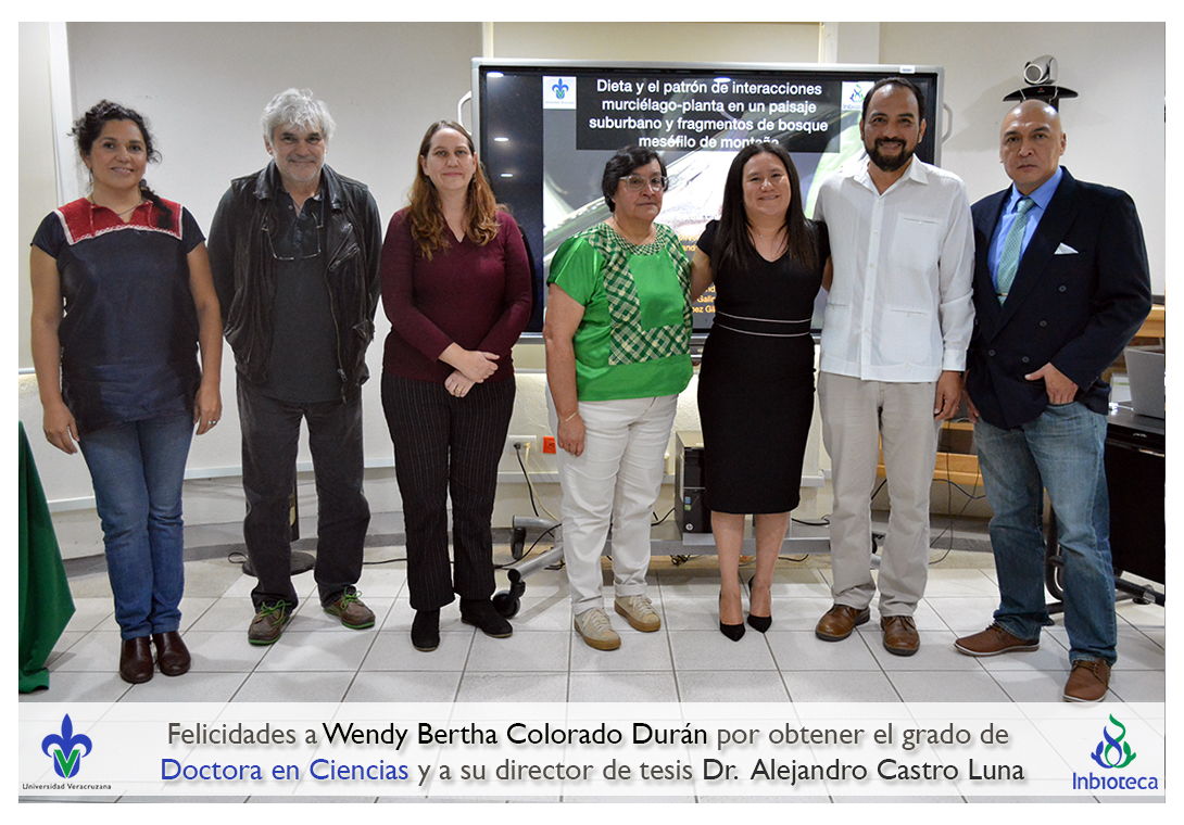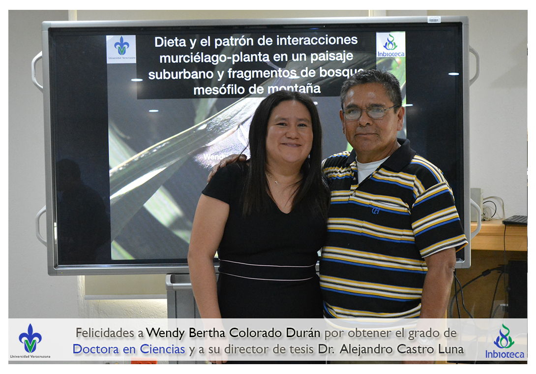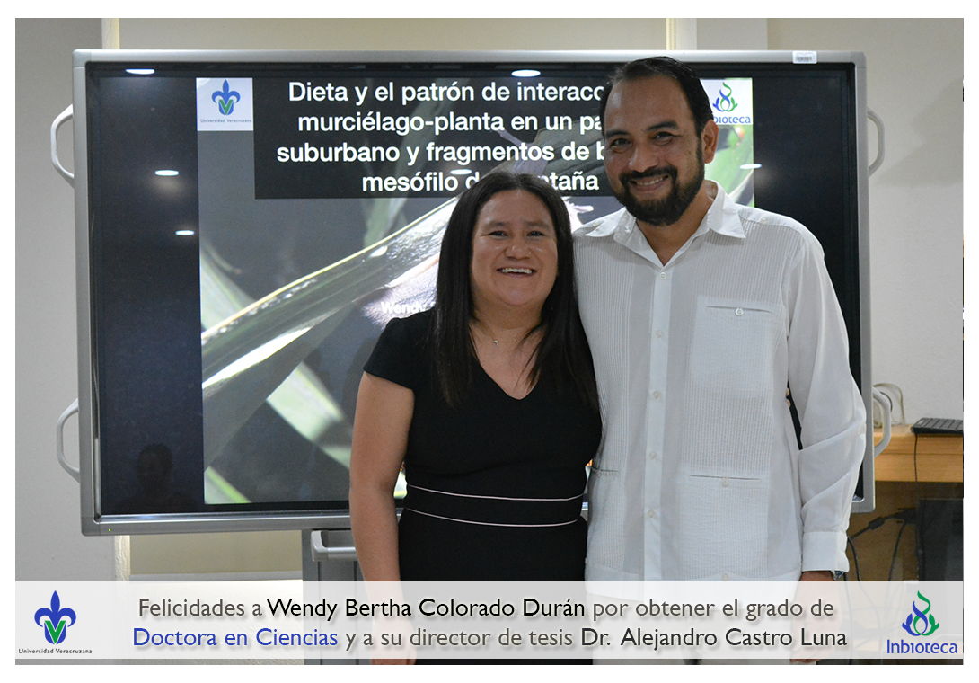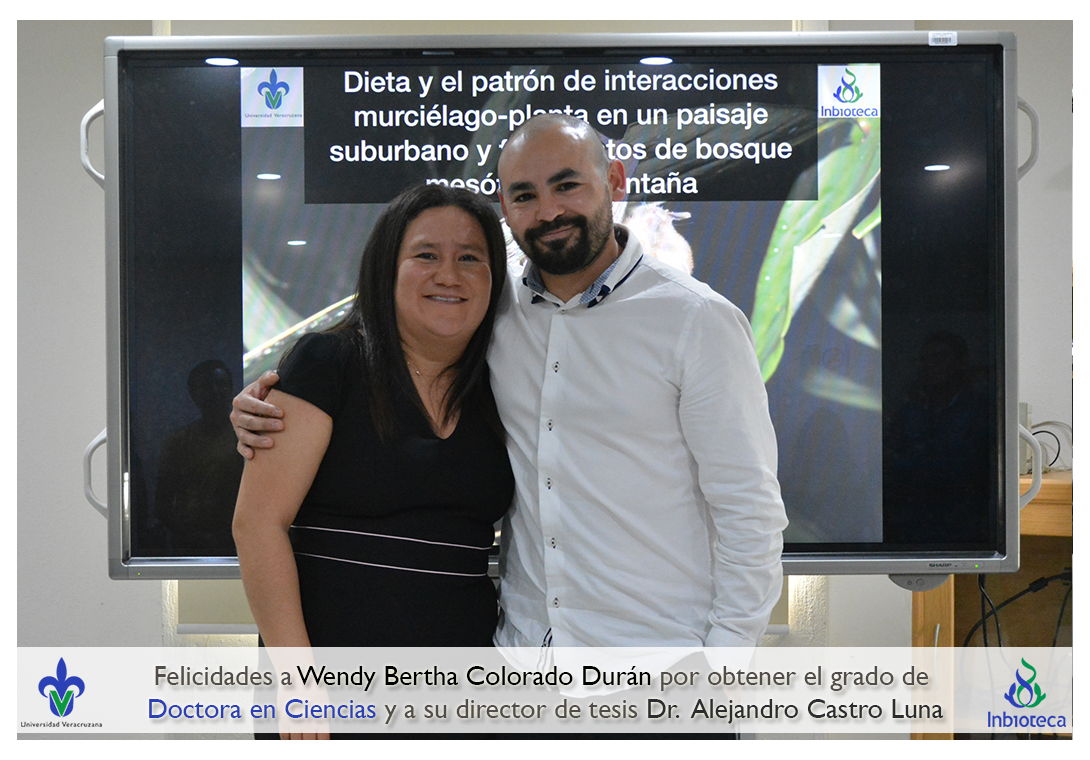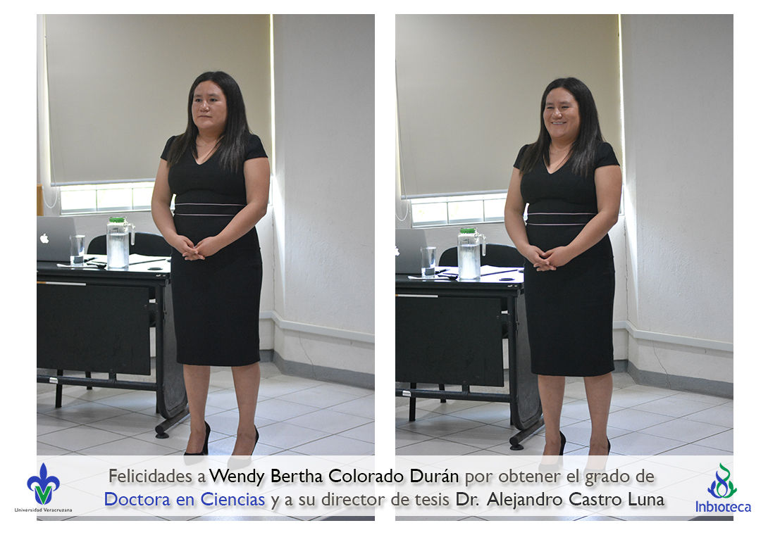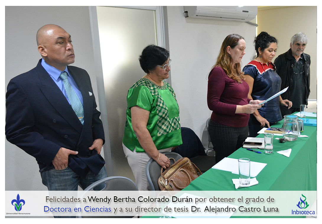 Felicidades a Wendy Bertha Colorado Durán por obtener el grado de Doctora en Ciencias en Ecología y Biotecnología y a su director de tesis Dr. Alejandro Antonio Castro Luna, a su comité y a todos los que contribuyeron en el trabajo realizado. ¡Enhorabuena!