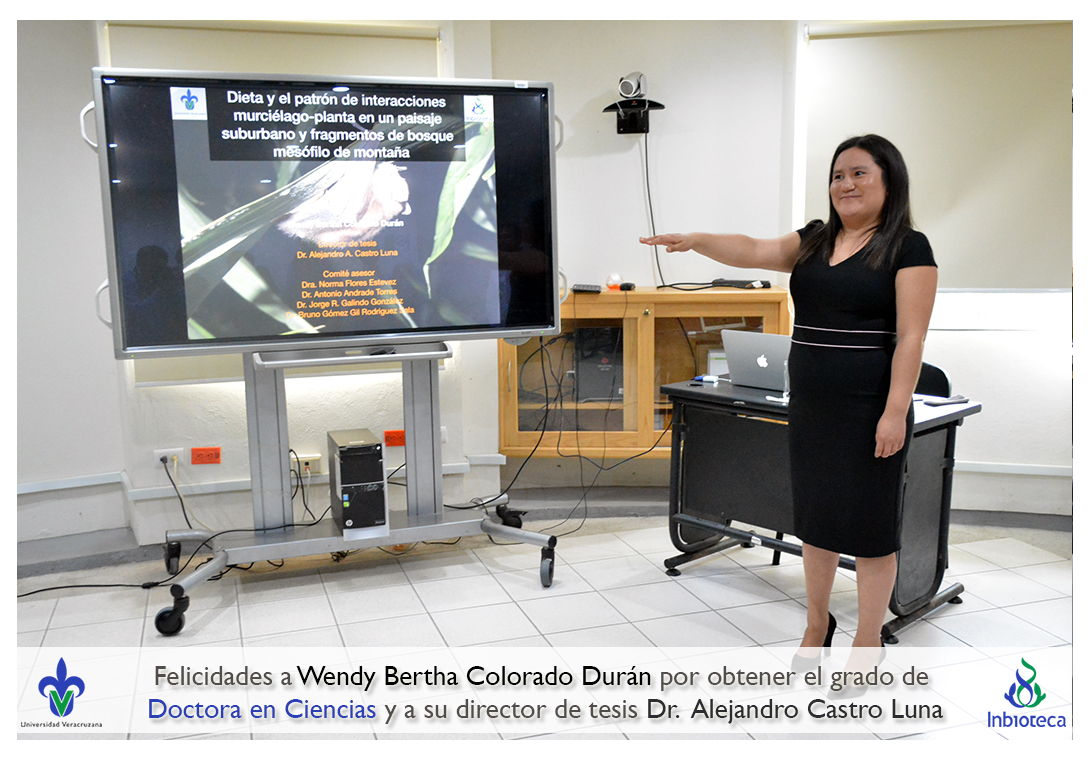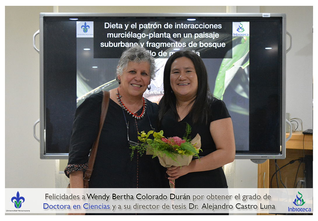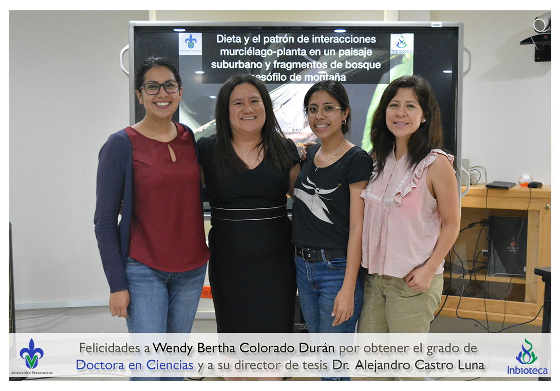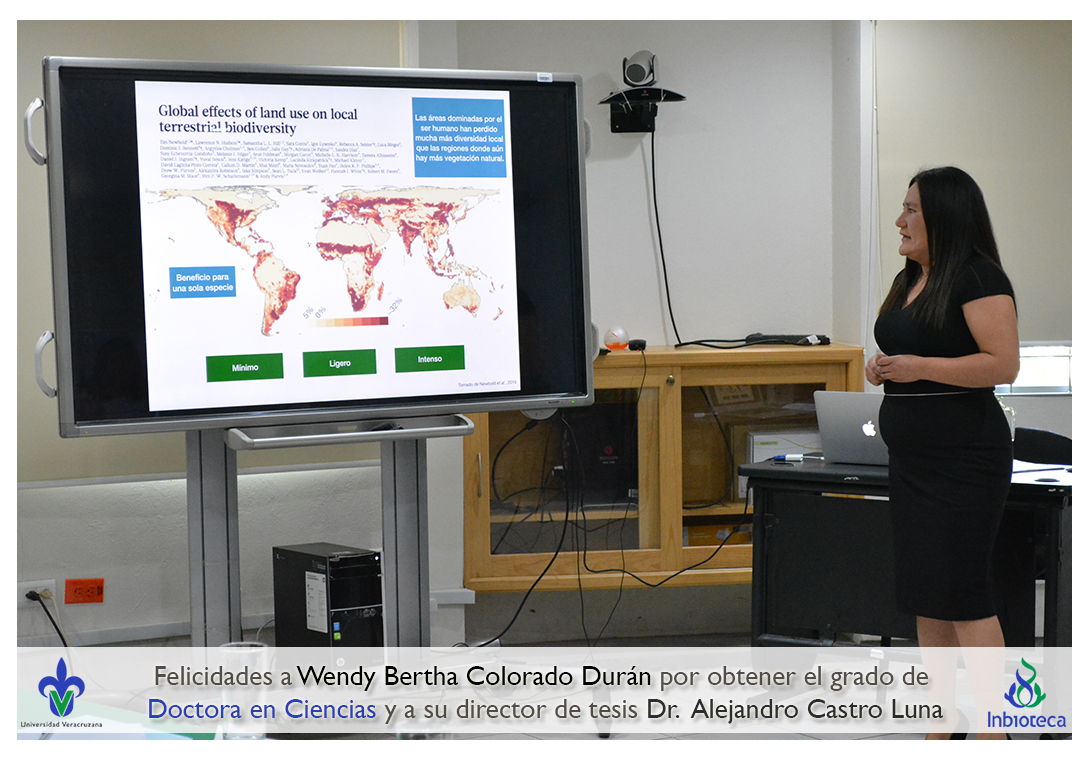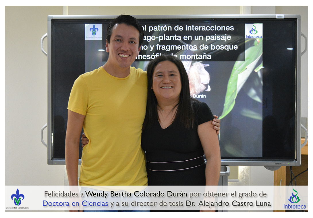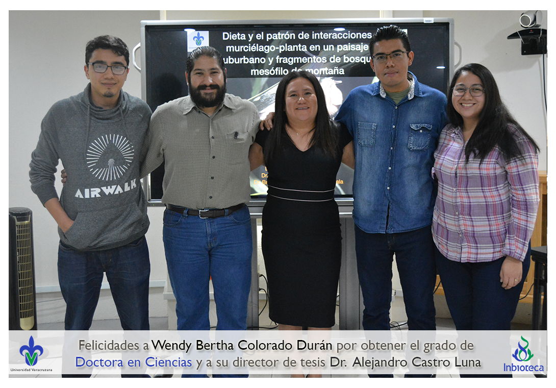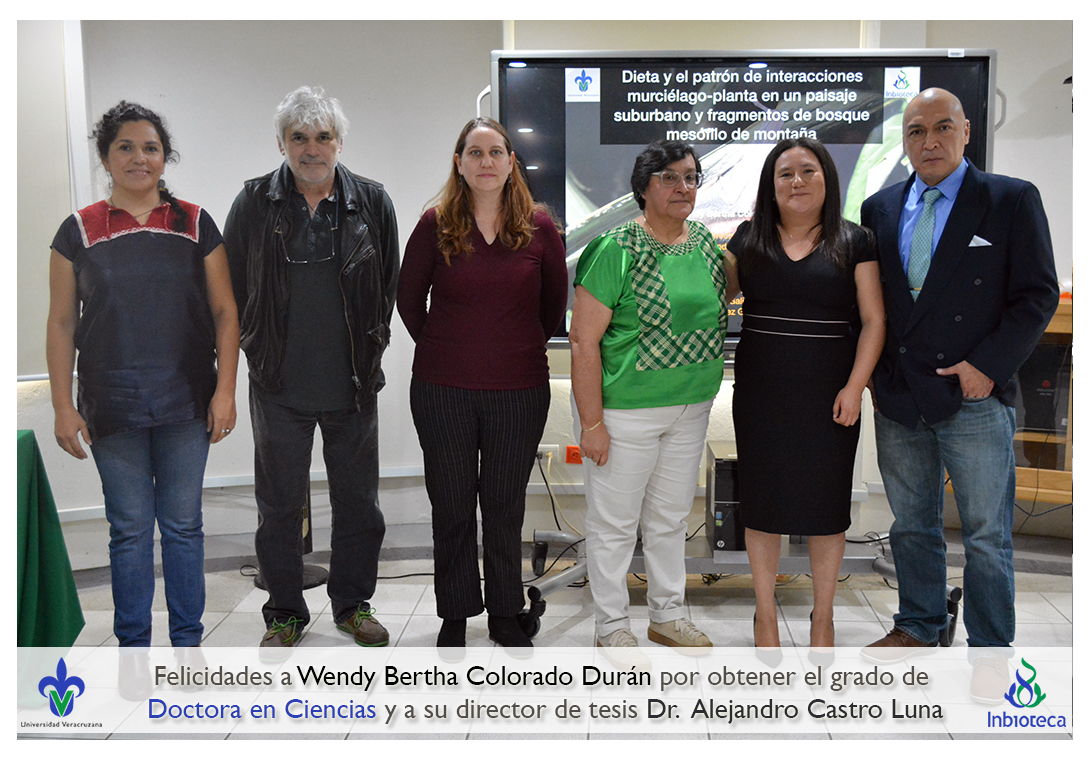 Felicidades a Wendy Bertha Colorado Durán por obtener el grado de Doctora en Ciencias en Ecología y Biotecnología y a su director de tesis Dr. Alejandro Antonio Castro Luna, a su comité y a todos los que contribuyeron en el trabajo realizado. ¡Enhorabuena!