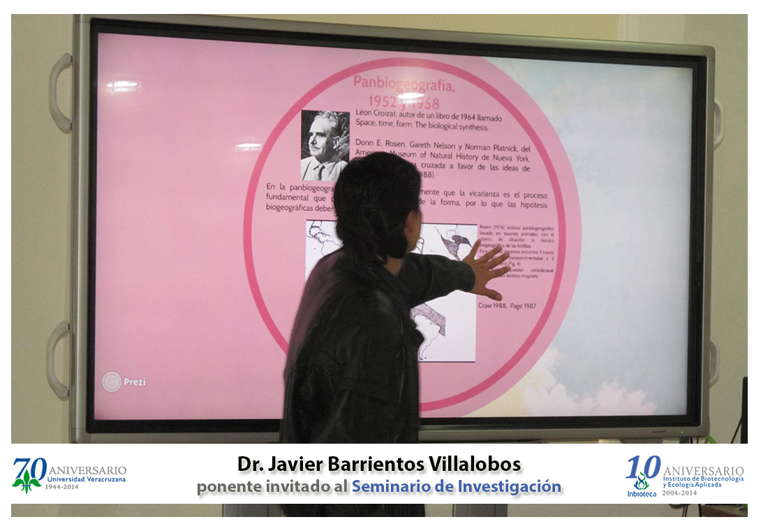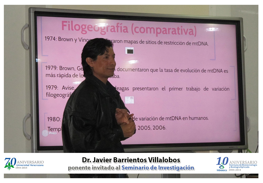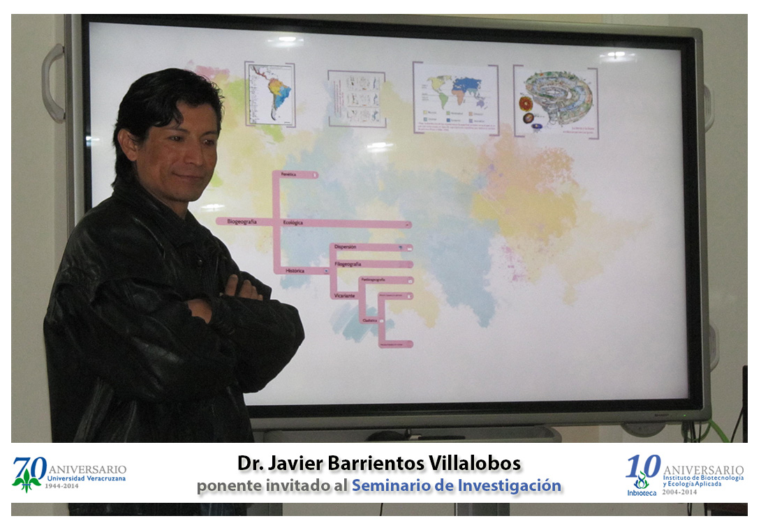 El profesor invitado fué el Dr. Javier Barrientos Villalobos, Posdoctorante en El Colegio de la Frontera Sur, Chetumal, Quintana Roo, quien impartió la conferencia " Filogeografía comparada como una herramienta moderna en la Biogeografía actual".