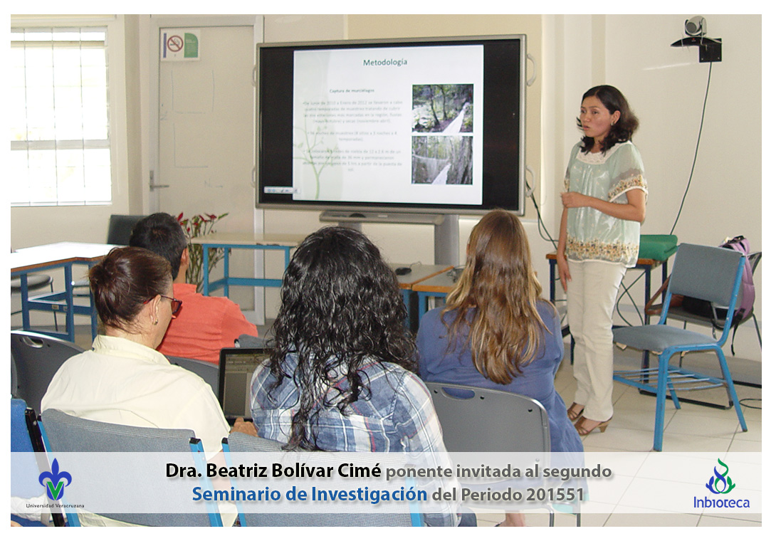 La profesora invitada fué la Dra. Dra. Beatriz Bolívar Cimé, Investigadora del Instituto de Investigaciones Forestales (INIFOR) de la Universidad Veracruzana. La conferencia impartida fue "Importancia del tipo de matriz, calidad del hábitat y estacionalidad en la dieta de los murciélagos frugívoros de Yucatán".