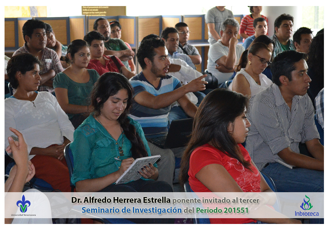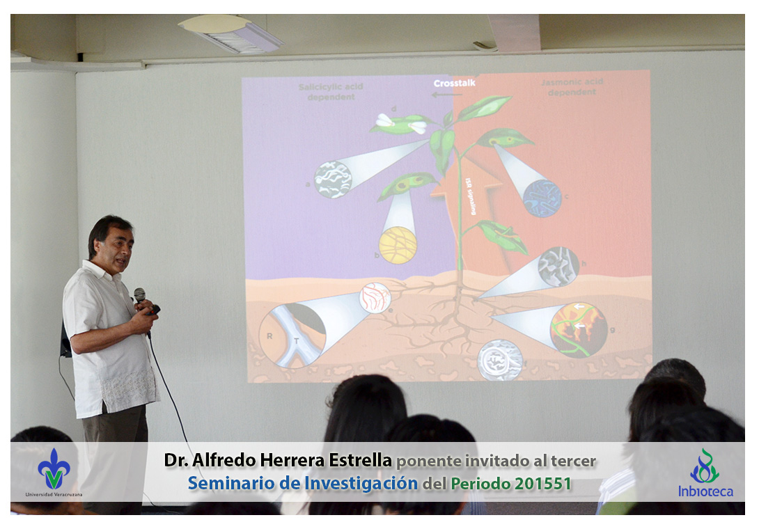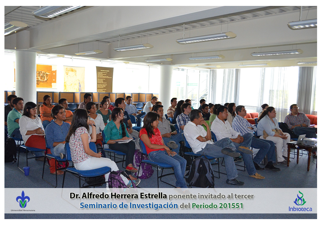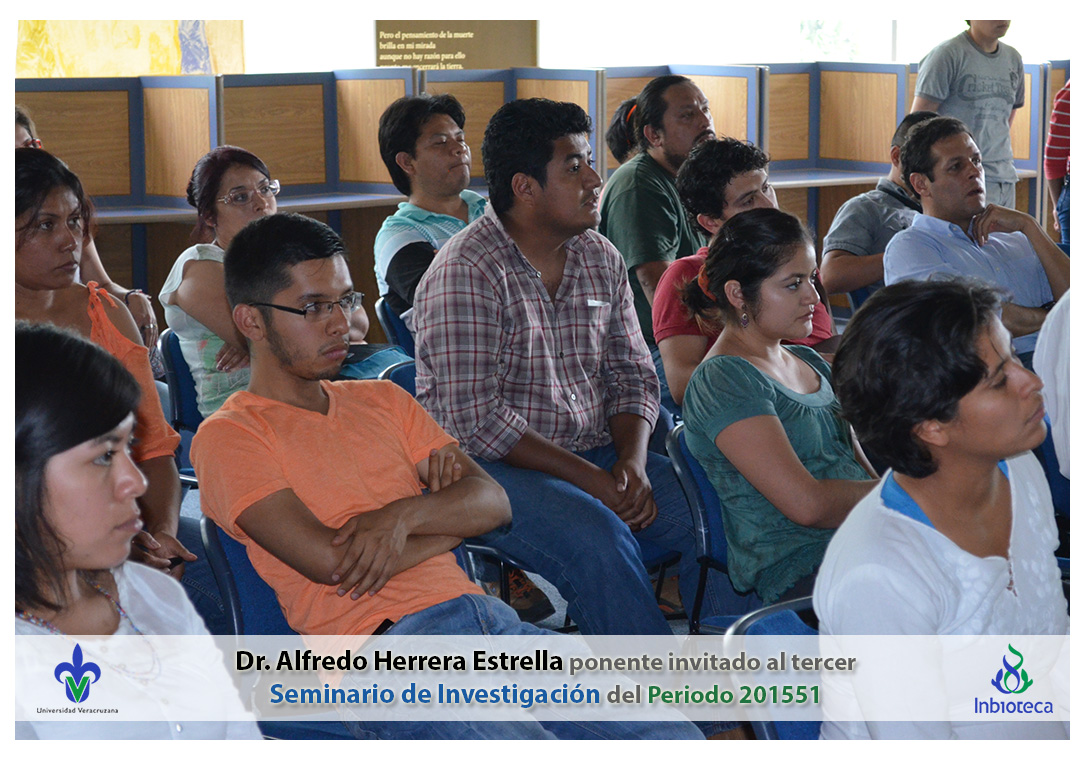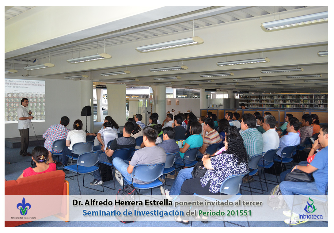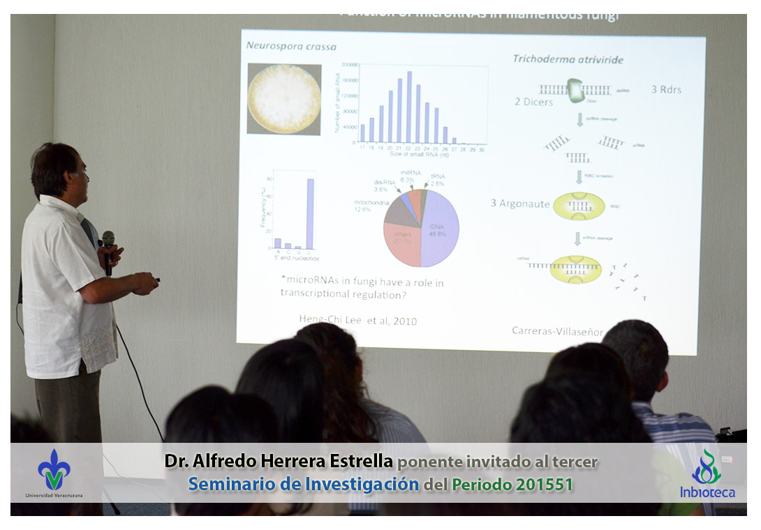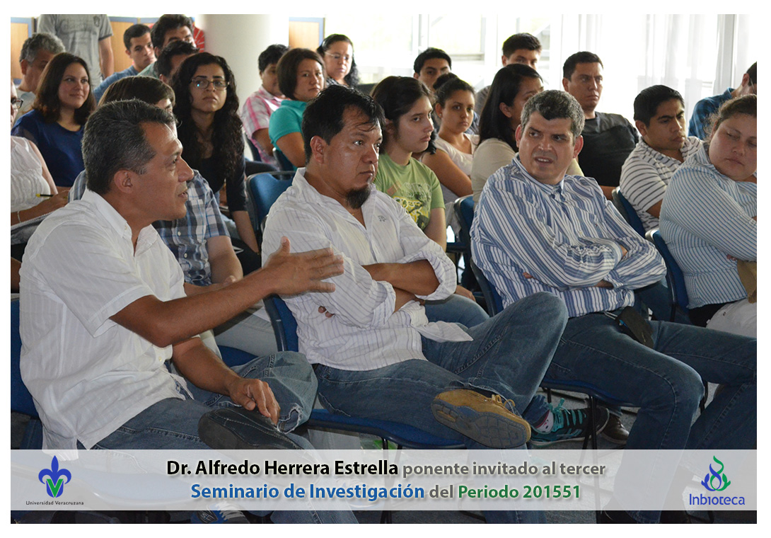 El profesor invitado fué el Dr. Alfredo Herrera Estrella, Investigador del Laboratorio Nacional de Genómica para la Biodiversidad (LANGEBIO) del Instituto Politécnico Nacional (IPN). La conferencia impartida fue "Mecanismos moleculares del desarrollo y parasitismo en el agente de biocontrol Trichoderma atroviride".