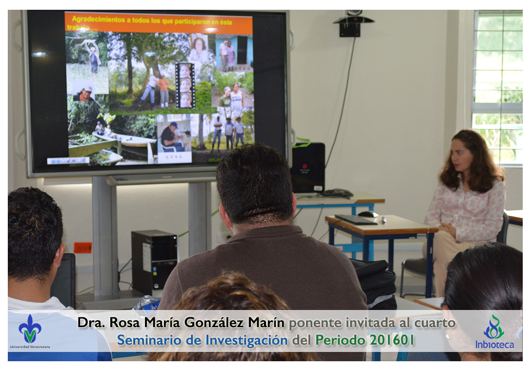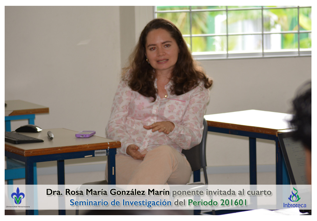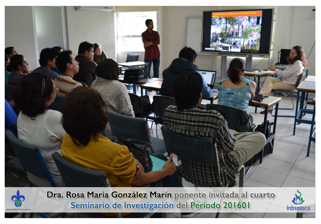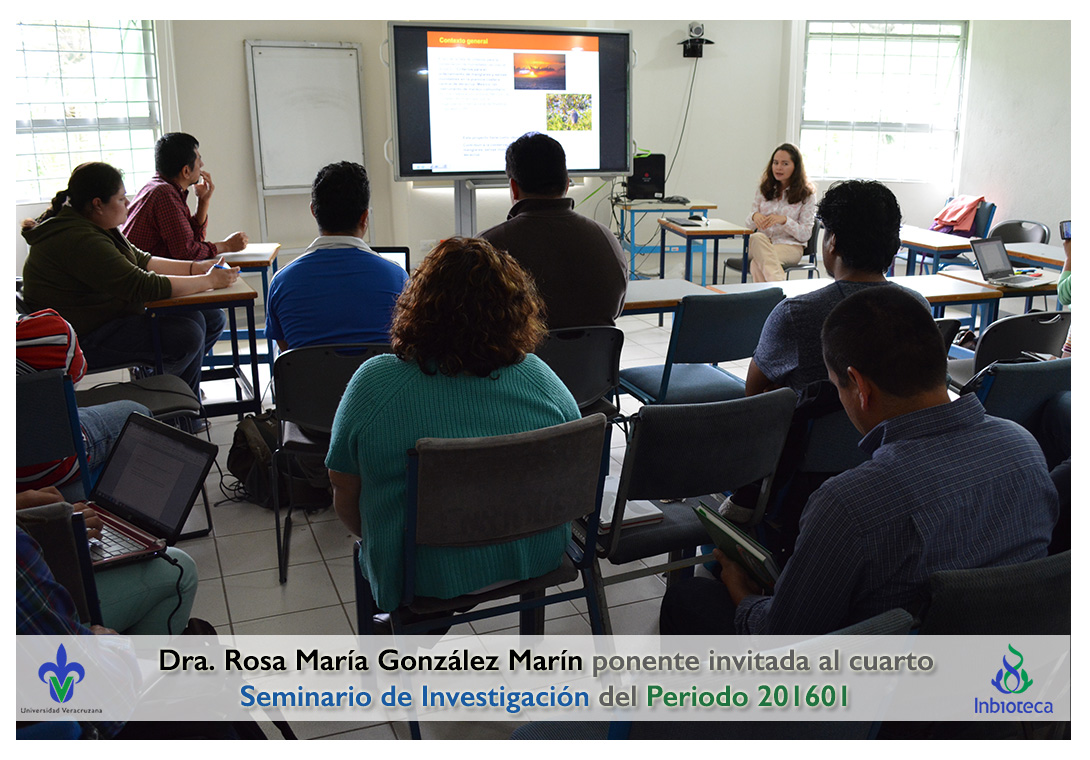 La profesora invitada fué la Dra. Rosa María González Marín, Posdoctorante del INBIOTECA. La conferencia impartida fue "Proponiendo Alternativas para la Conservación y Sustentabilidad de Humedales en la Planicie Costera de Veracruz, México".