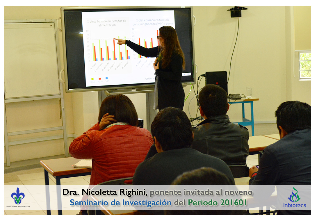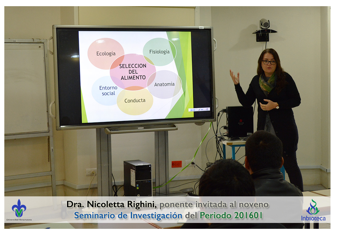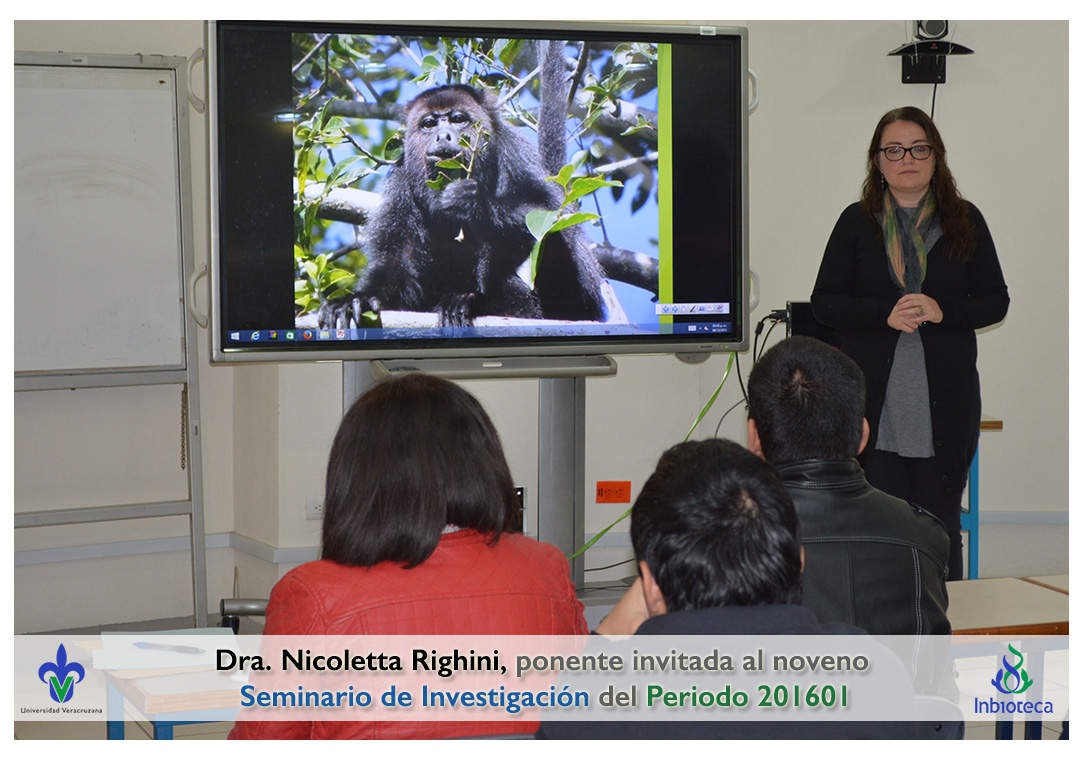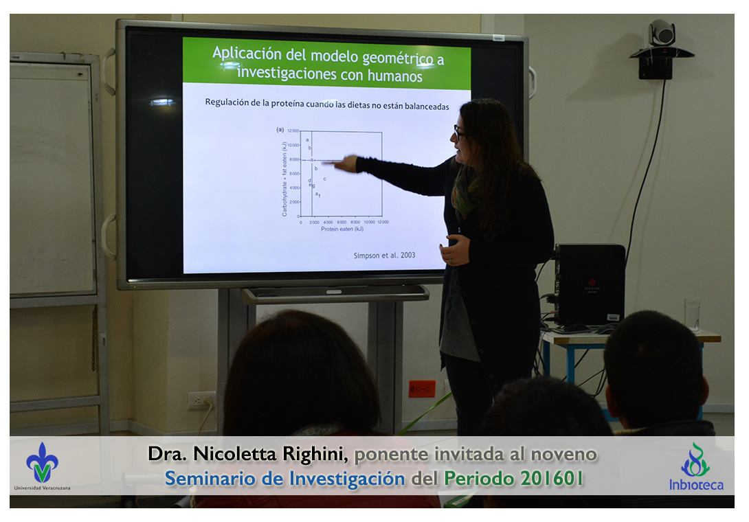 La profesora invitada fué la Dra. Nicoletta Righini, Investigador Asociado del Instituto de Ecología A.C. (INECOL) y del Department of Anthropology de la University of Illinois. La conferencia impartida fue "Balance de nutrientes y geometría nutricional: desde moscas hasta primates".