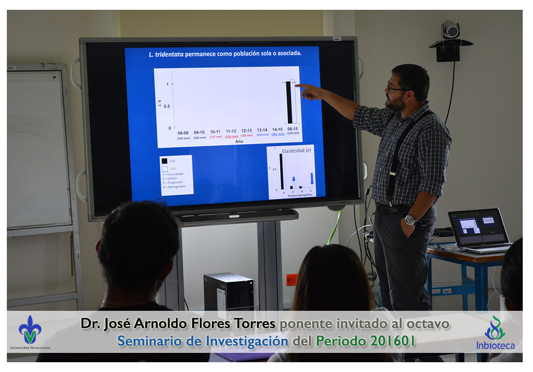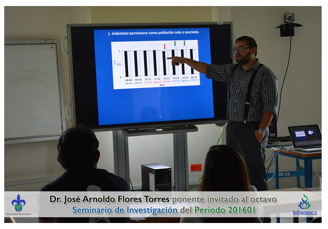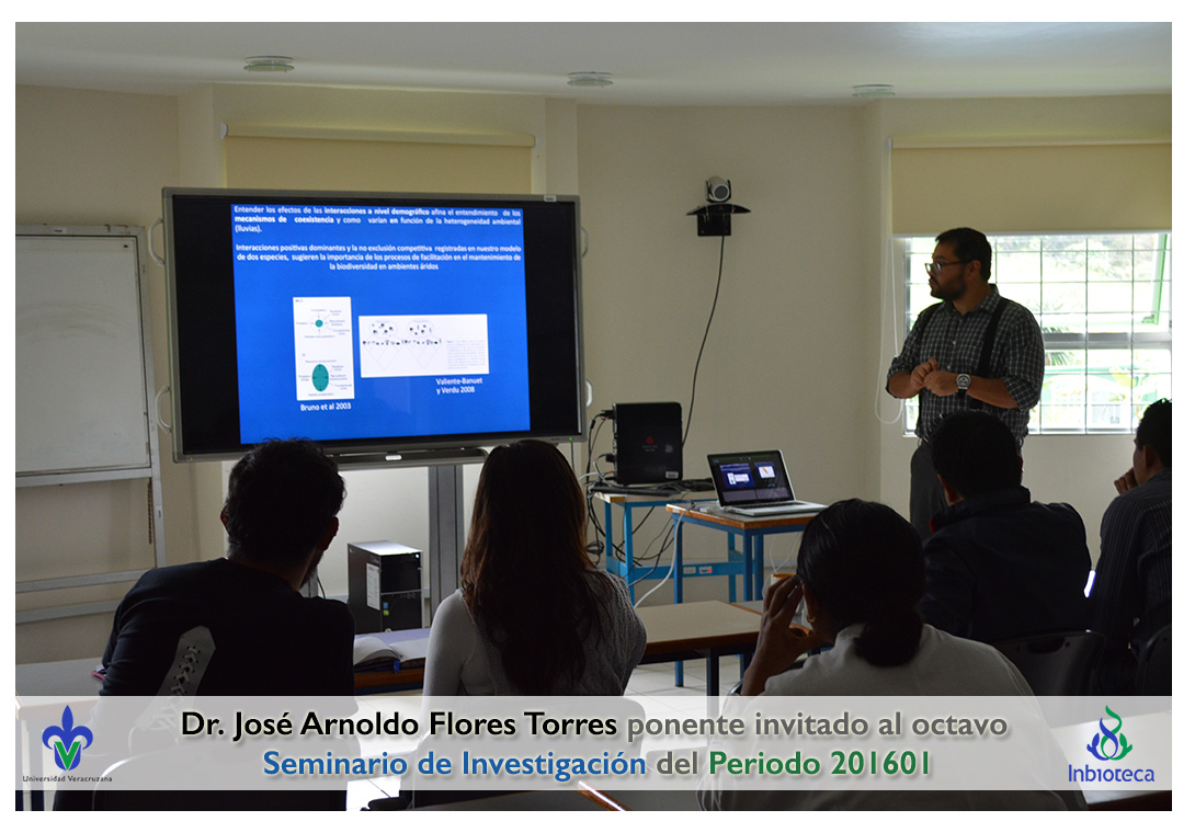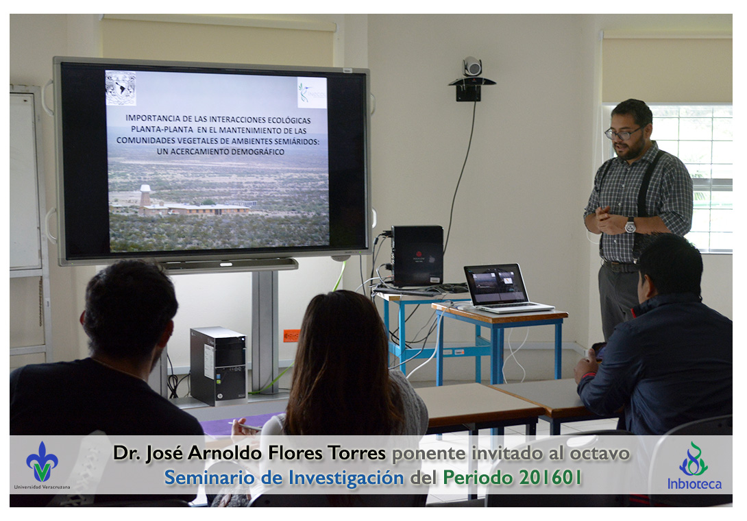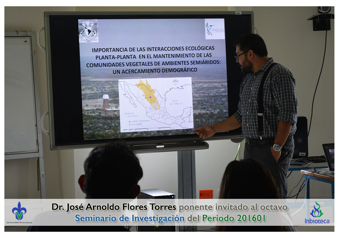 El profesor invitado fué el Dr. José Arnoldo Flores Torres, Investigador titular del Instituto de Ecología de la UNAM. La conferencia impartida fue "Importancia de las interacciones ecológicas planta-planta en el mantenimiento de las comunidades vegetales de ambientes semiáridos: un acercamiento demográfico".