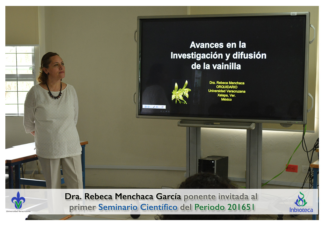 La profesora invitada fué la Dra. Rebeca Menchaca García investigador titular responsable del Orquidario del Centro de Investigaciones Tropicales (CITRO) de la Universidad Veracruzana. La conferencia impartida fue "Avances en la investigación y difusión de la Vainilla en el Orquidario de la Universidad Veracruzana".