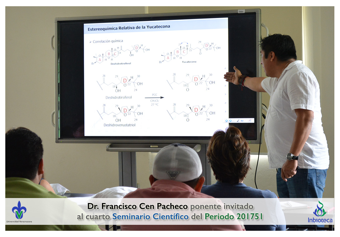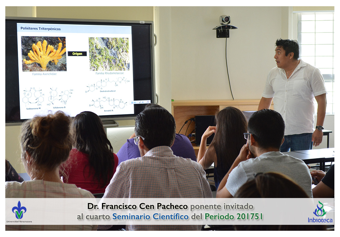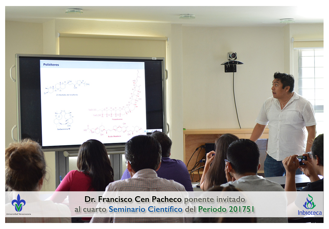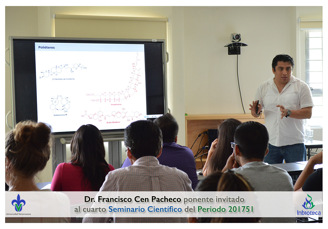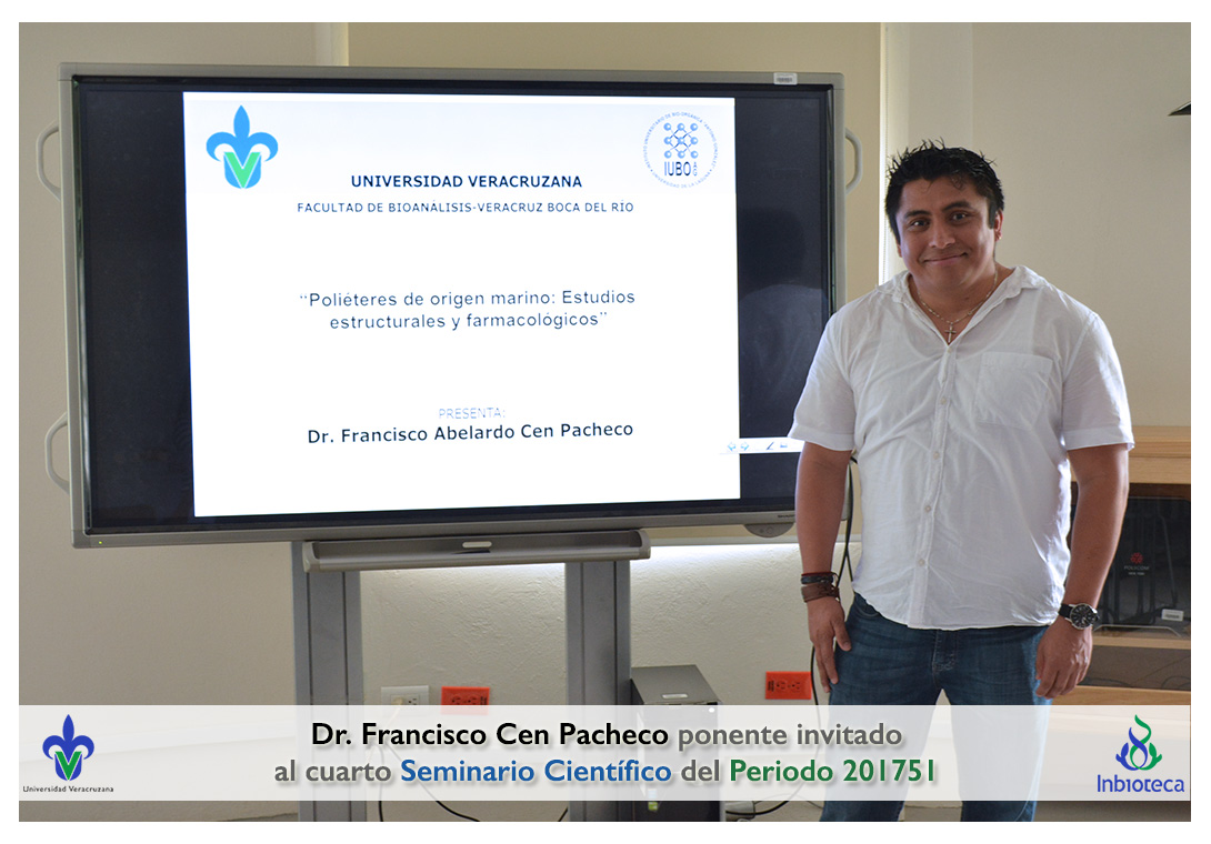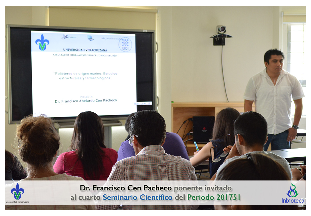 El ponente invitado fue el Dr. Francisco Abelardo Cen Pacheco Académico/Investigador de la Facultad de Bioanálisis, Campus Veracruz de la Universidad Veracruzana. La conferencia impartida fue "Poliéteres de origen marino: Estudios estructurles y farmacológicos.".