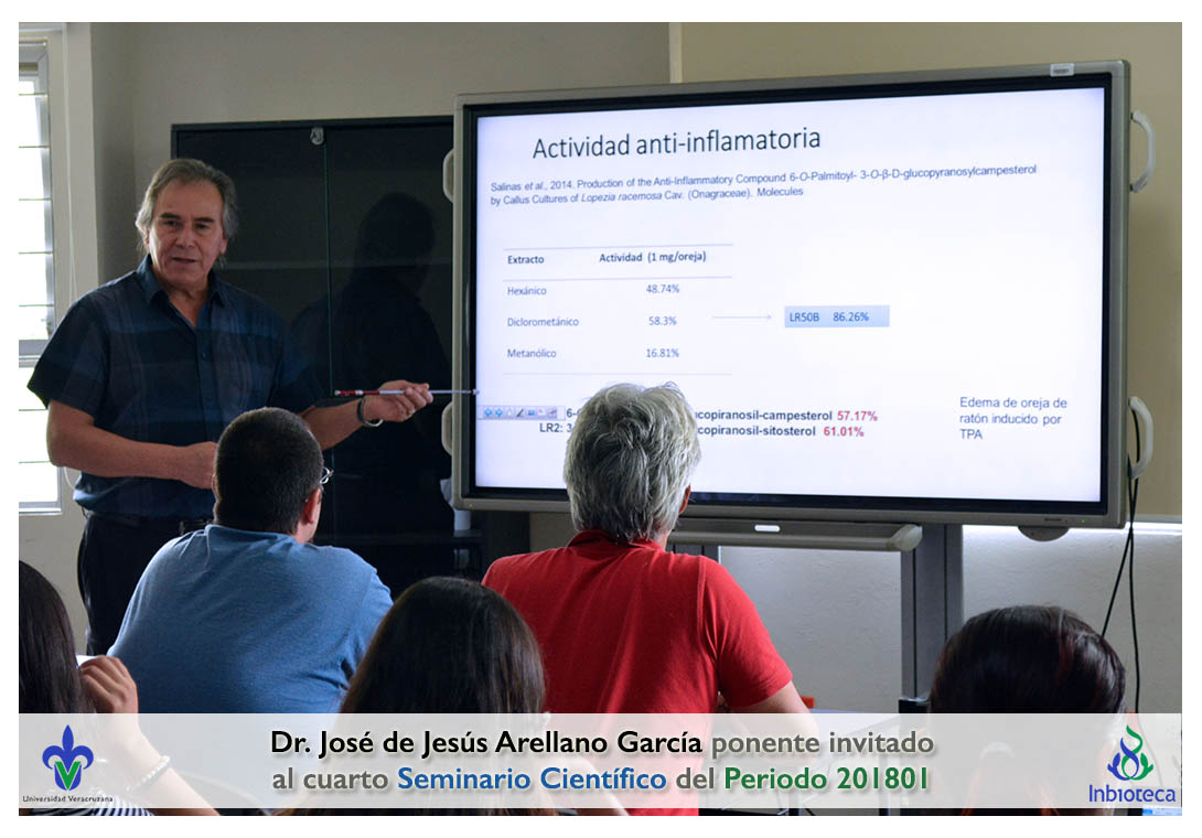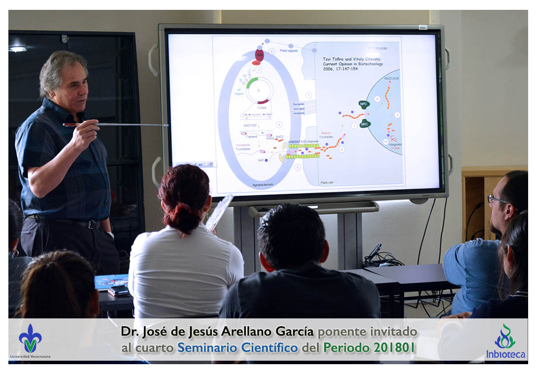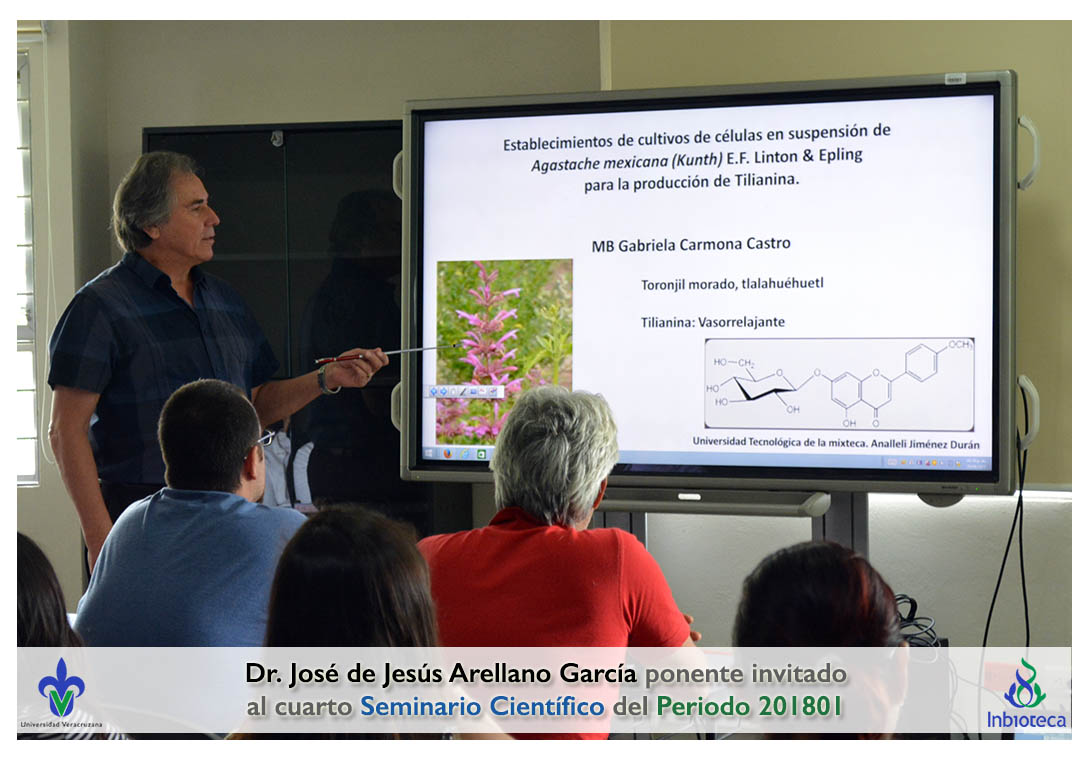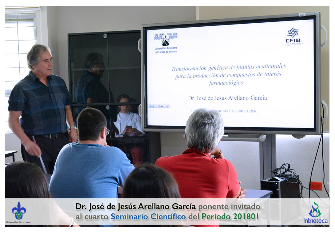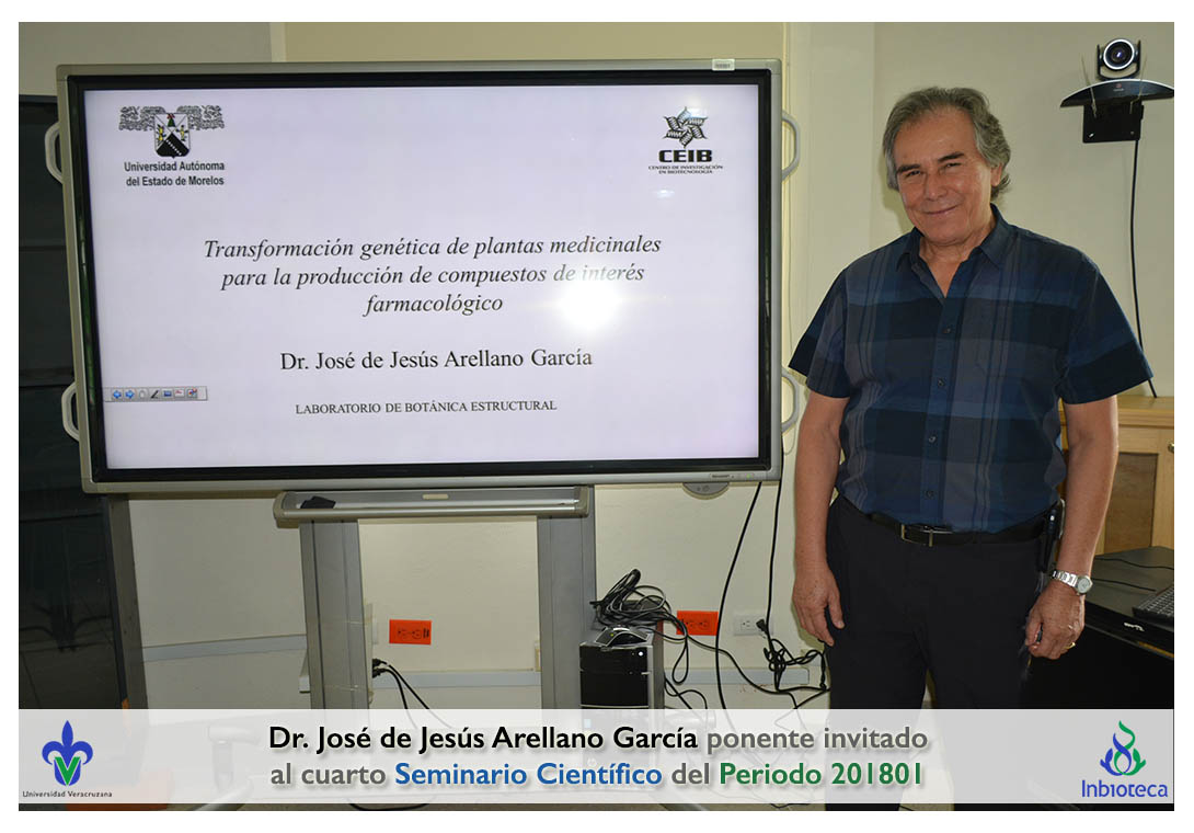 El ponente invitado fue el Dr. José de Jesús Arellano García del Centro de Investigación en Biotecnología (CEIB) de la Universidad Autónoma del Estado de Morelos (UAEM). La conferencia impartida fue "Transformación genética de plantas medicinales para la producción de compuestos de interés farmacológico".