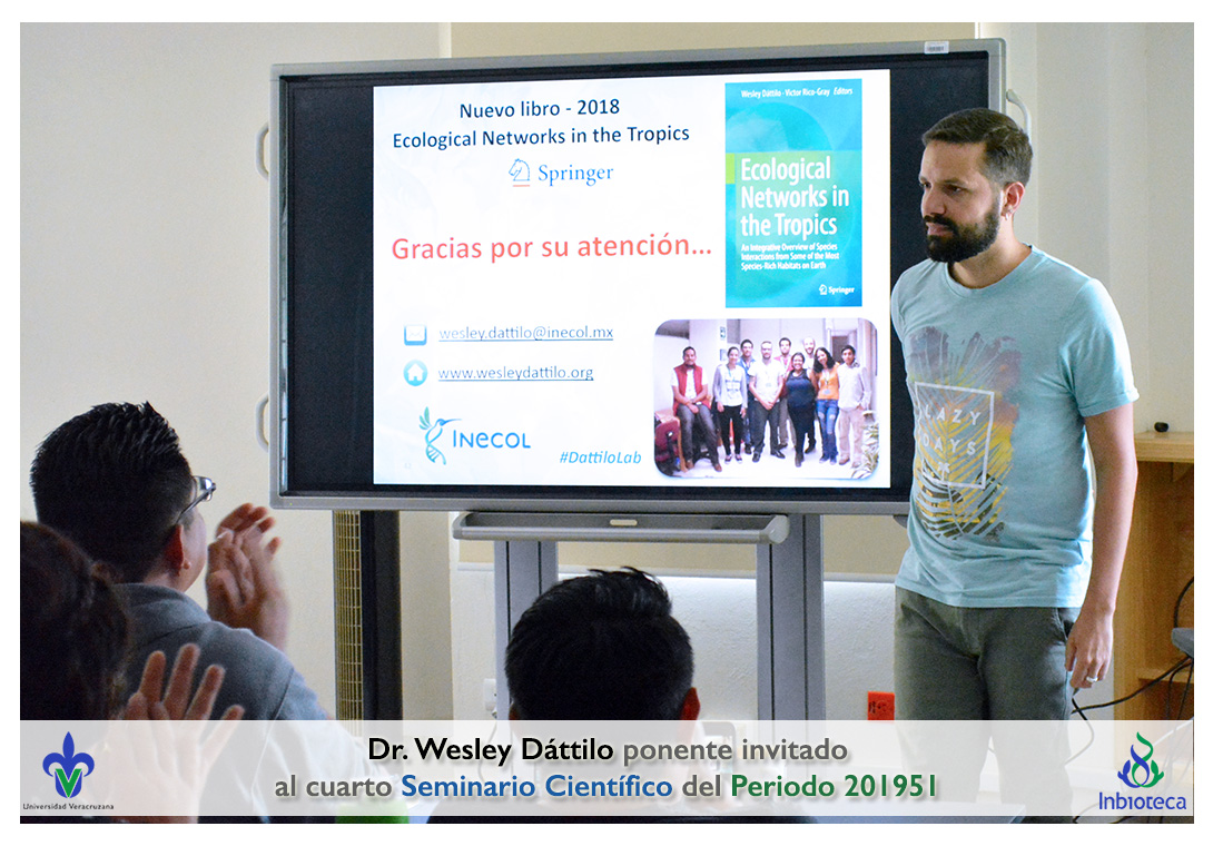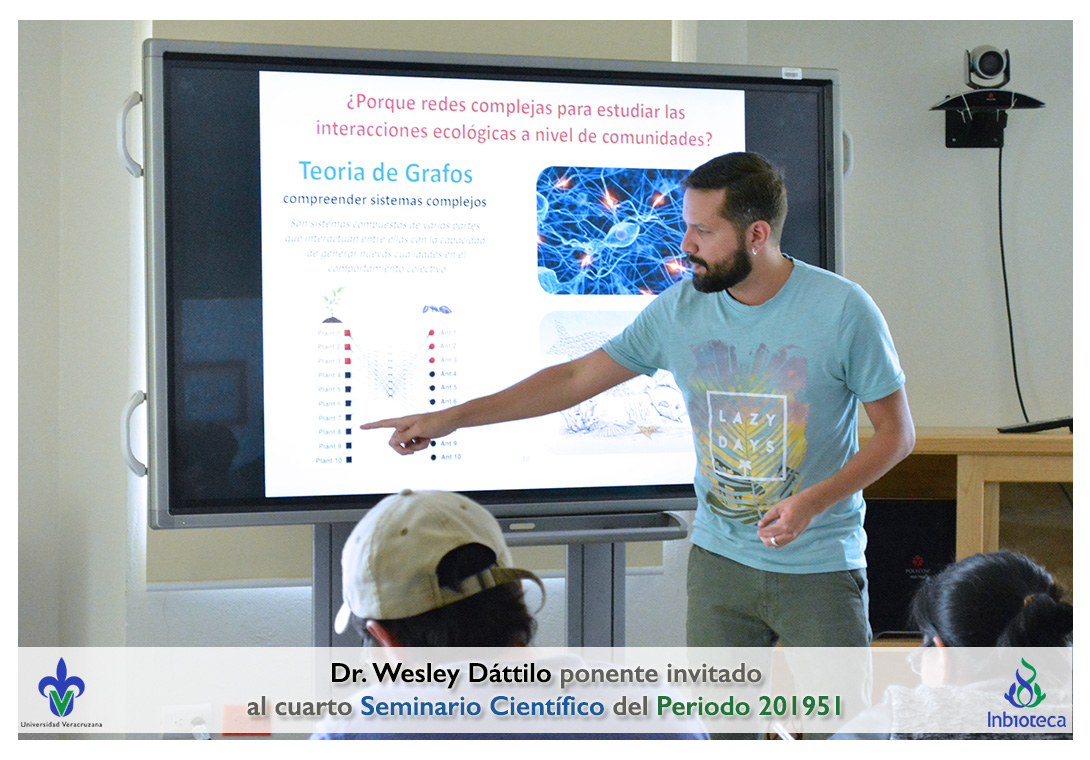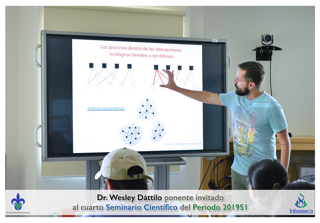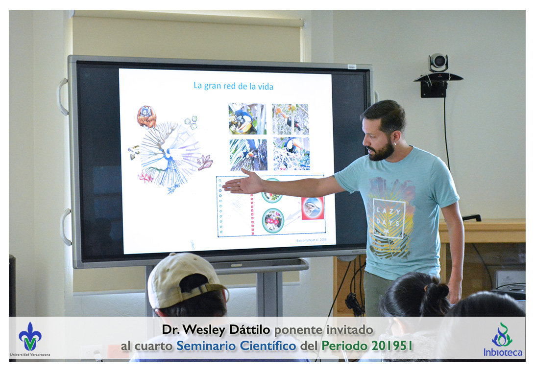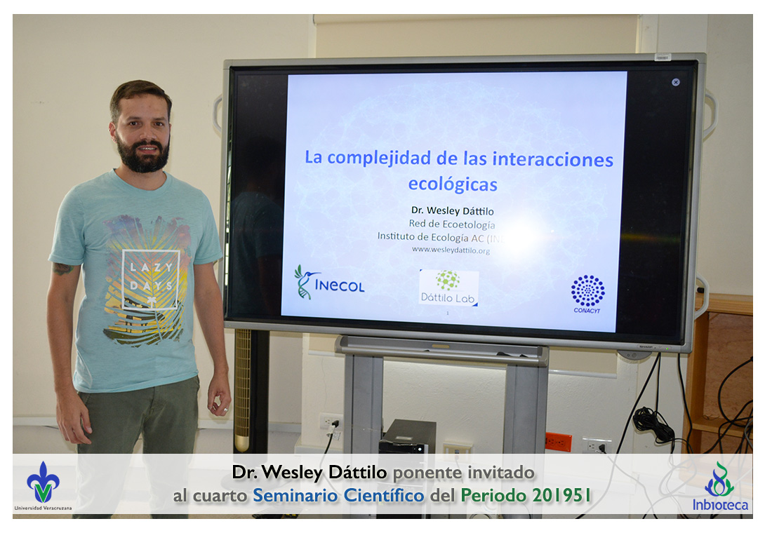 El ponente invitado fue el Dr. Wesley Dáttiloo Investigador de la Red de Ecoetología del Instituto de Ecología A. C. (INECOL). La conferencia impartida fue "La complejidad de las interacciones ecológicas".
