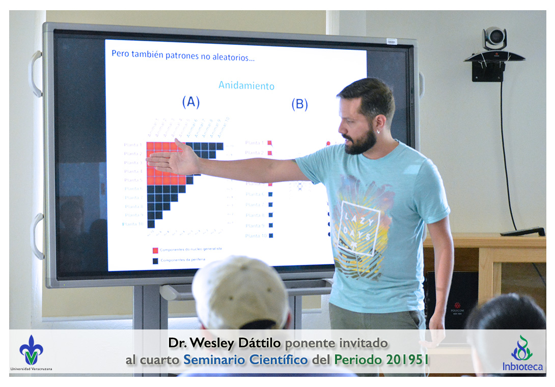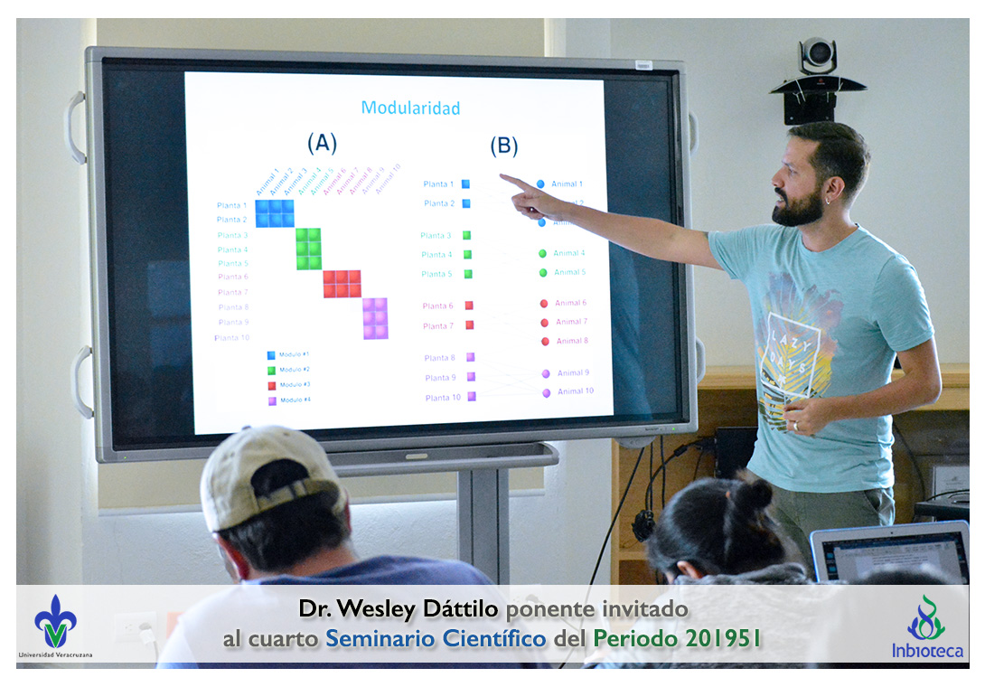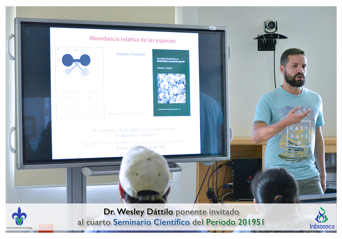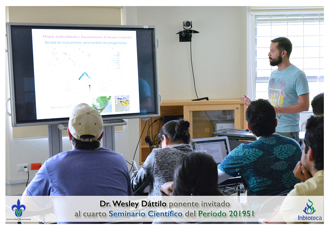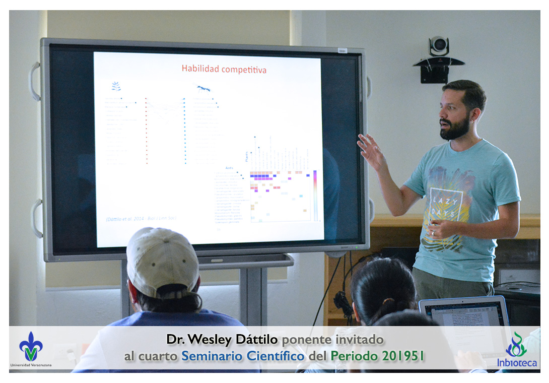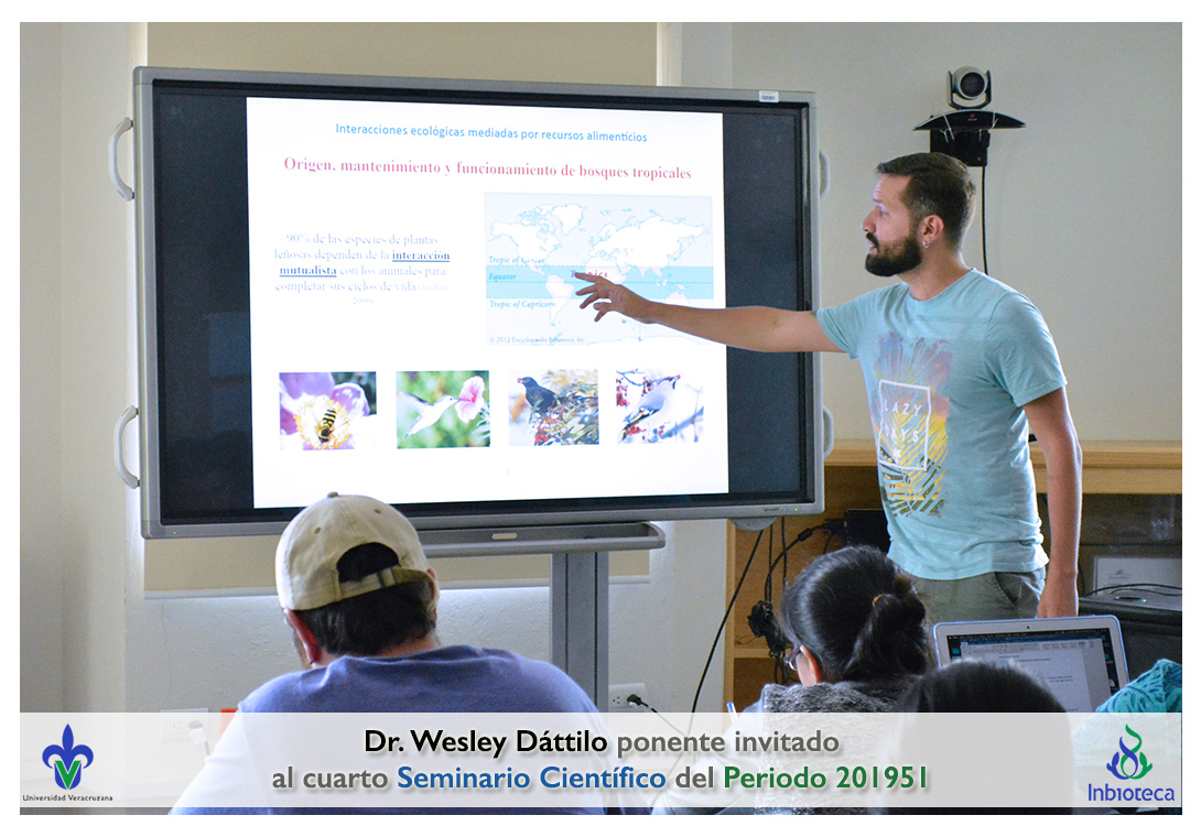 El ponente invitado fue el Dr. Wesley Dáttiloo Investigador de la Red de Ecoetología del Instituto de Ecología A. C. (INECOL). La conferencia impartida fue "La complejidad de las interacciones ecológicas".