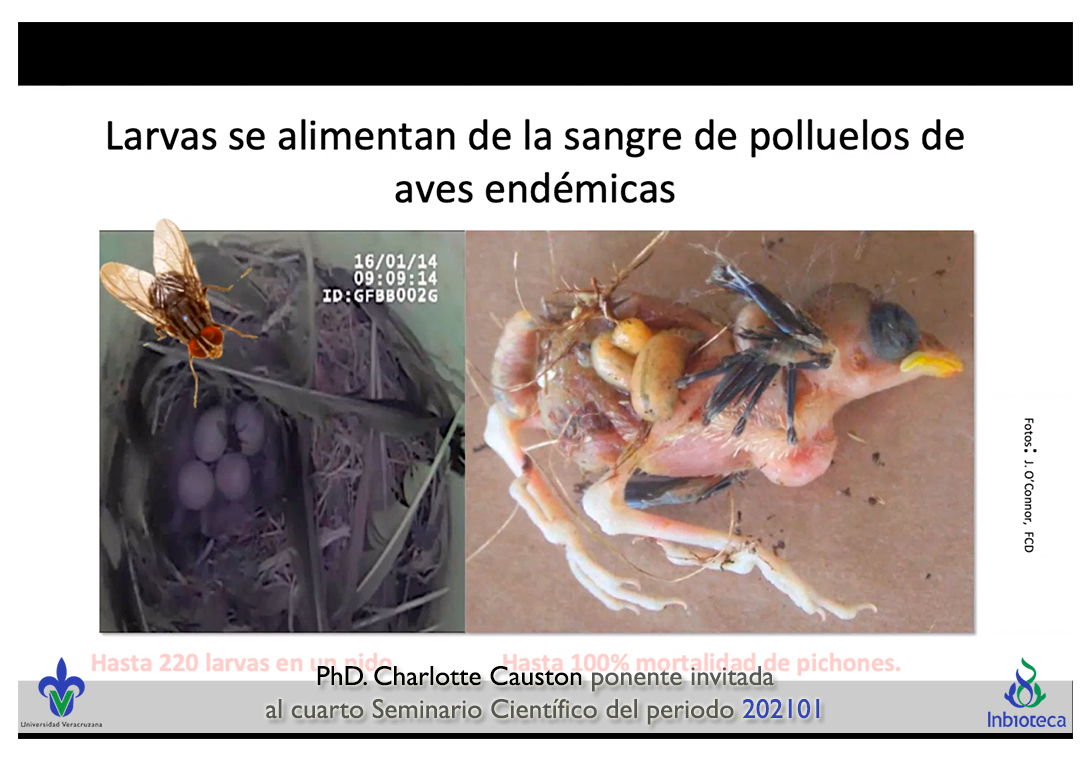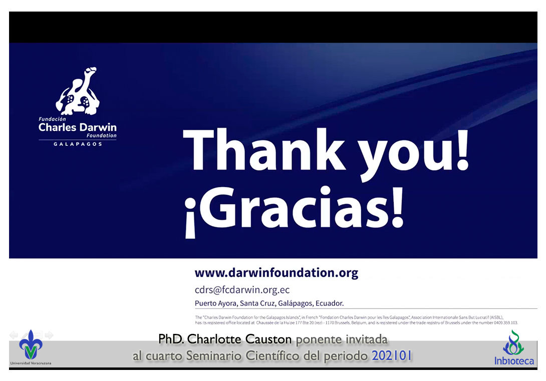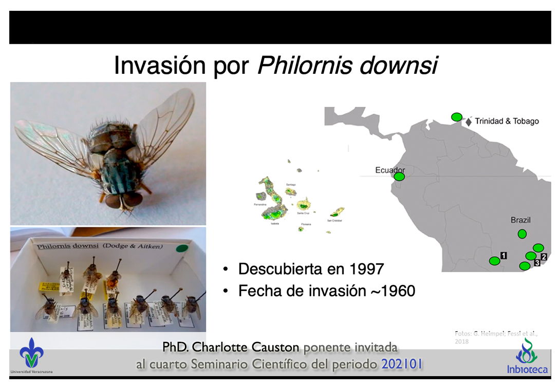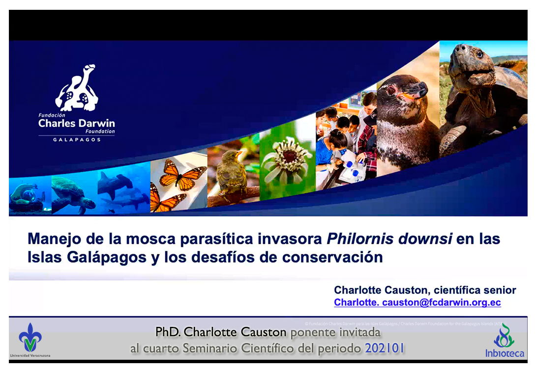 La ponente invitada fue la Dra. Charlotte Causton investigadora de la Fundación Charles Darwin en Galápagos, Ecuador. La conferencia impartida fue "Control de Philornis downsi (Diptera: Muscidae) en las Islas Galápagos".