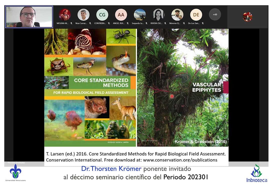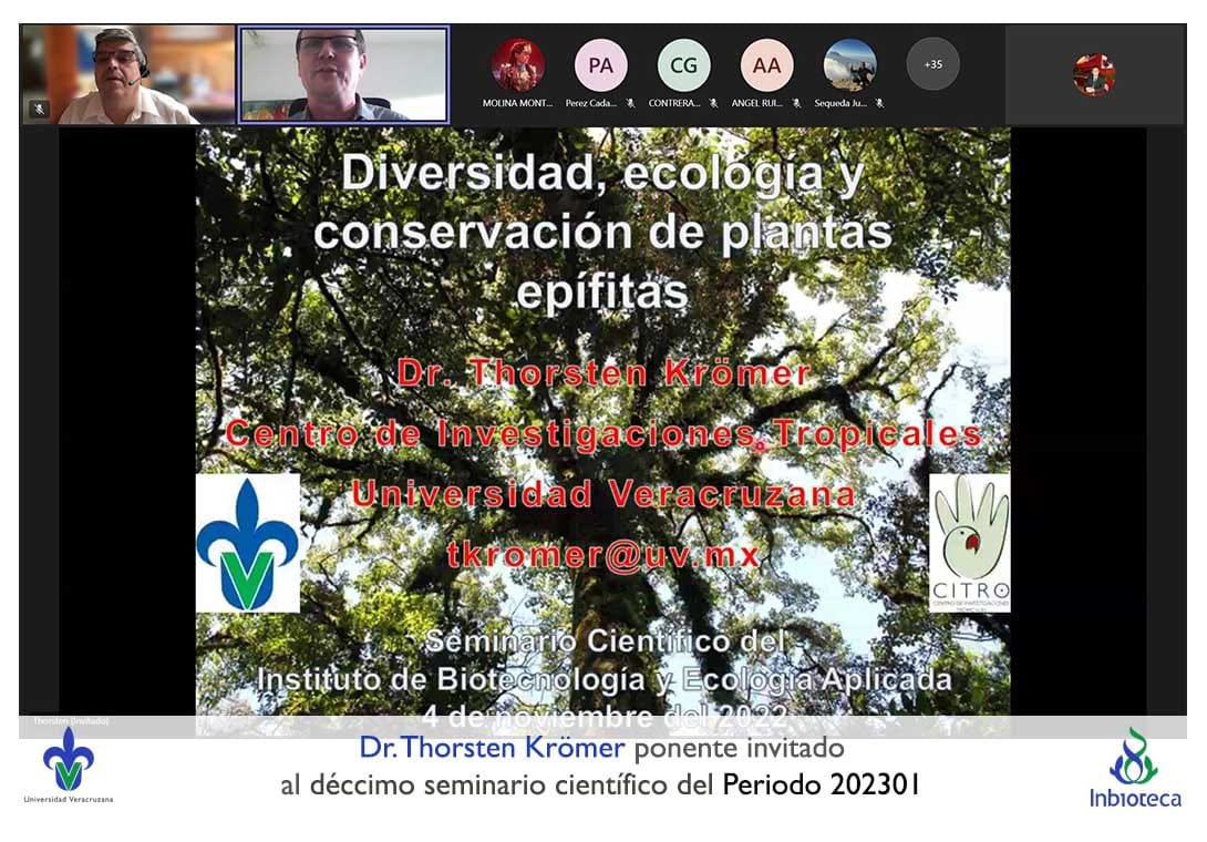 El seminario se desarrolló con la participación del Dr. Thorsten Krömer investigador titular del Centro de Investigaciones Tropicales (CITRO) de la Universidad Veraacruzana. La conferencia se tituló: Diversidad, ecología y conservación de plantas epífitas.