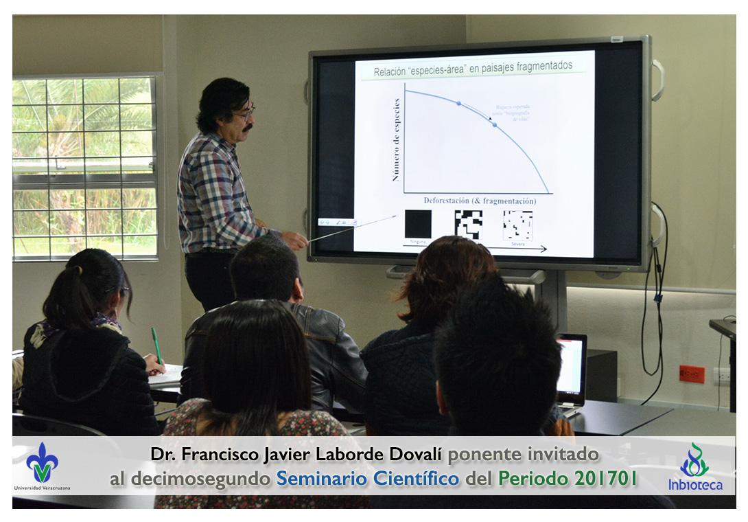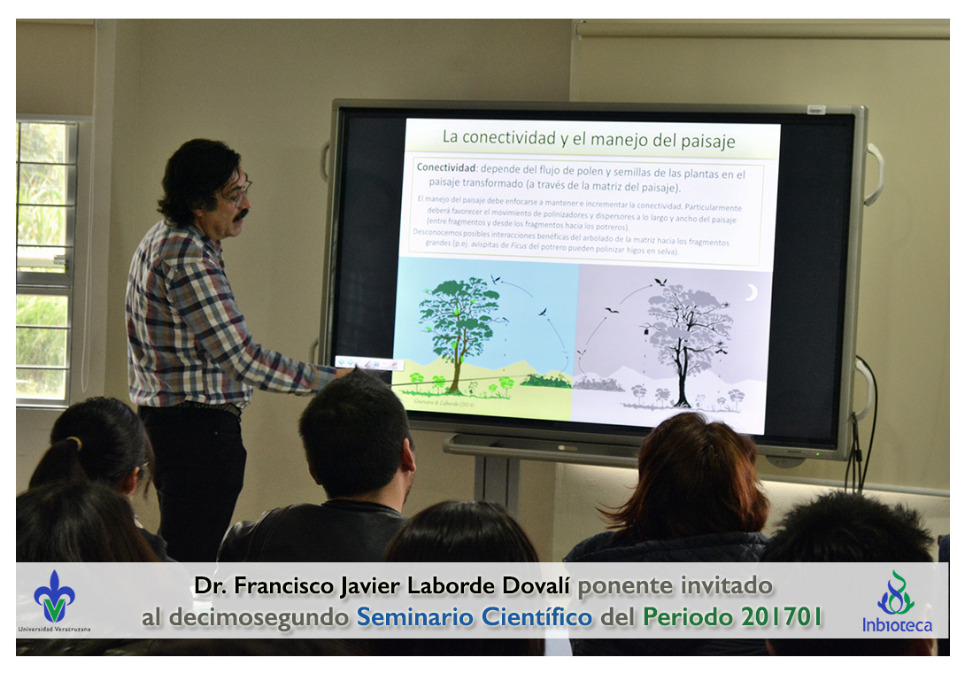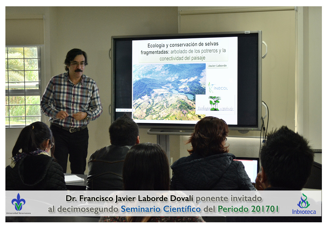 El ponente invitado fue el Dr. Francisco Javier Laborde Dovalí Investigador titular del Instituto de Ecología A. C. (INECOL). La conferencia impartida fue "Ecología y Conservación de Selvas Fragmentadas: arbolado de los potreros y la conectividad del paisaje".