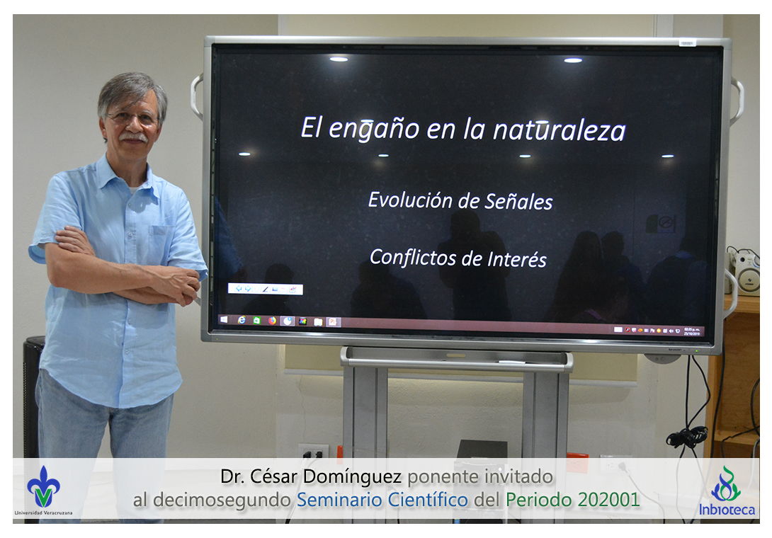 El ponente invitado fue el Dr. César Augusto Domínguez Pérez-Tejeda de la Dirección General de Divulgación de la Ciencia (DGDC) de la Universidad Nacional Autónoma de México (UNAM). La conferencia impartida fue "El engaño en la naturaleza".